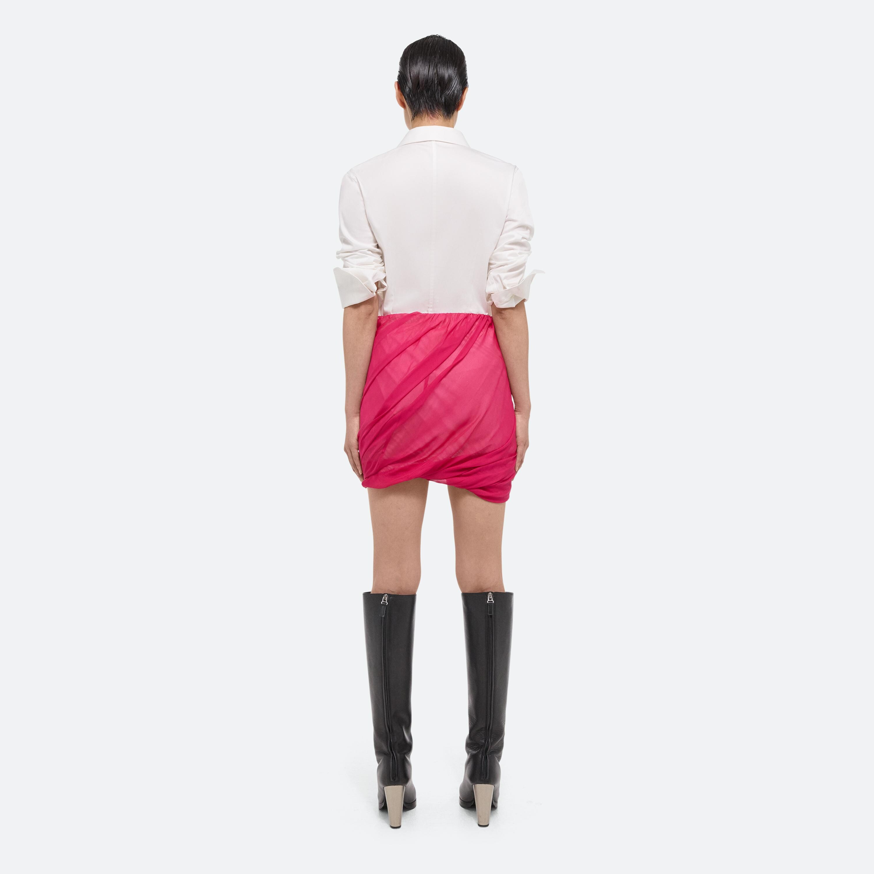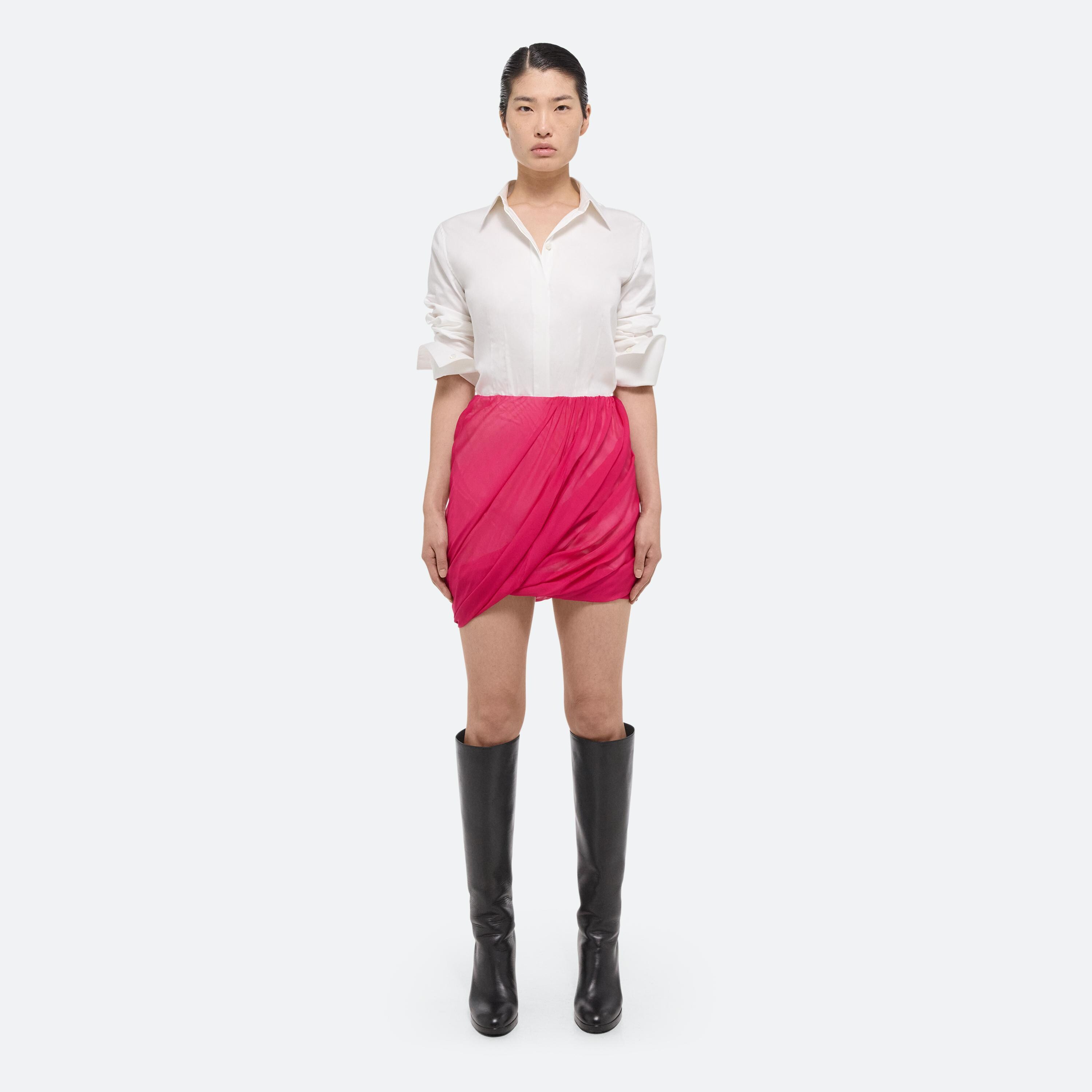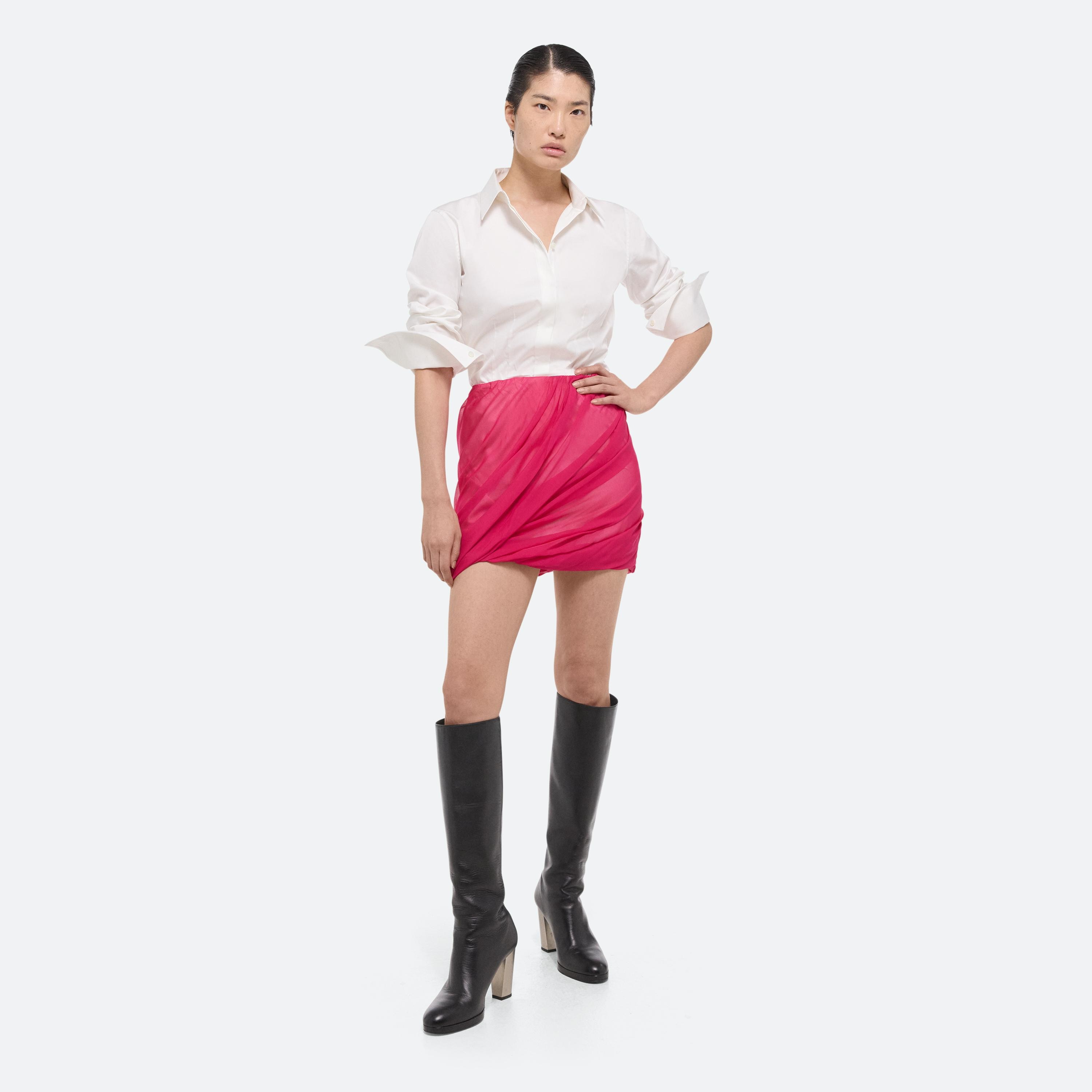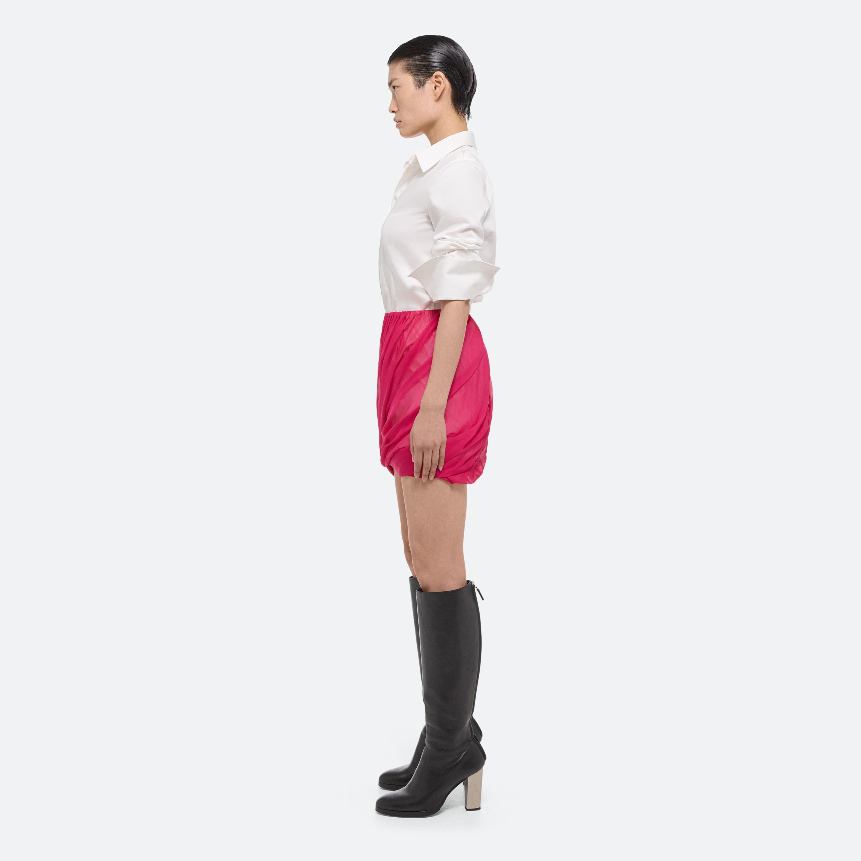 Bubble mini skirt in translucent silk. Voluminous cut with a high-waist that flows into a bubble hem. Lined in cotton jersey.