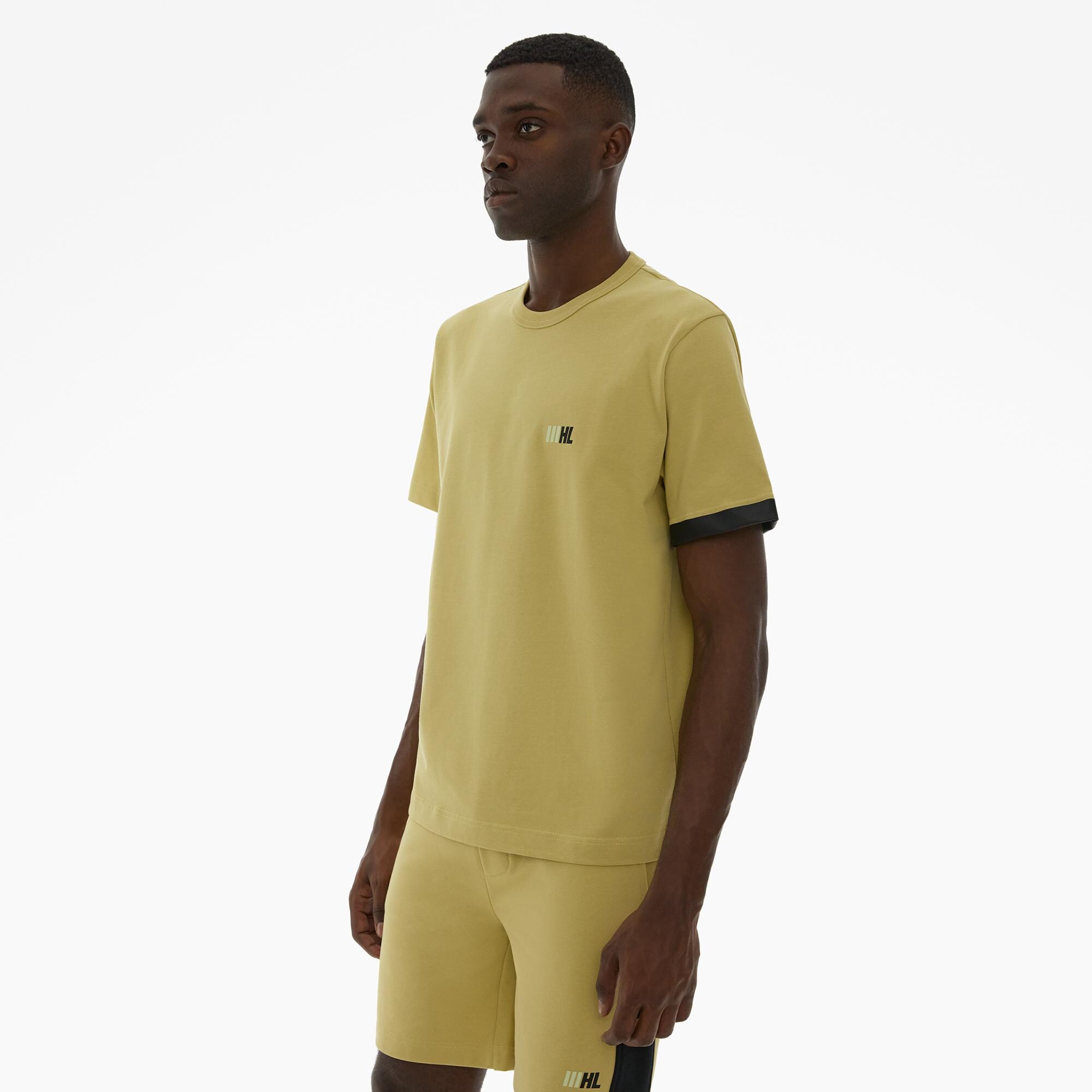 The Helmut Lang Tee is a cotton jersey crewneck with short sleeves and a slanted HL logo.