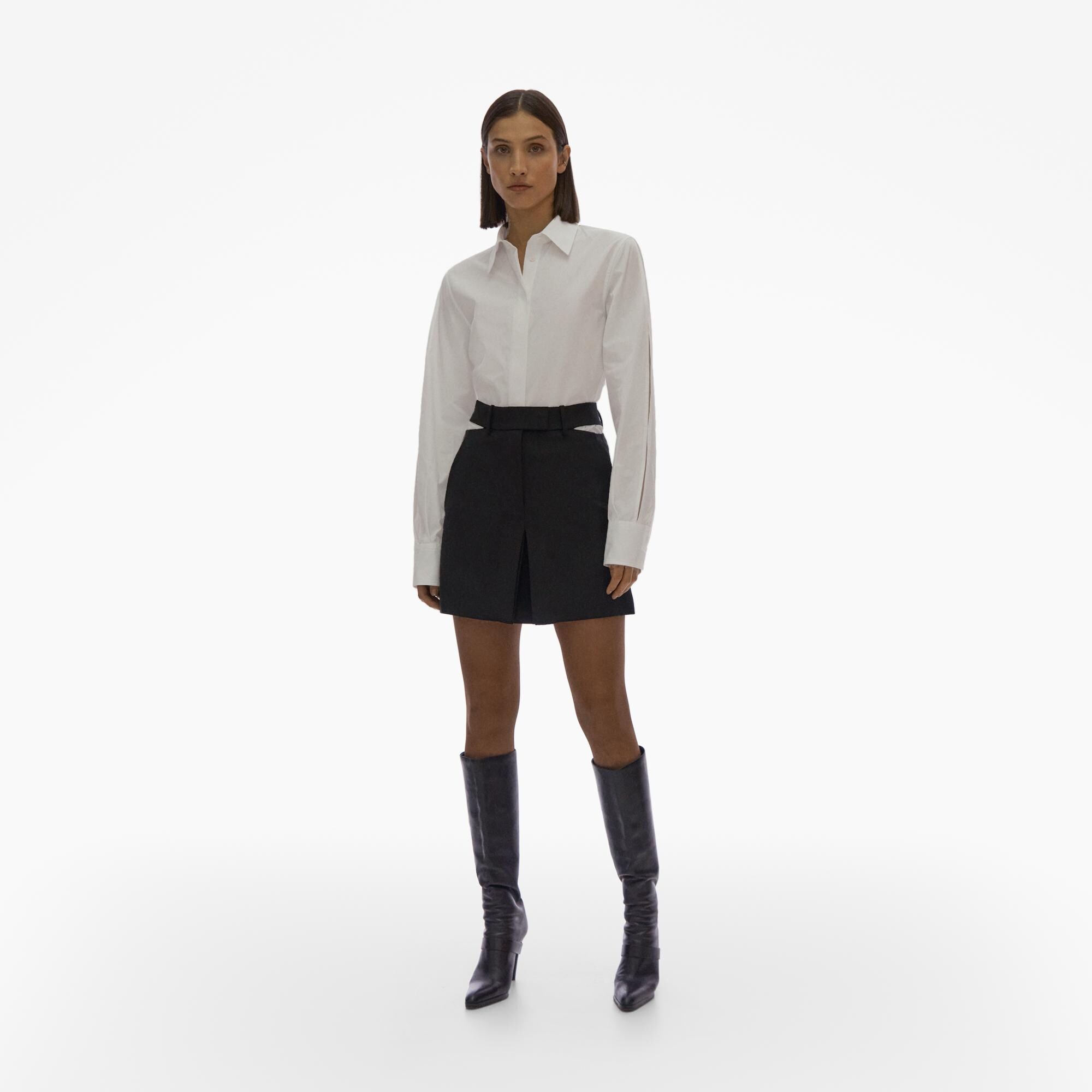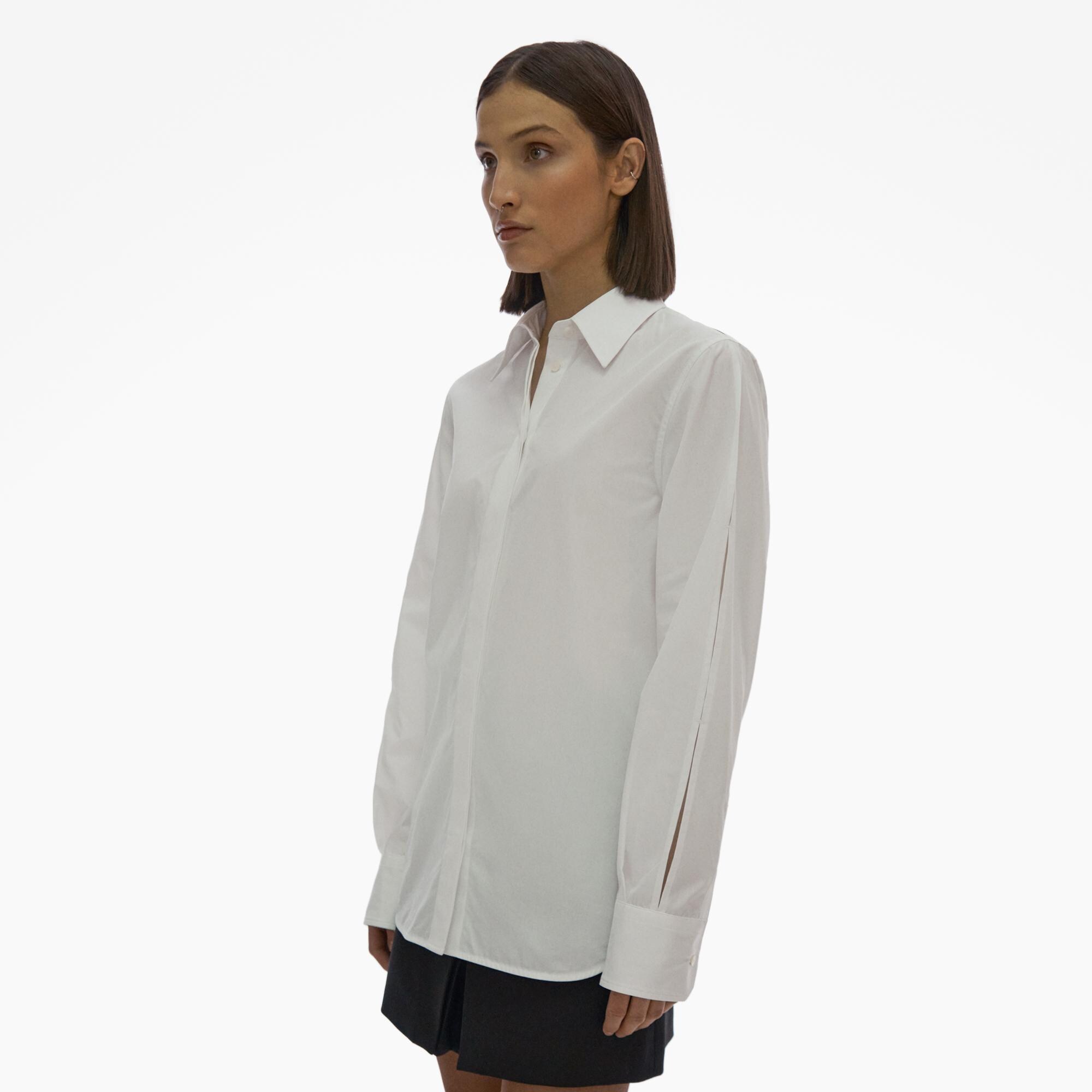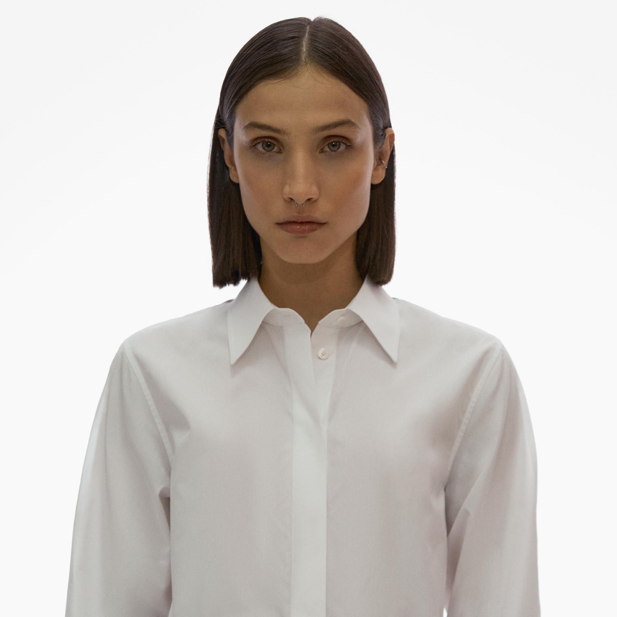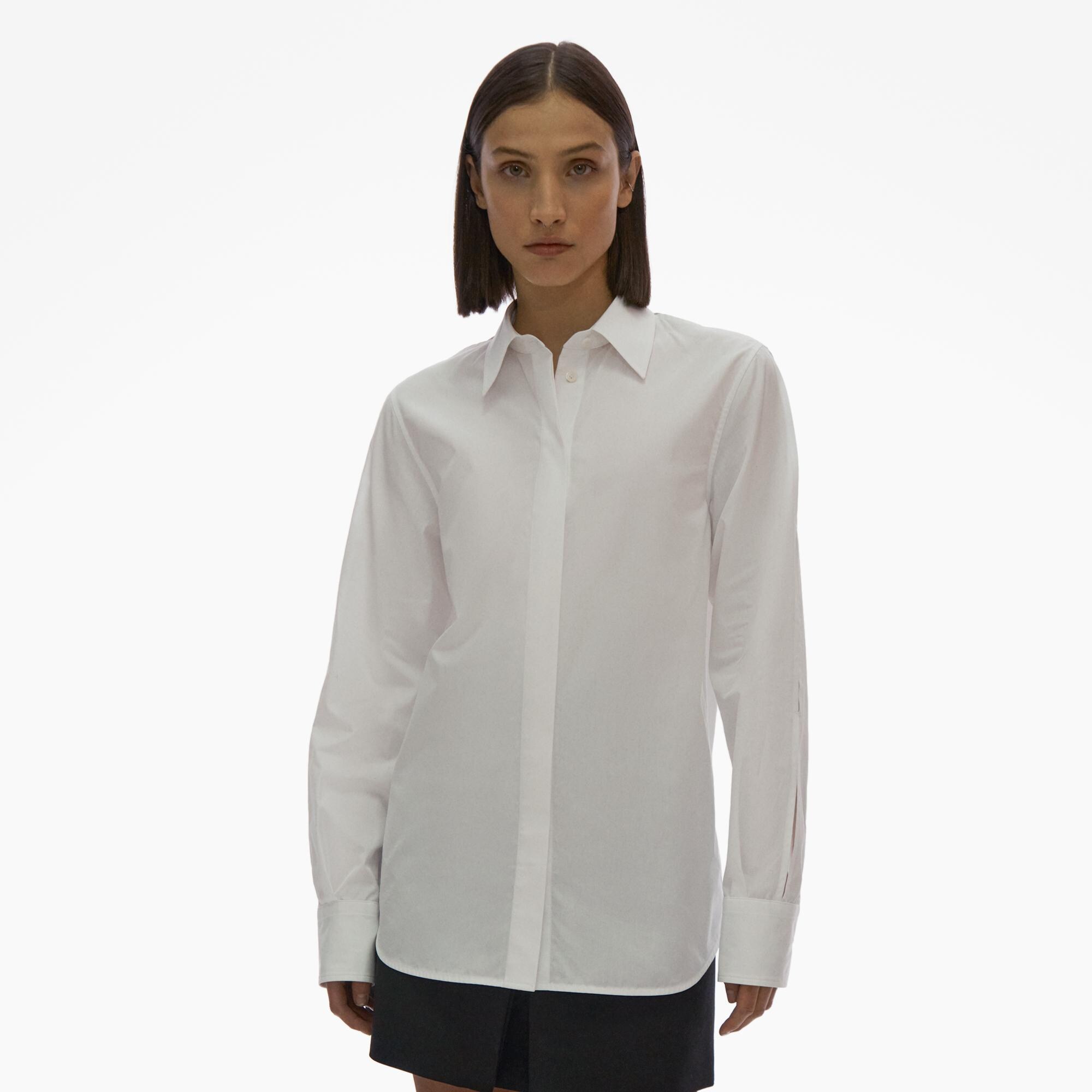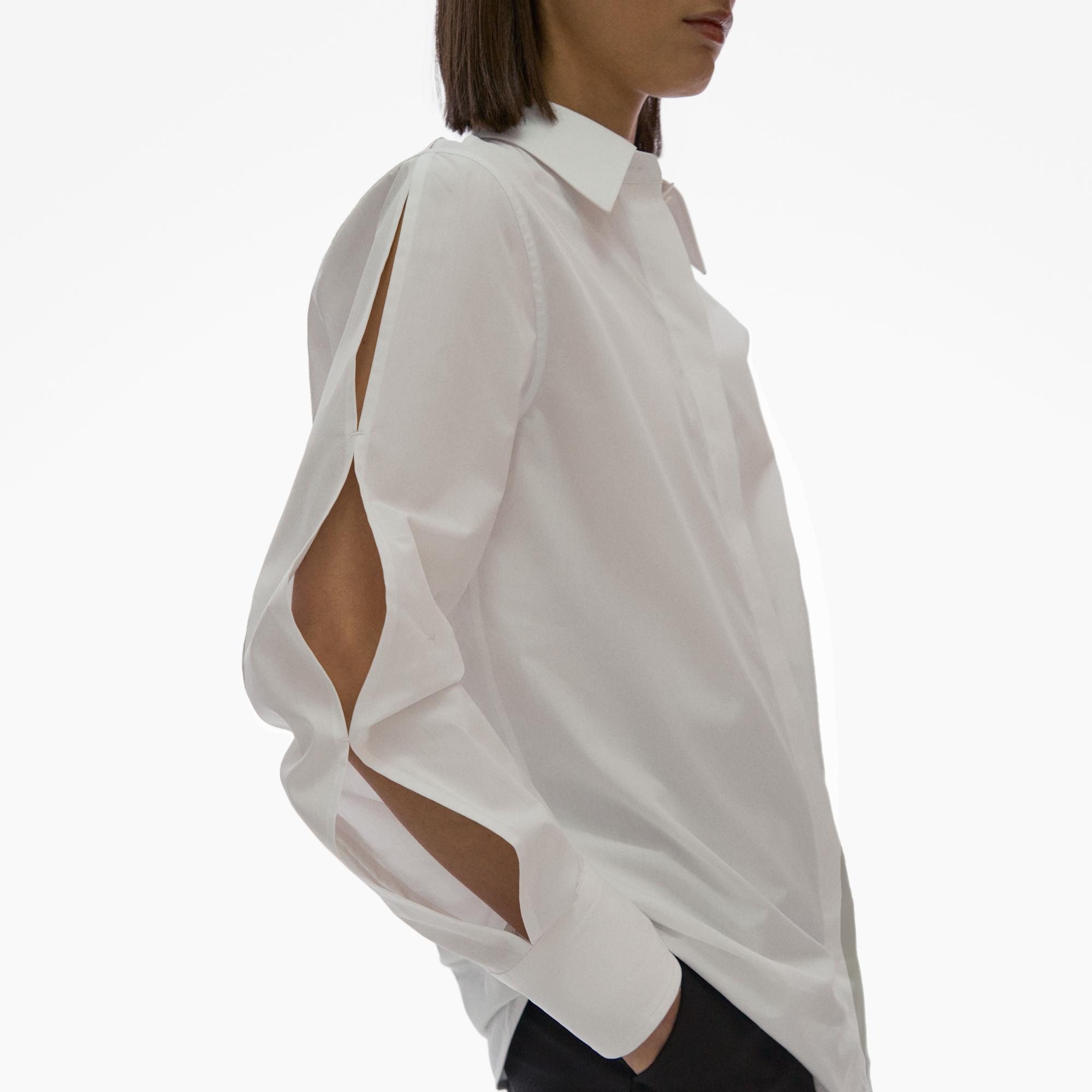 The Helmut Lang Shirt is a long-sleeve button-up in cotton poplin with a point collar and a back cut-out detail.