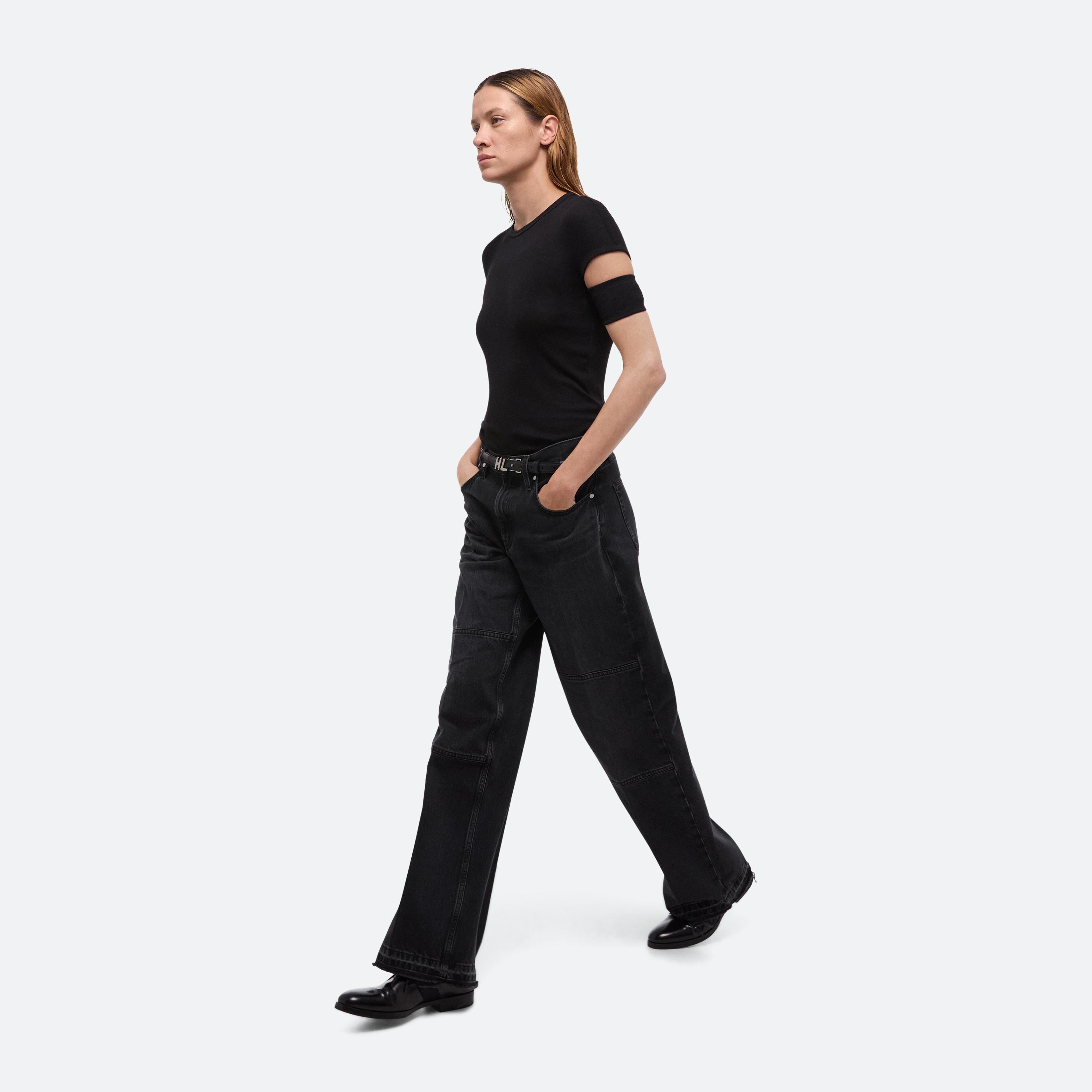 Slim-fit crewneck tee in ultra-soft cotton modal rib, featuring slashed sleeve detail.