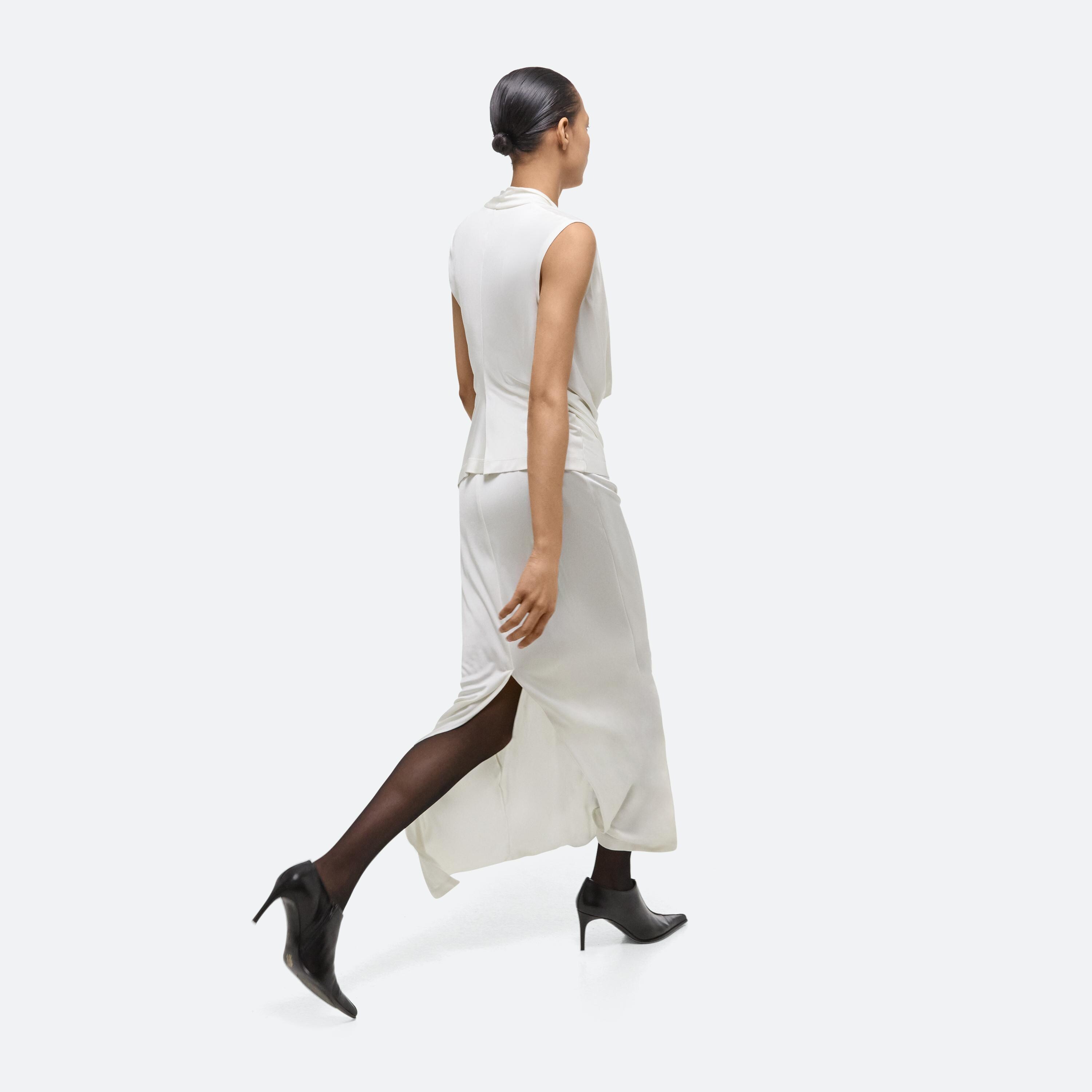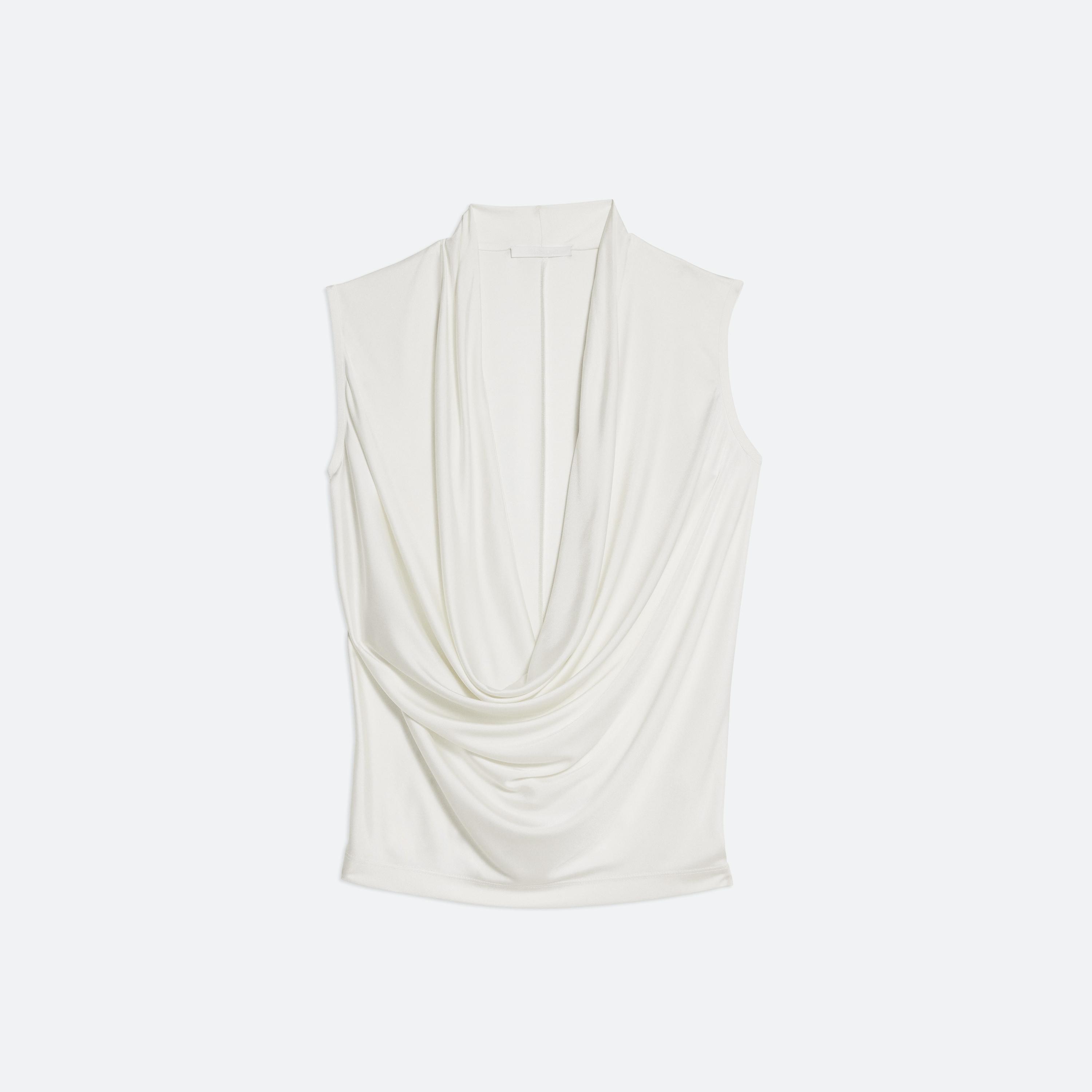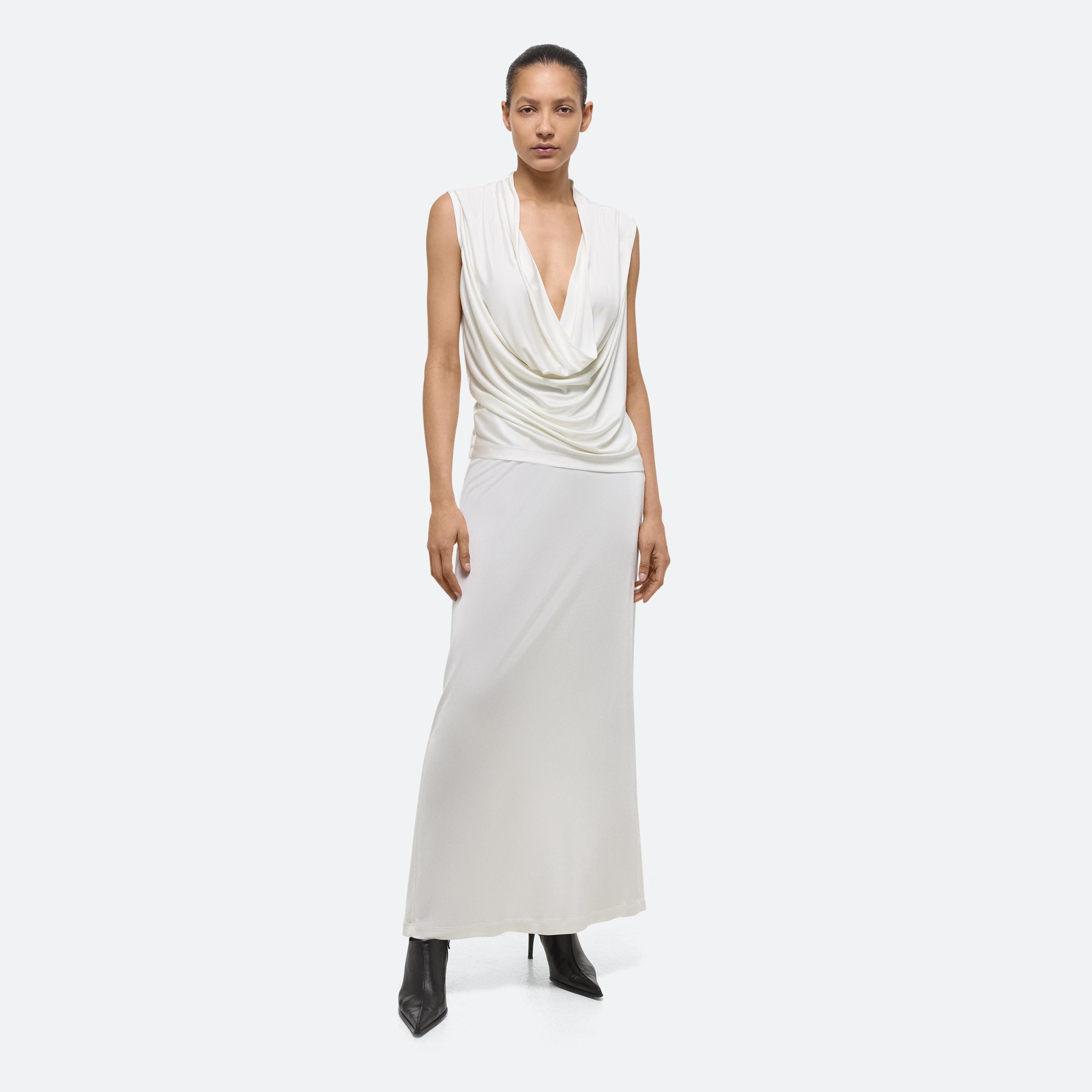 Sleeveless top in fluid Italian viscose jersey. Wear with the cowl in front for a deep U-neck, or reverse for a plunging back. Style alone, or pair with the matching skirt for a dress effect.