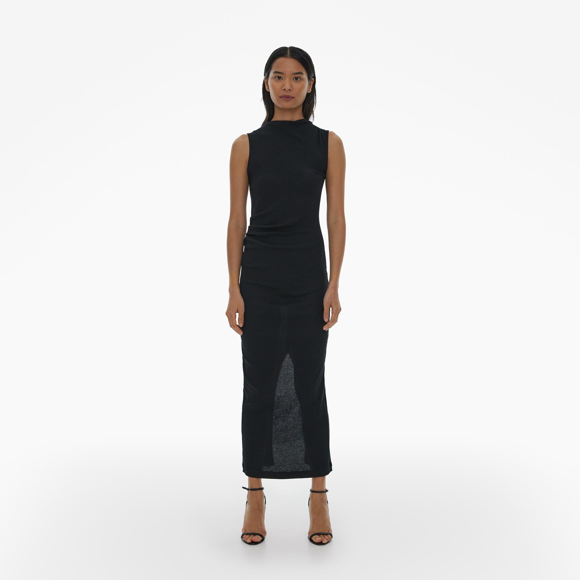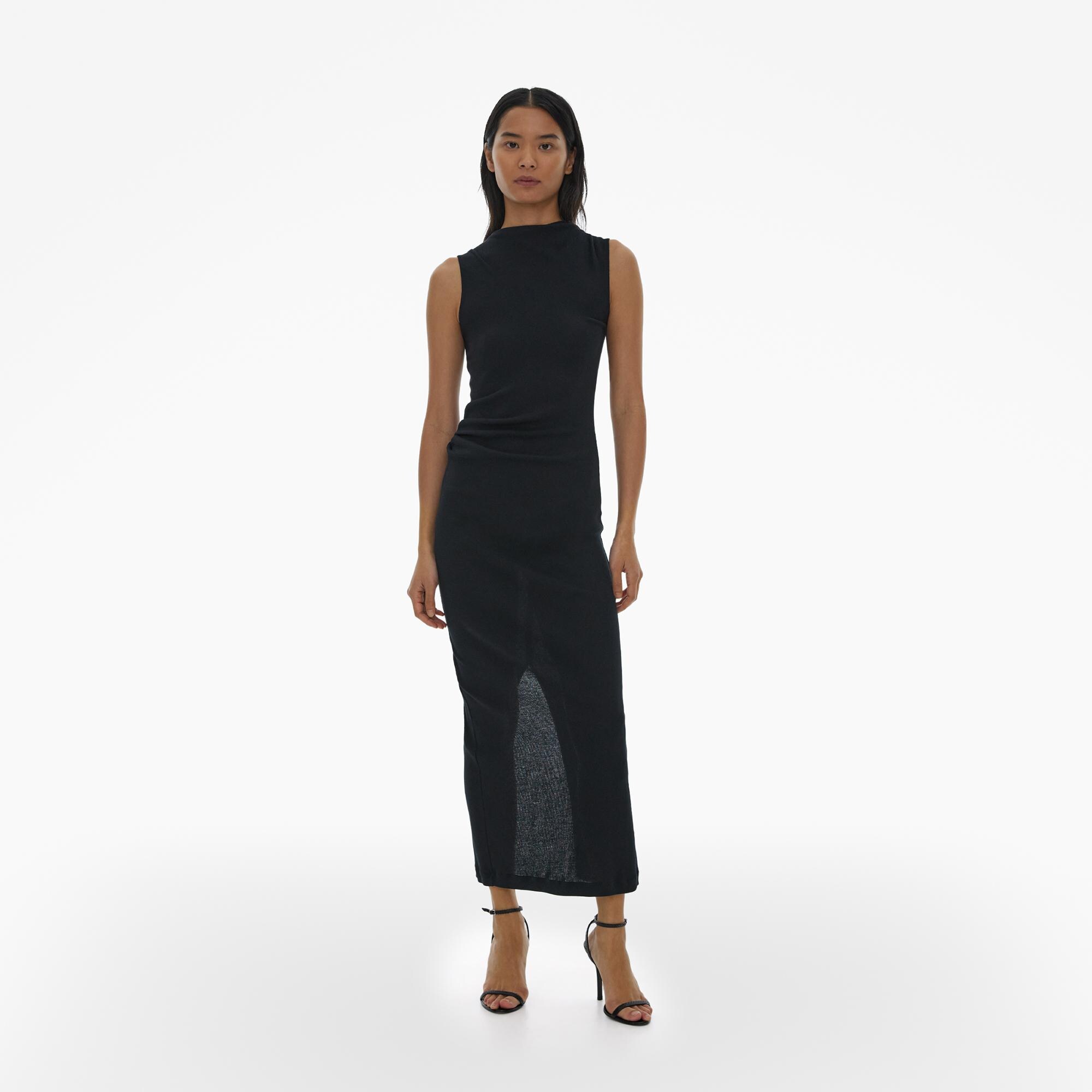 The Helmut Lang Sleeveless Maxi Dress is a slim-fitting style in our base double rib with a gathered neckline, back cut-out and slit hem.