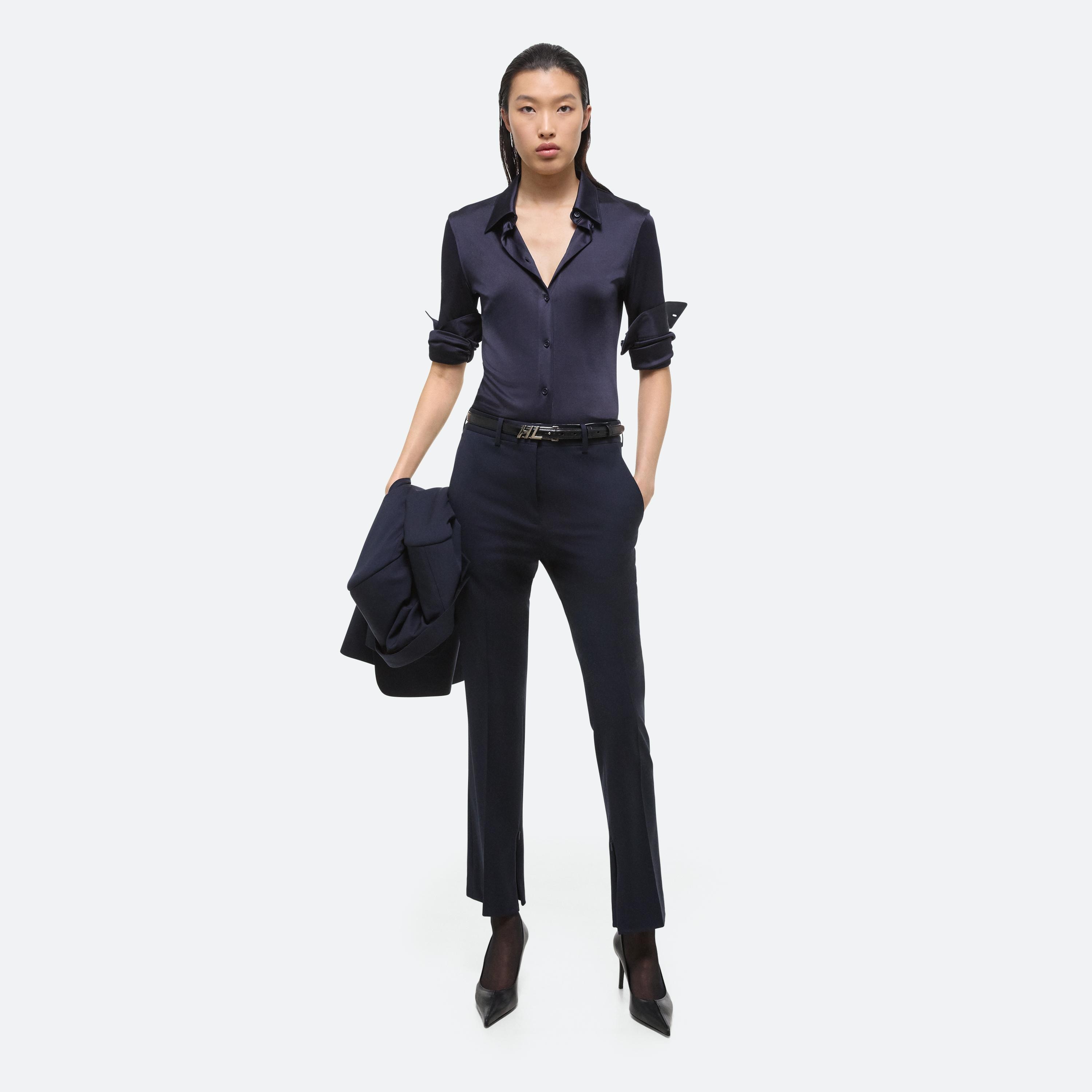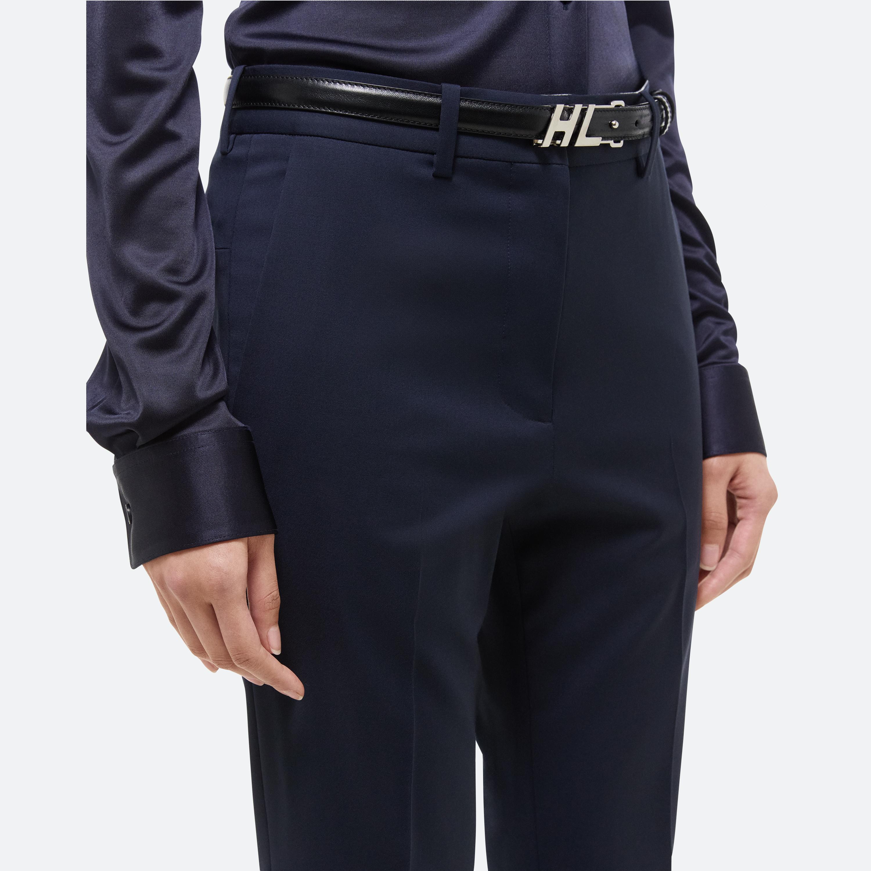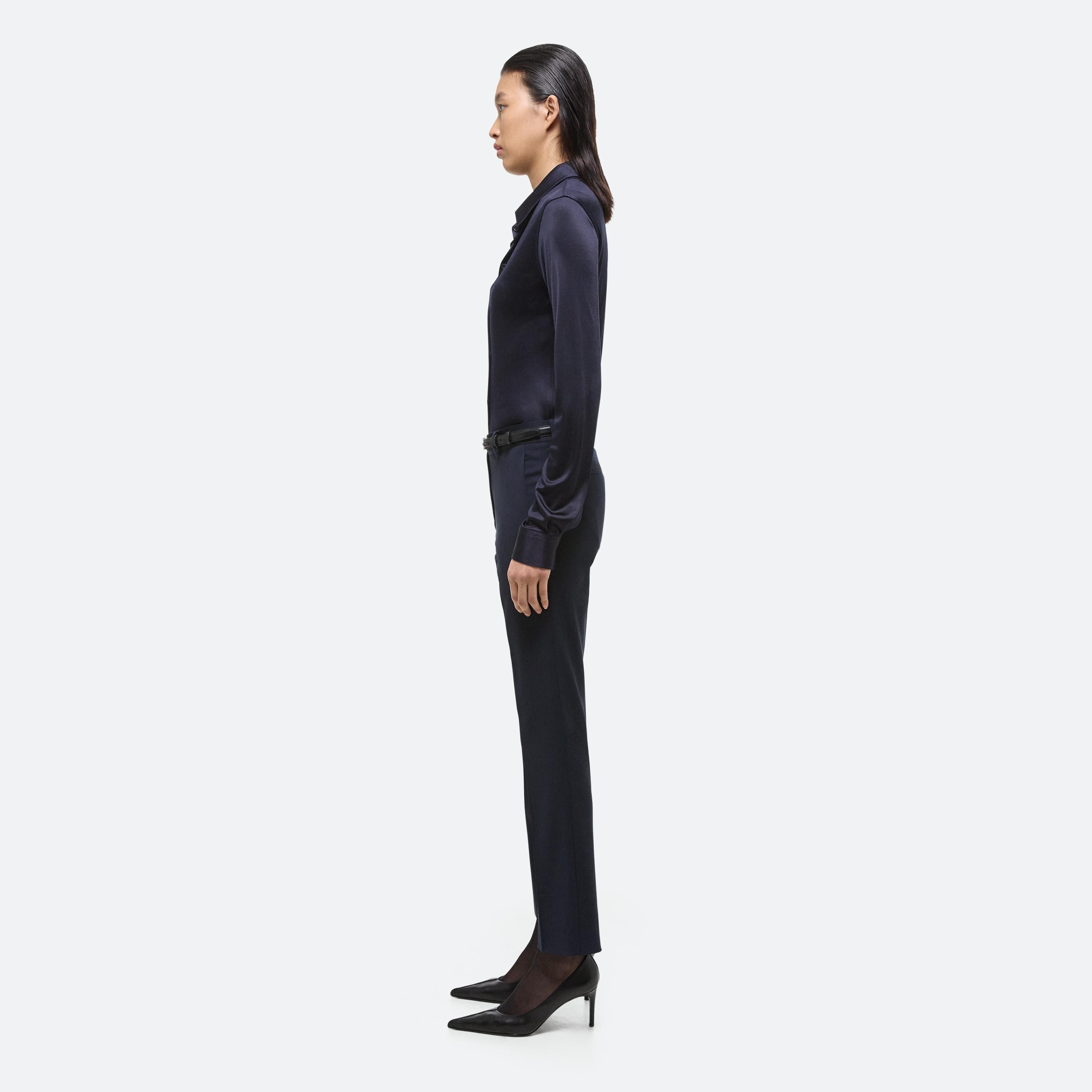 Slim tailored trouser in virgin Italian wool, slightly cropped with adjustable zip hem.