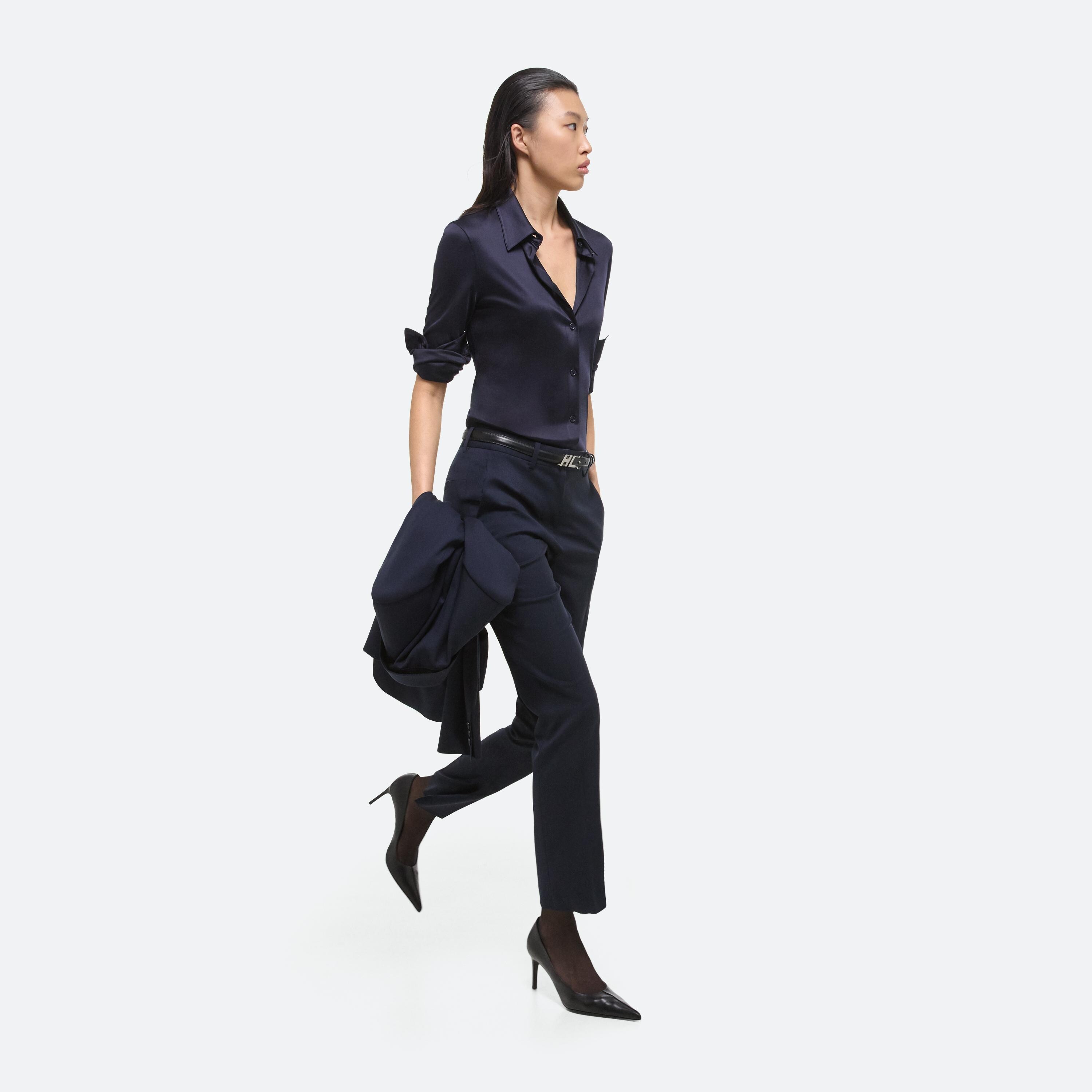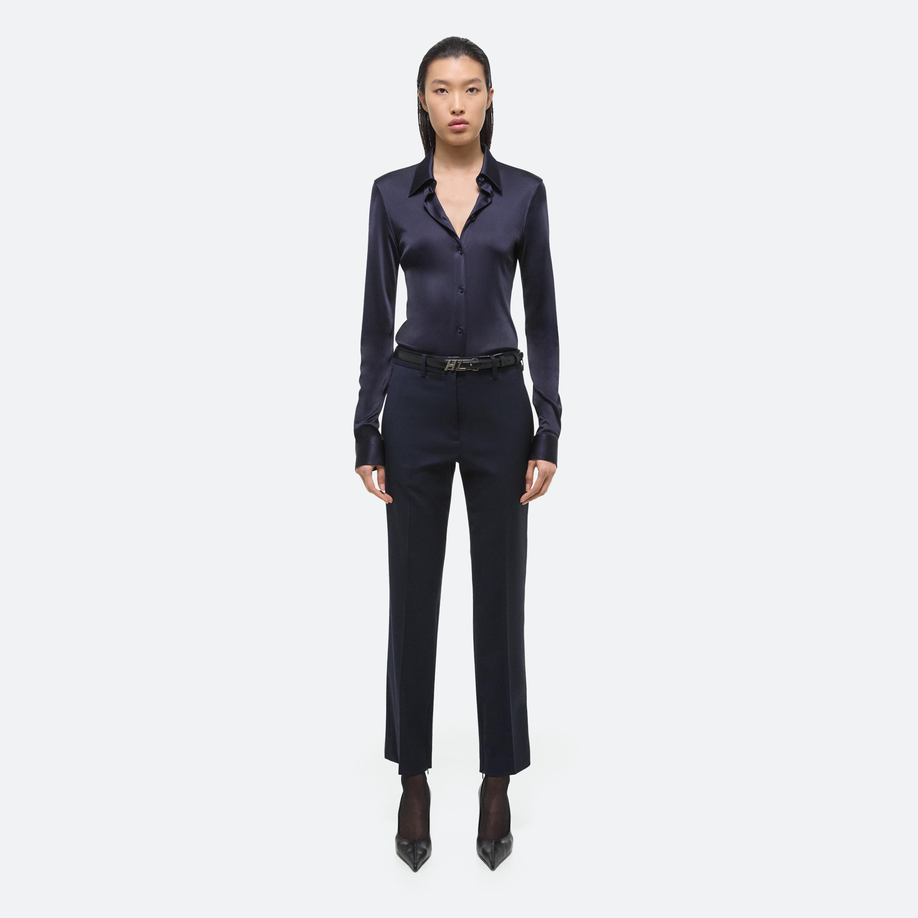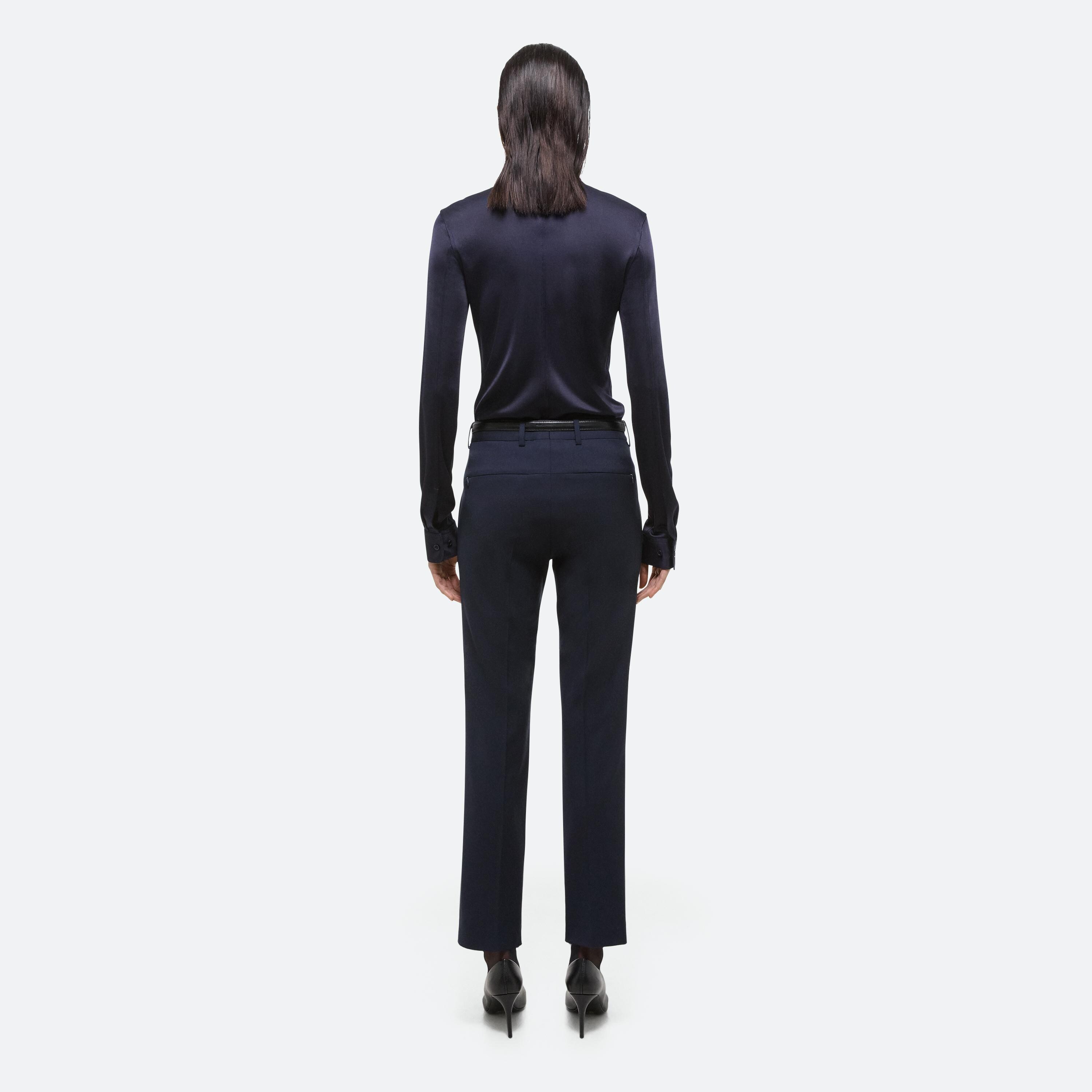Slim tailored trouser in virgin Italian wool, slightly cropped with adjustable zip hem.