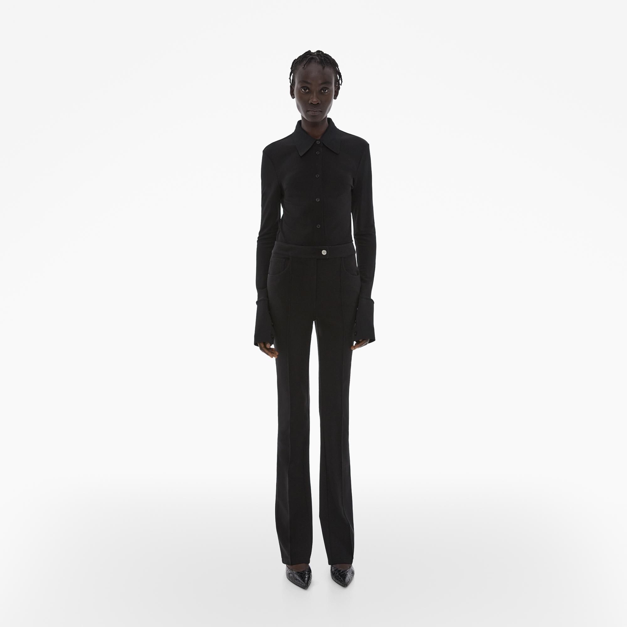 The Helmut Lang Legging Pant is a slim-fitting style in a stretch viscose-blend twill with a zip fly and hook closure, slant pockets, and vented flare cuffs.