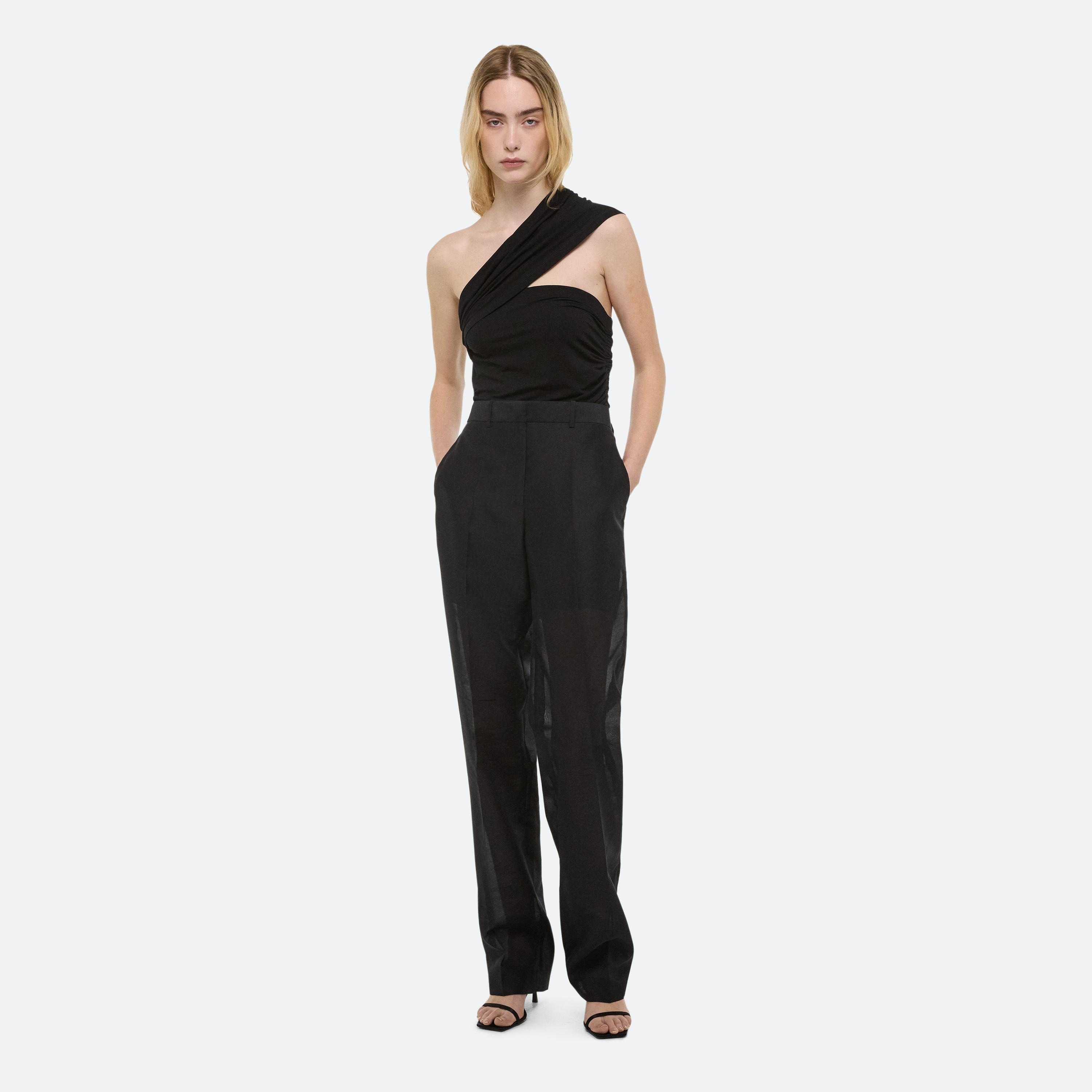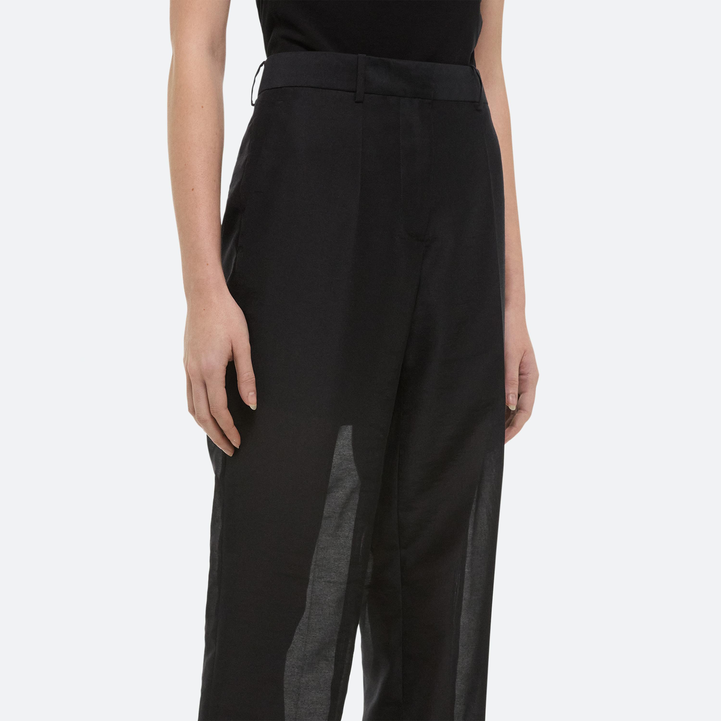 Tailored car trouser made in slub organza. Cut with a relaxed, straight leg fit. Matches the Cowl Shell Top.
