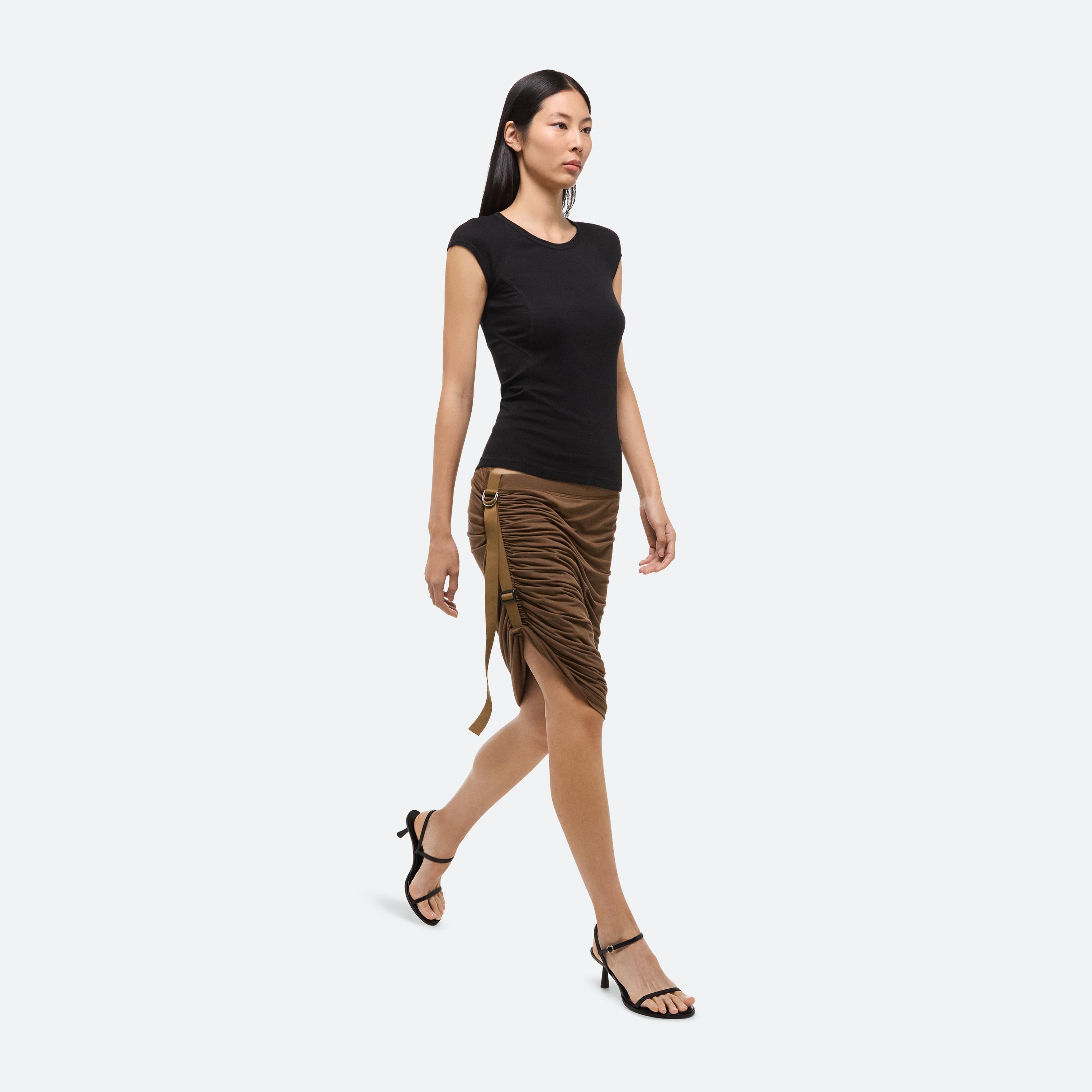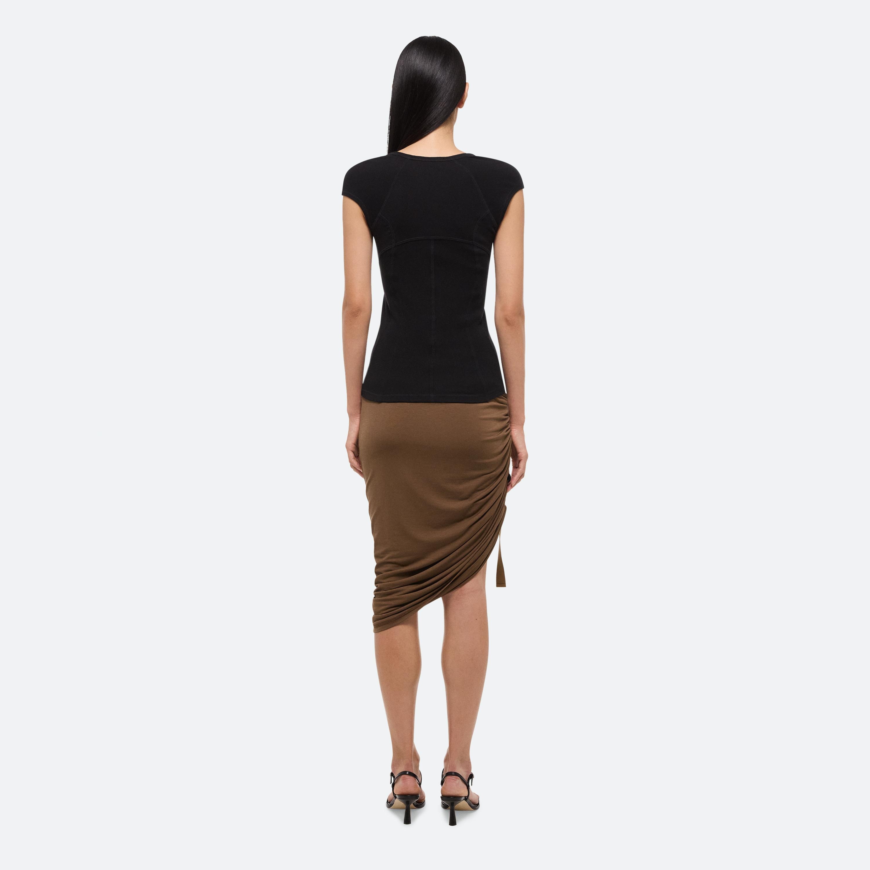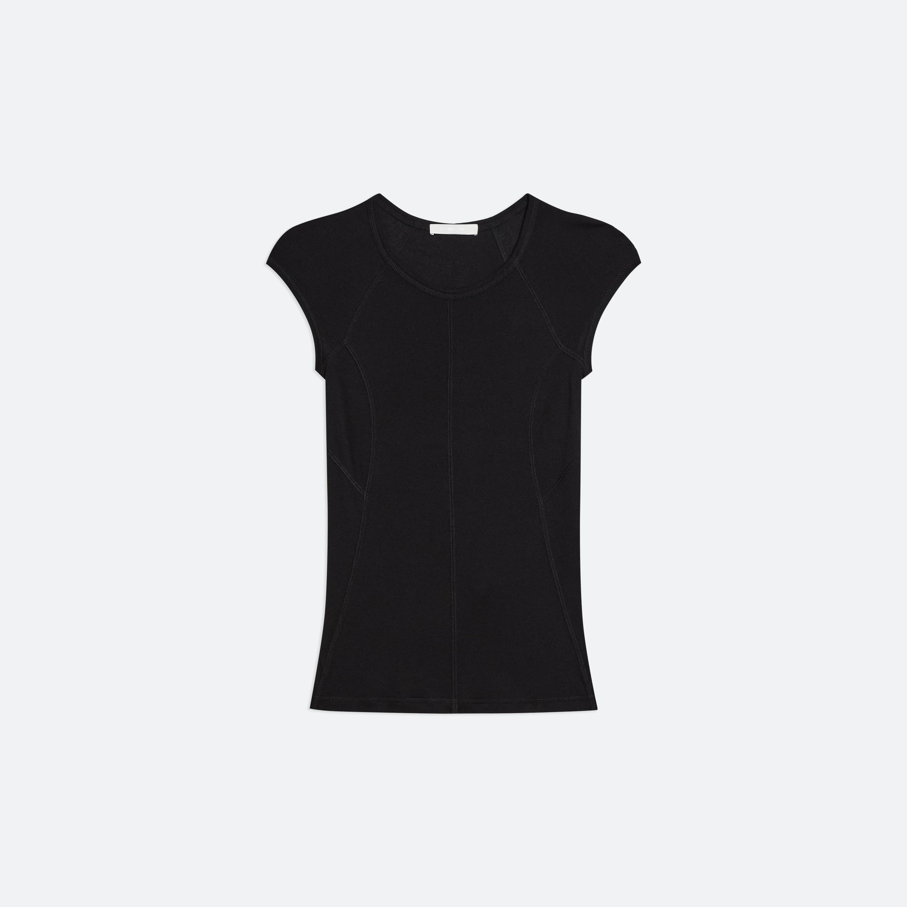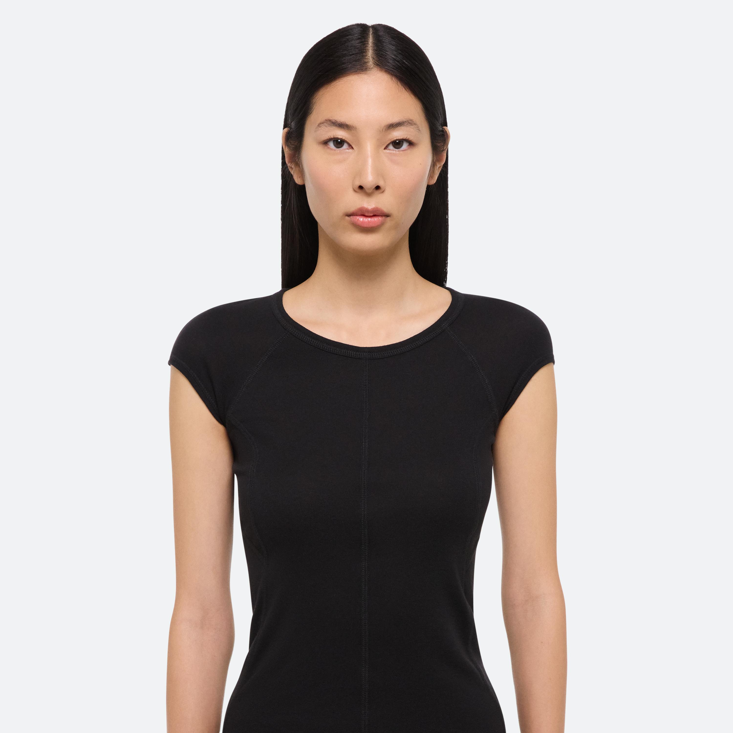 Cotton-modal tee in ultra-fine rib. Designed with a paneled construction that contours the body.
