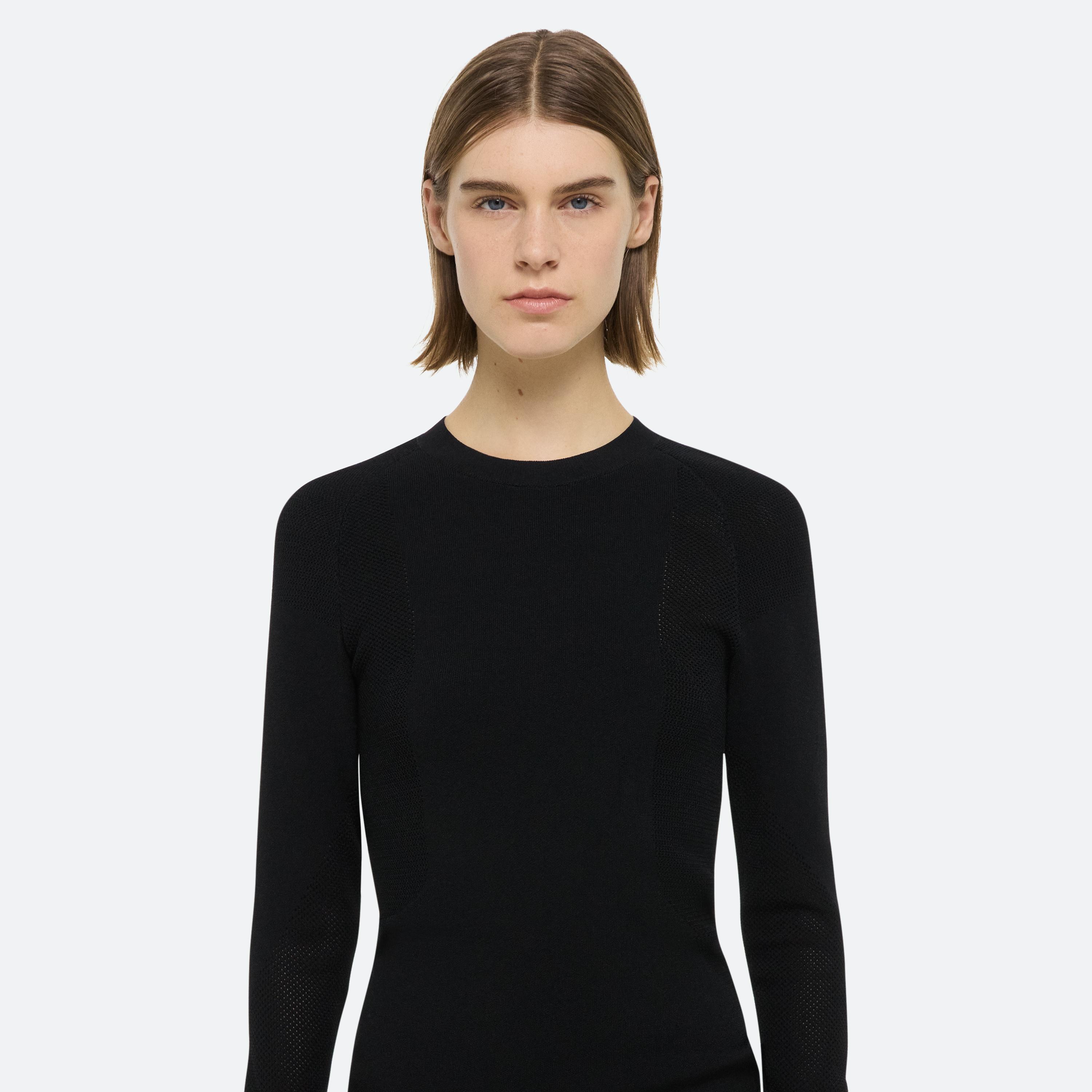 Crewneck sweater in recycled viscose. Knit with cushioned mesh panels that contour the body.