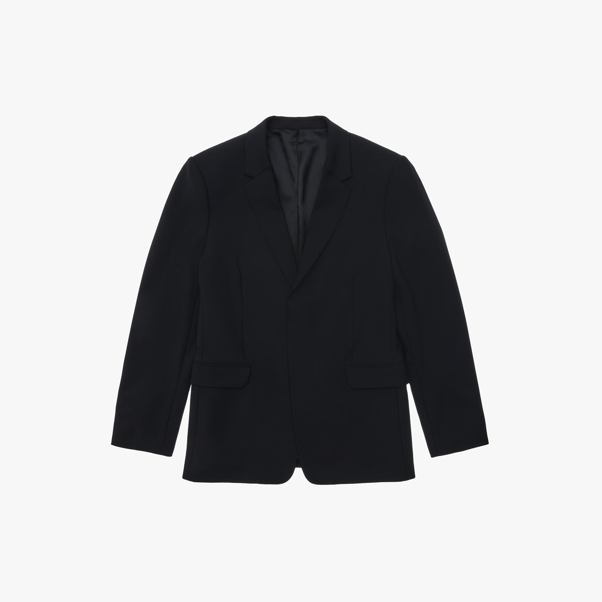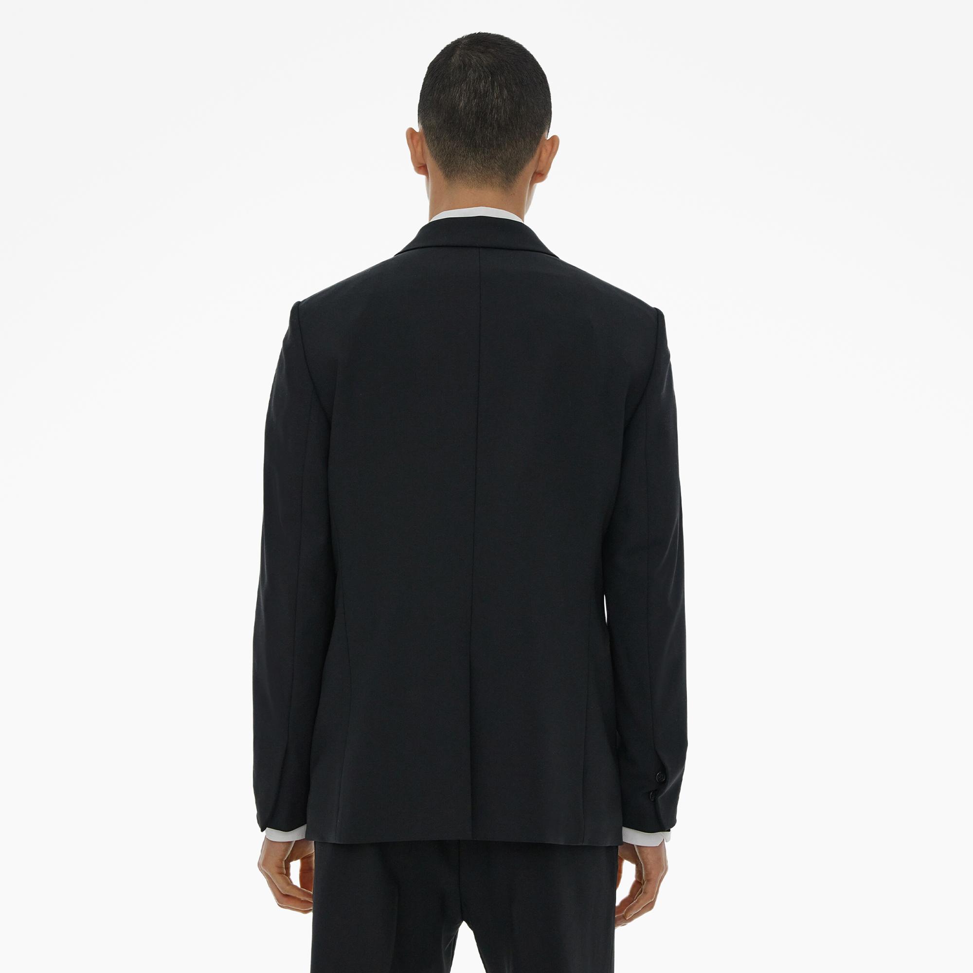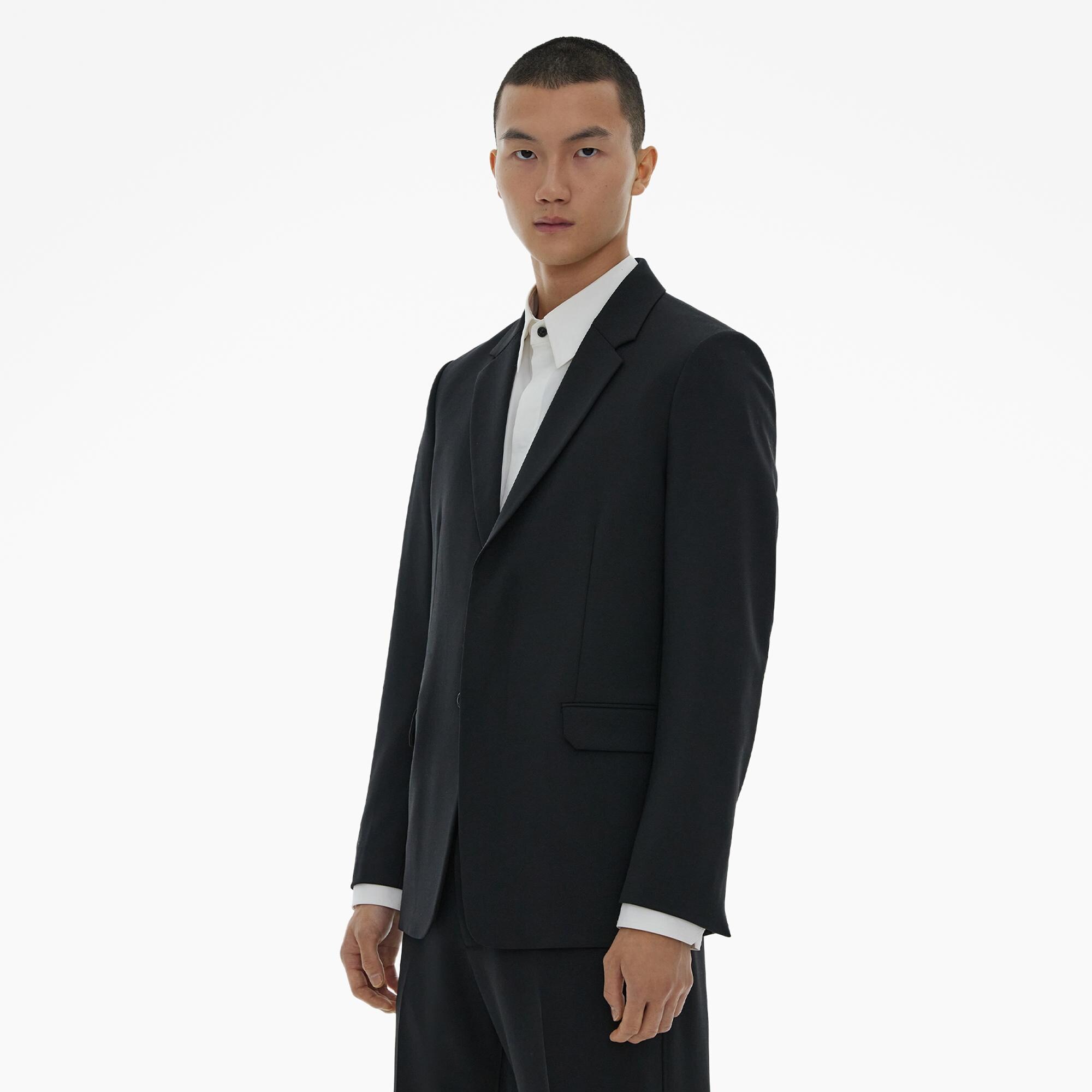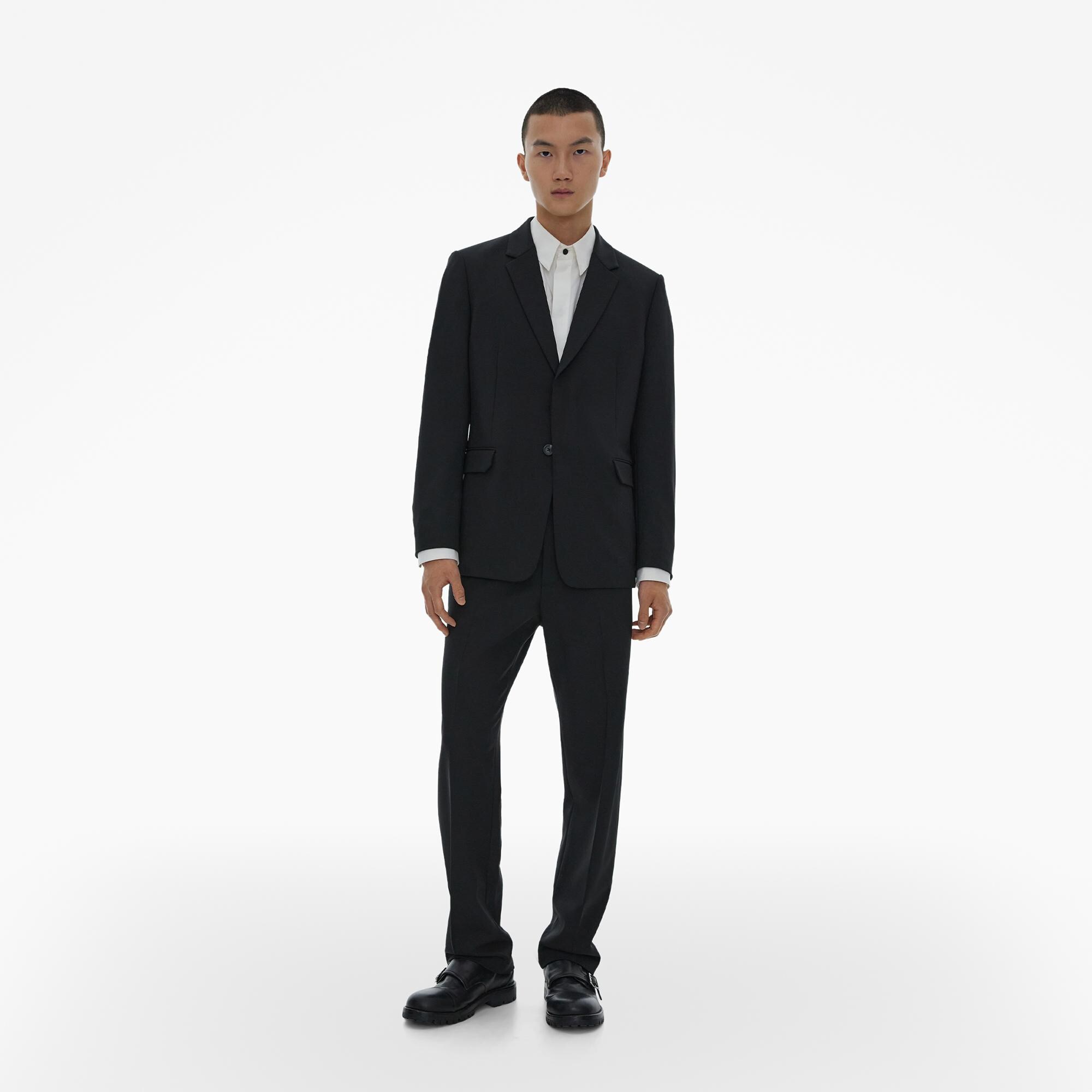 The Helmut Lang Blazer is a tailored style in a stretch wool-blend with notched lapels, button front closures, and waist flap pockets.