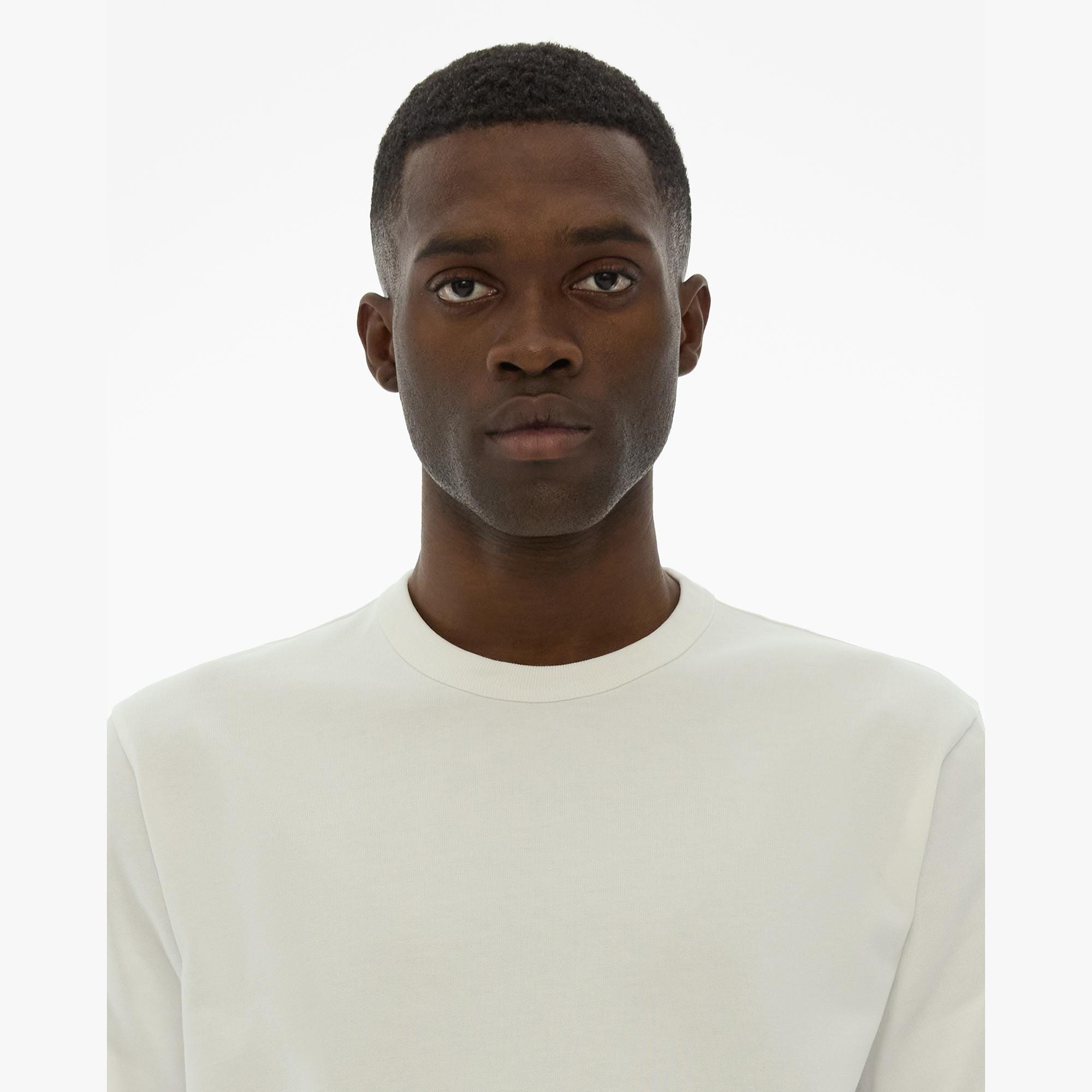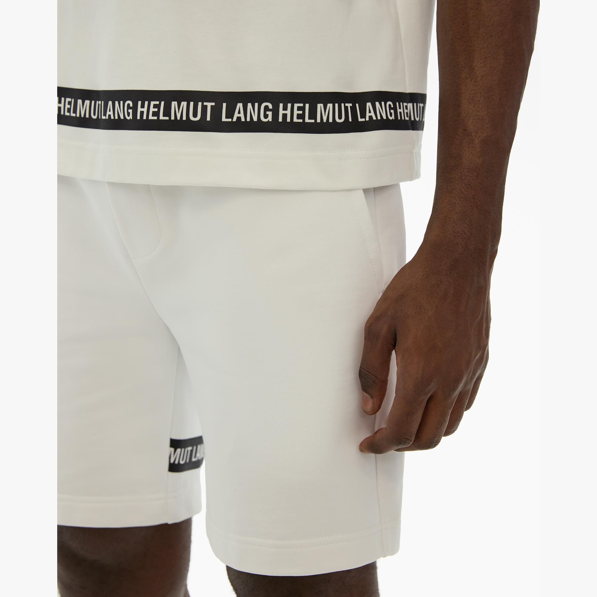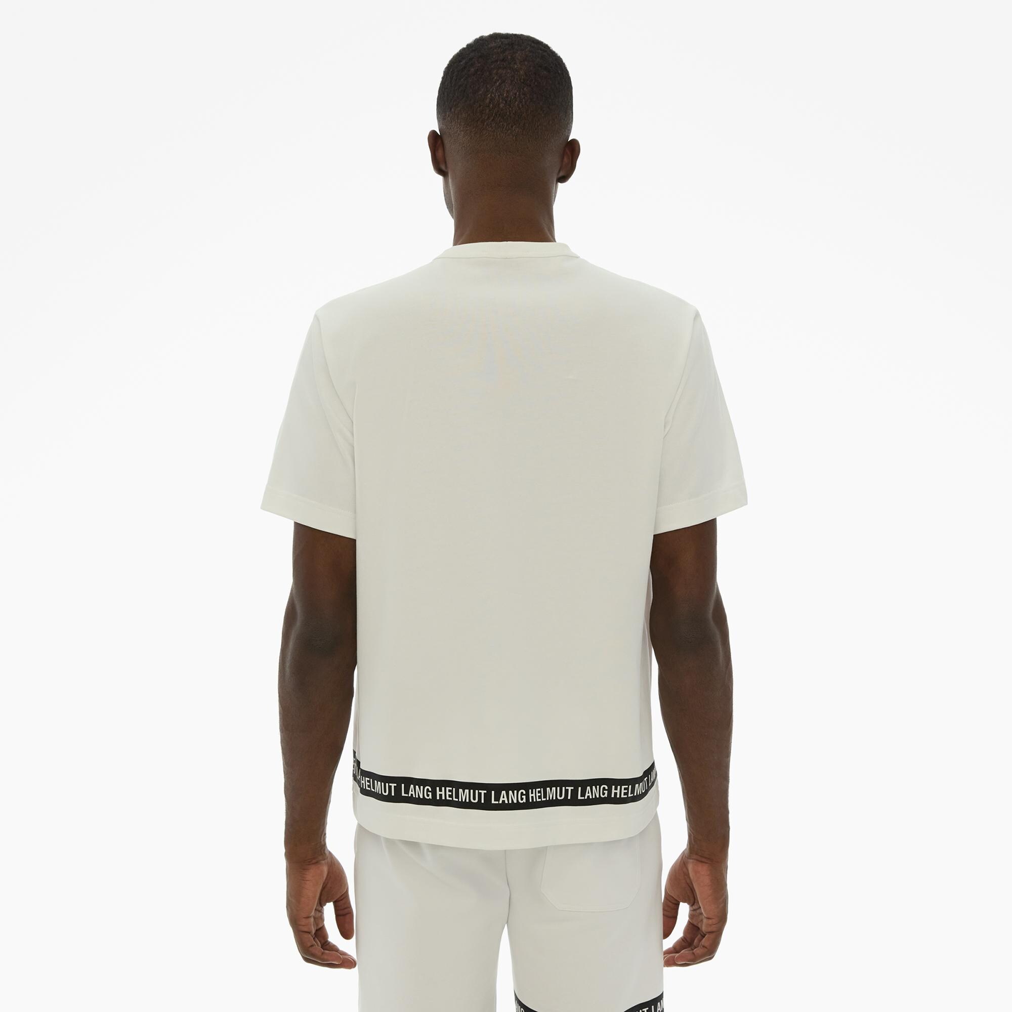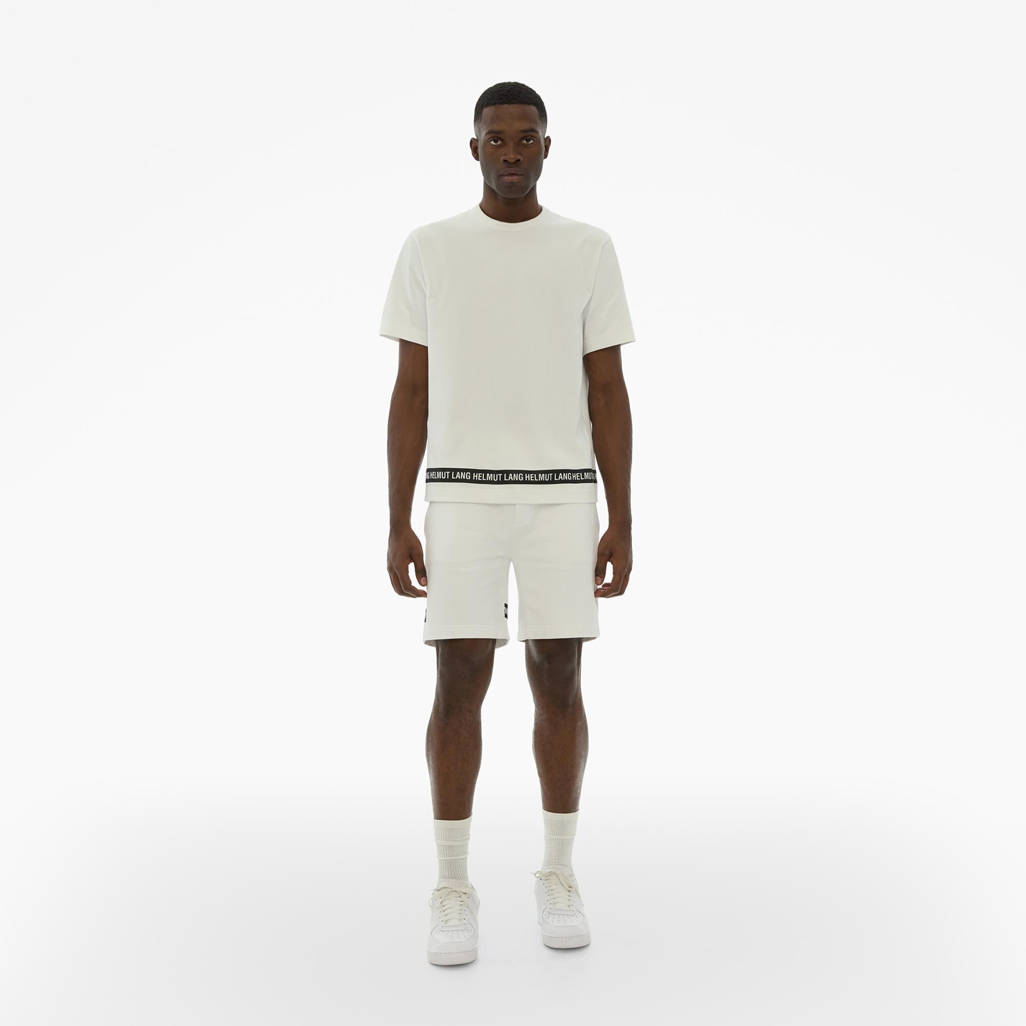 The Helmut Lang Tee is a cotton jersey crewneck with short sleeves and an HL logo striped hem.
