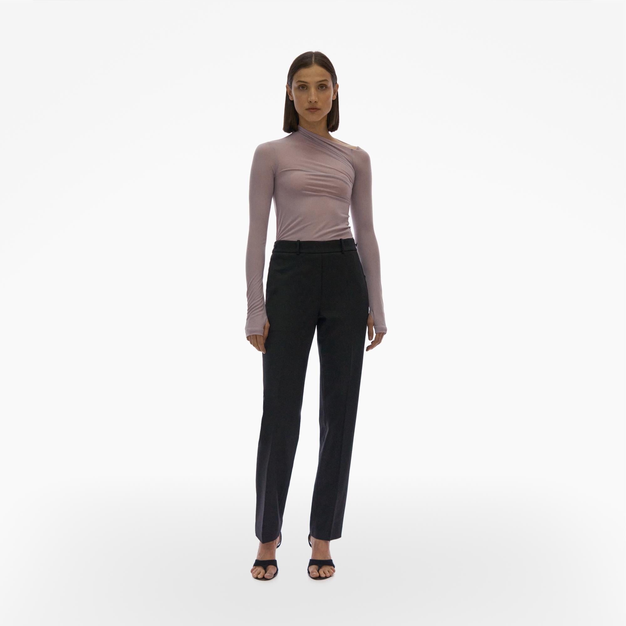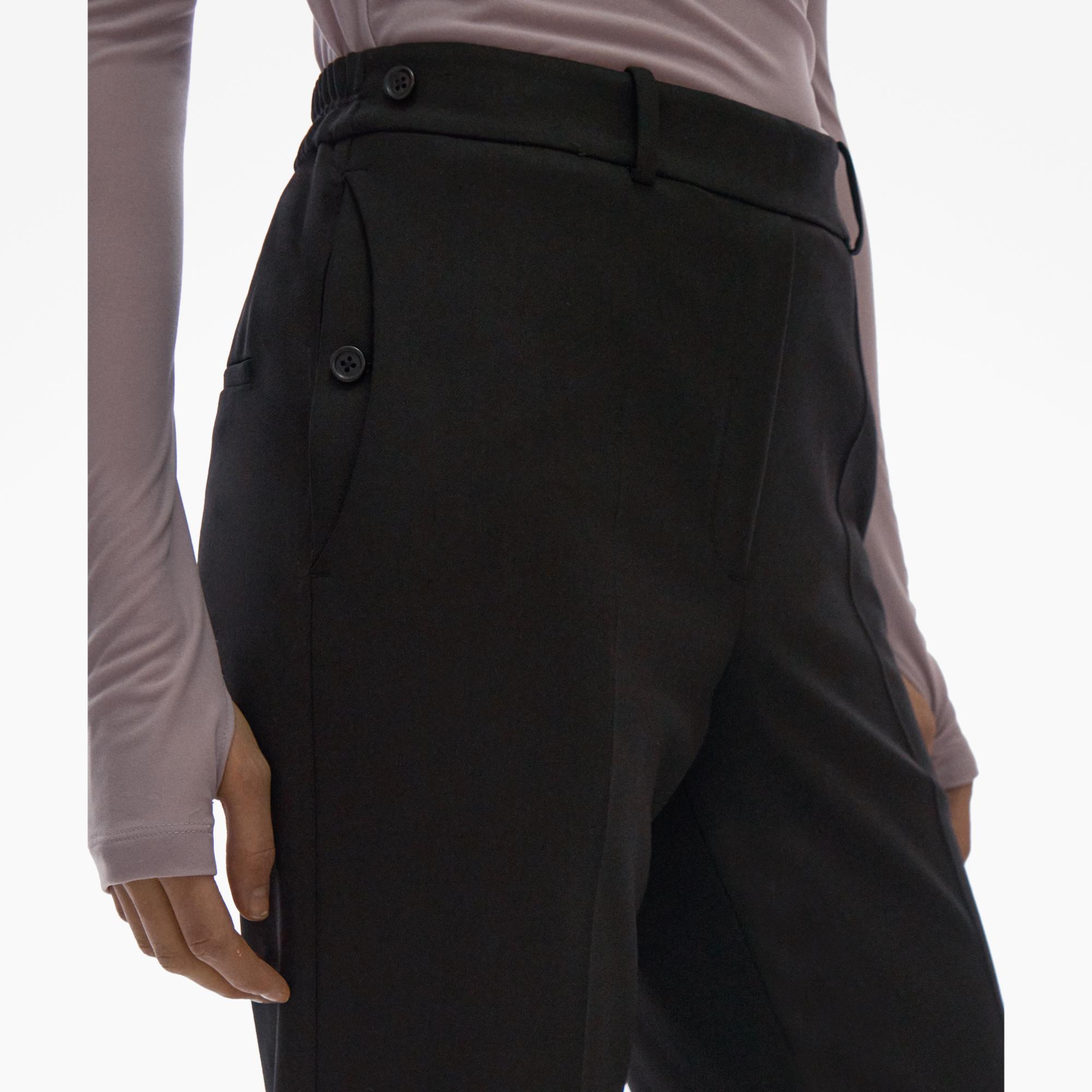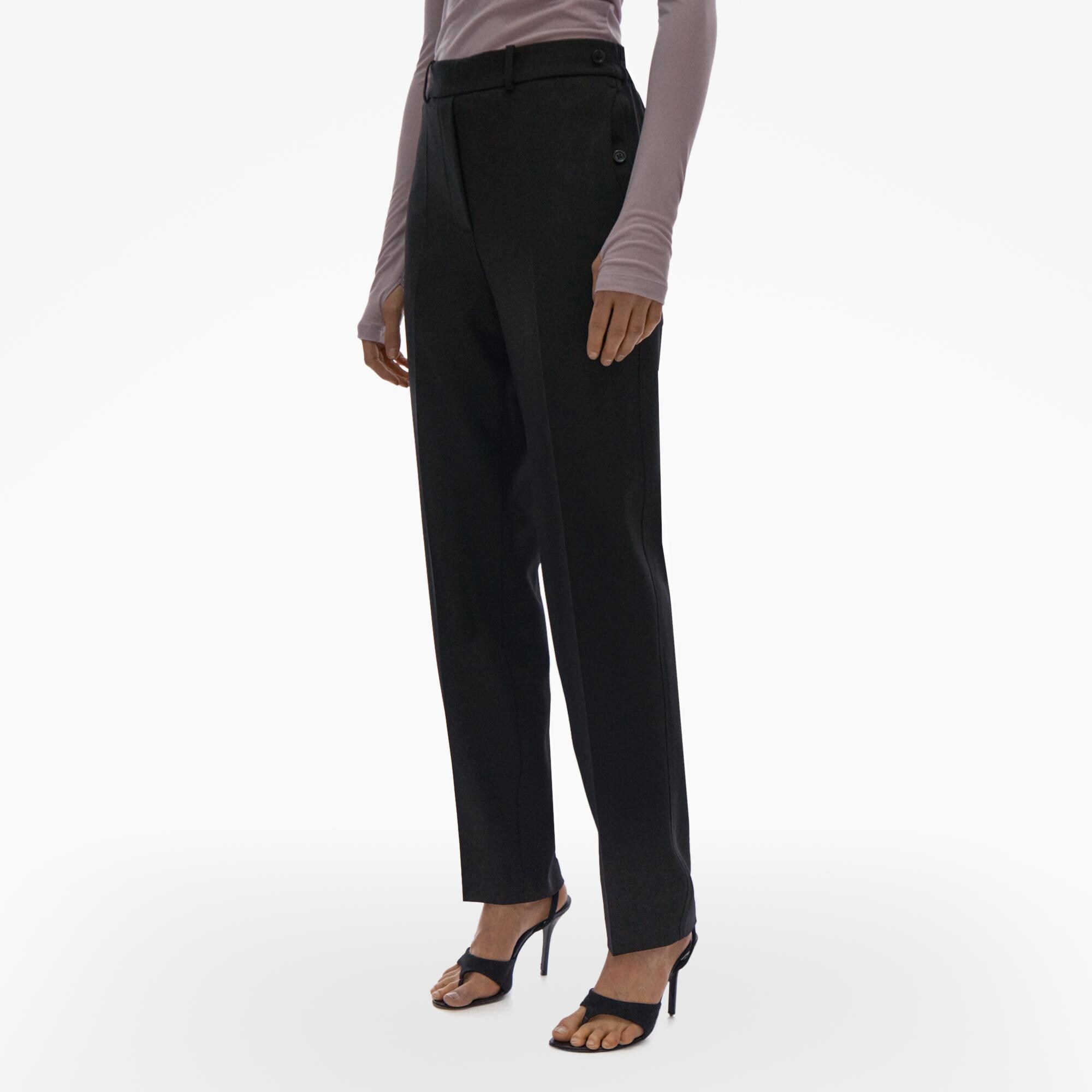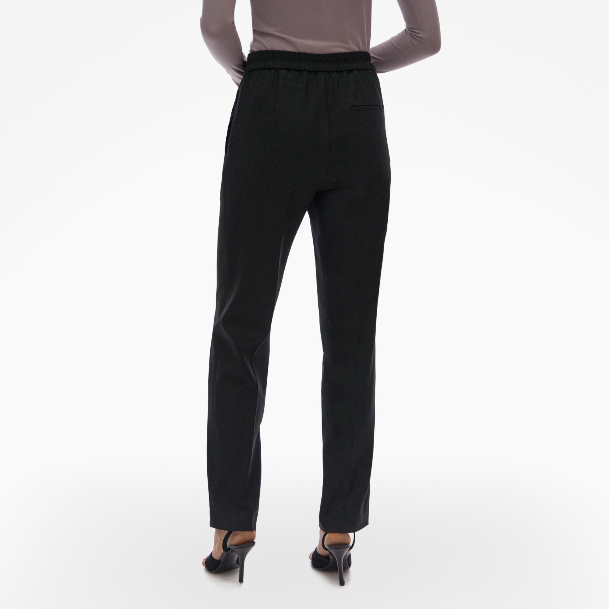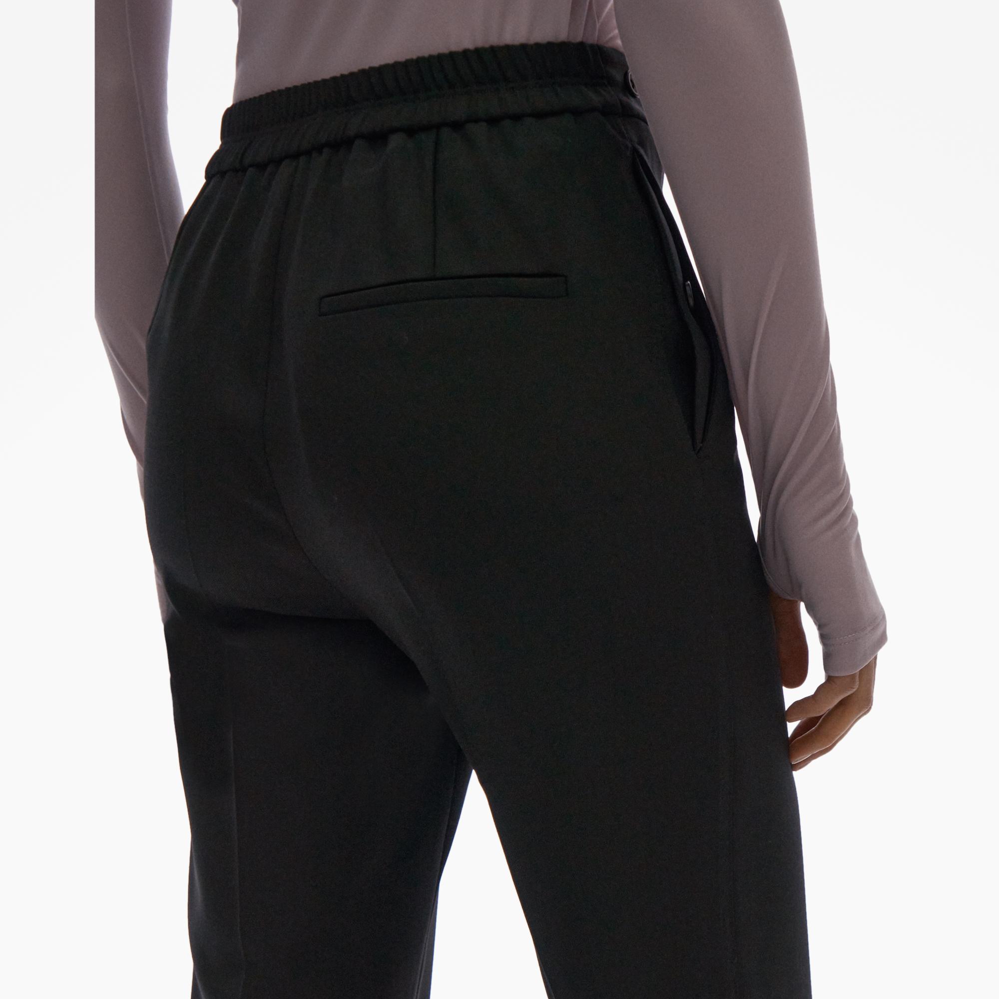 The Helmut Lang Tapered Pant is a pull-on style in stretch viscose twill with side slant pockets and a back elasticized waistband.