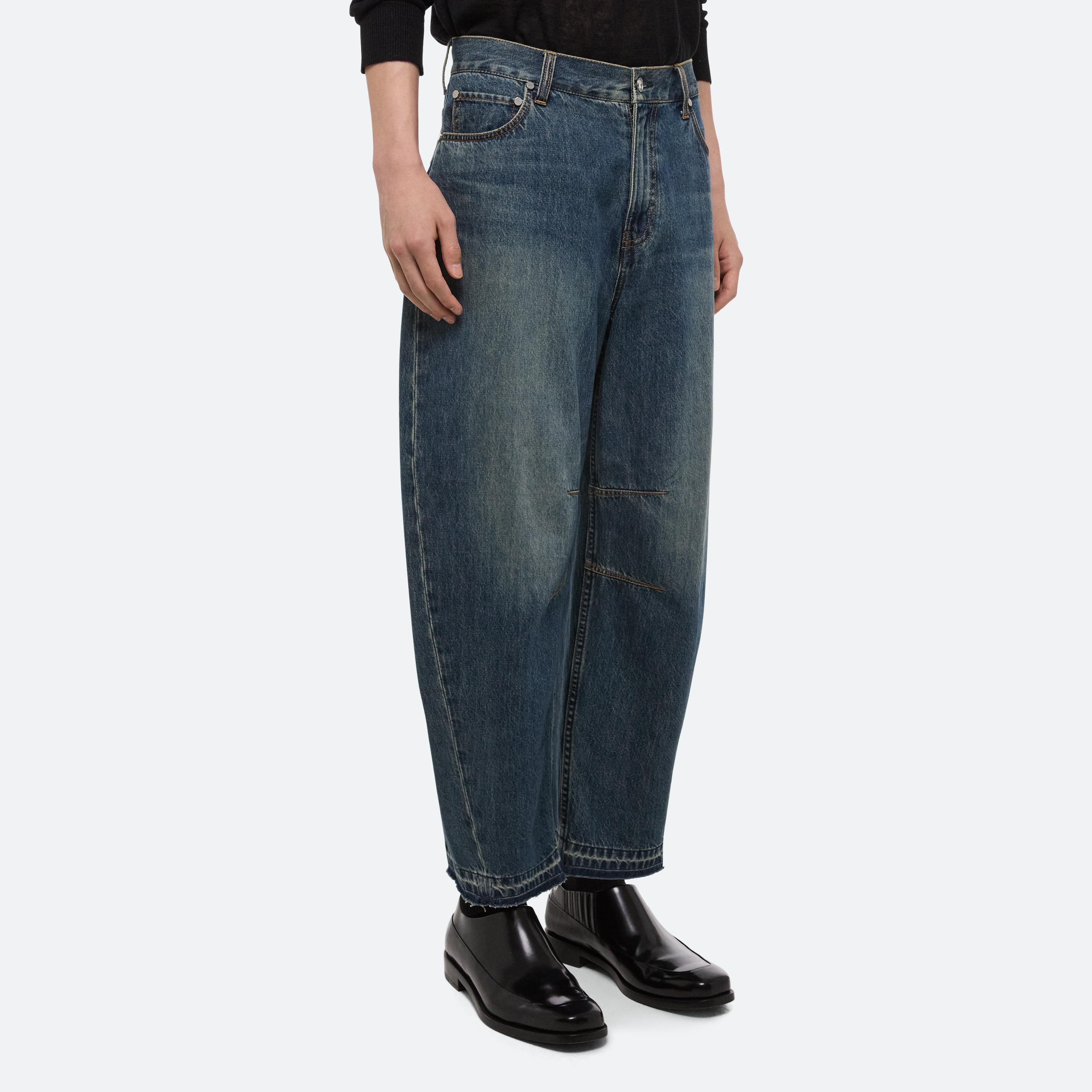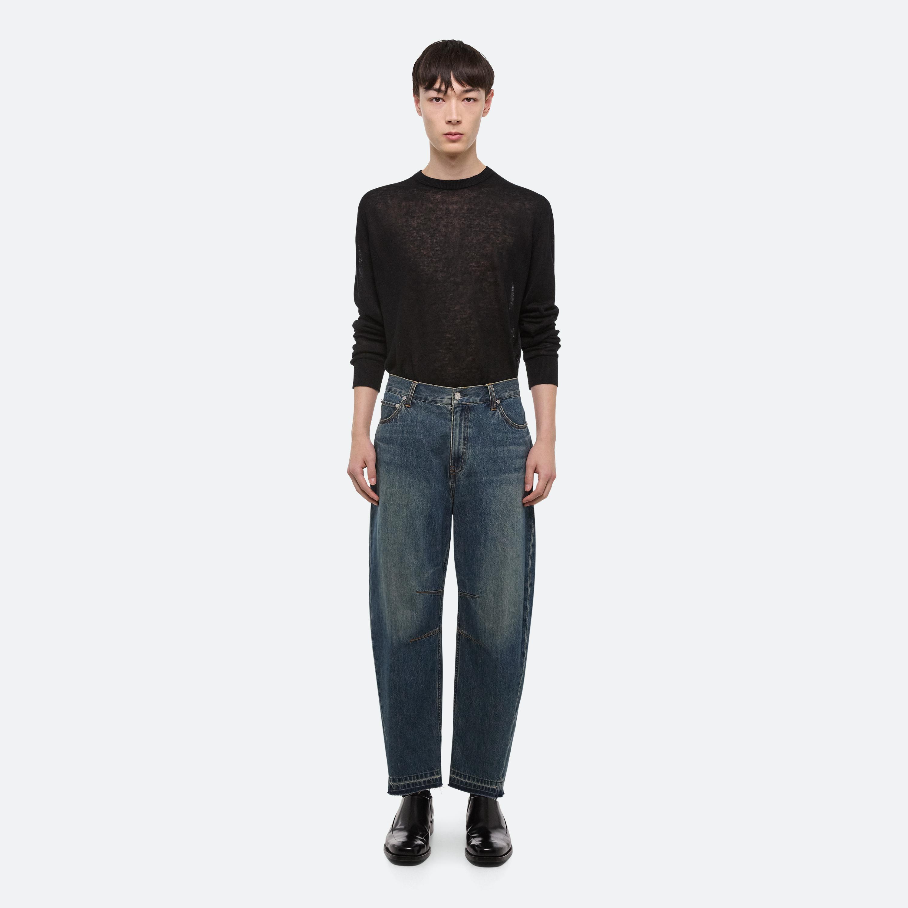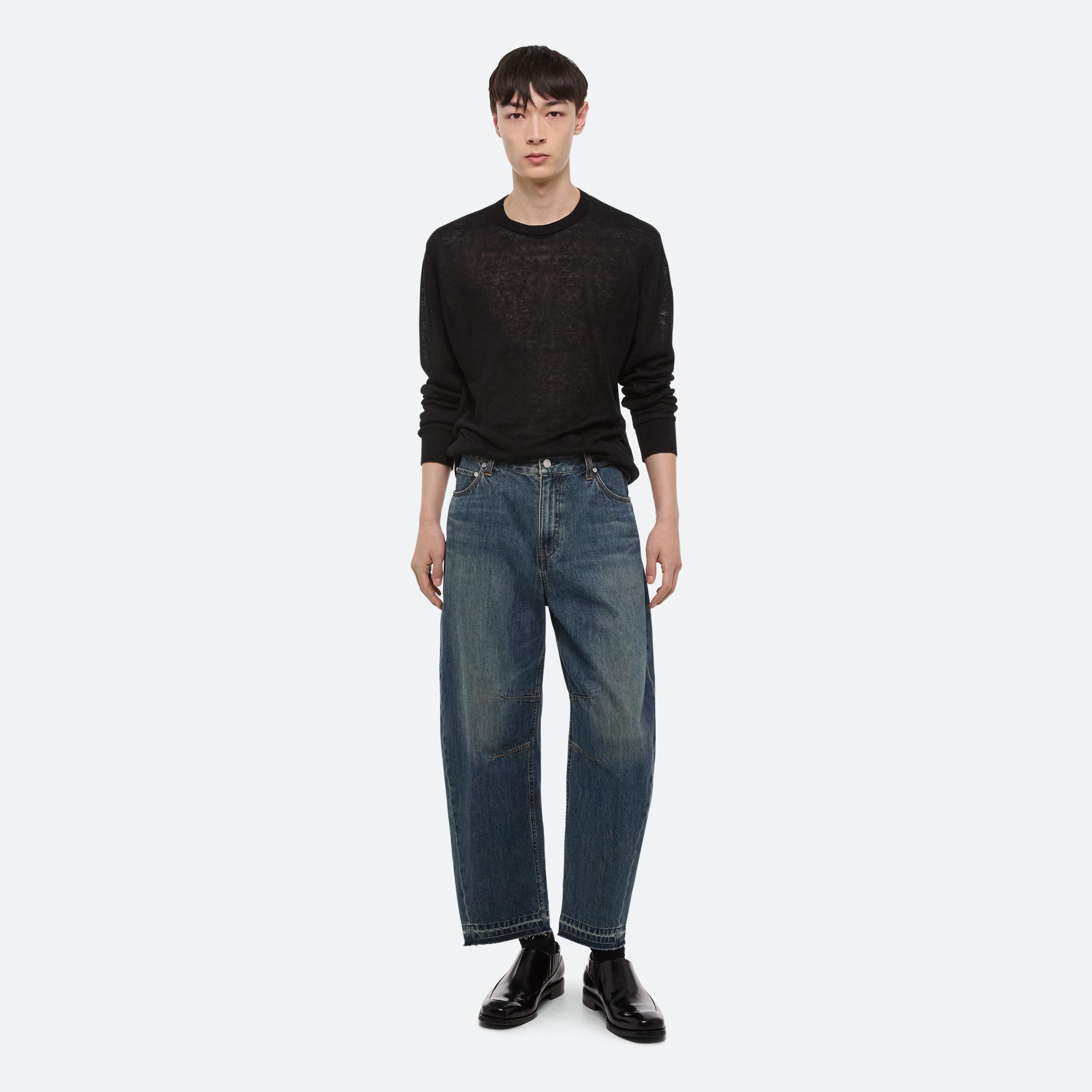 BUILT TO LAST: Washed down, worn in and cut with intention–denim takes on a refined workwear sensibility. Jeans are cocoon-shaped with raw edges, striking a balance between structure and ease. For women, a darted shirt originally designed in poplin returns in this signature denim, while the men’s version adds webbing details that nod to function as much as form.