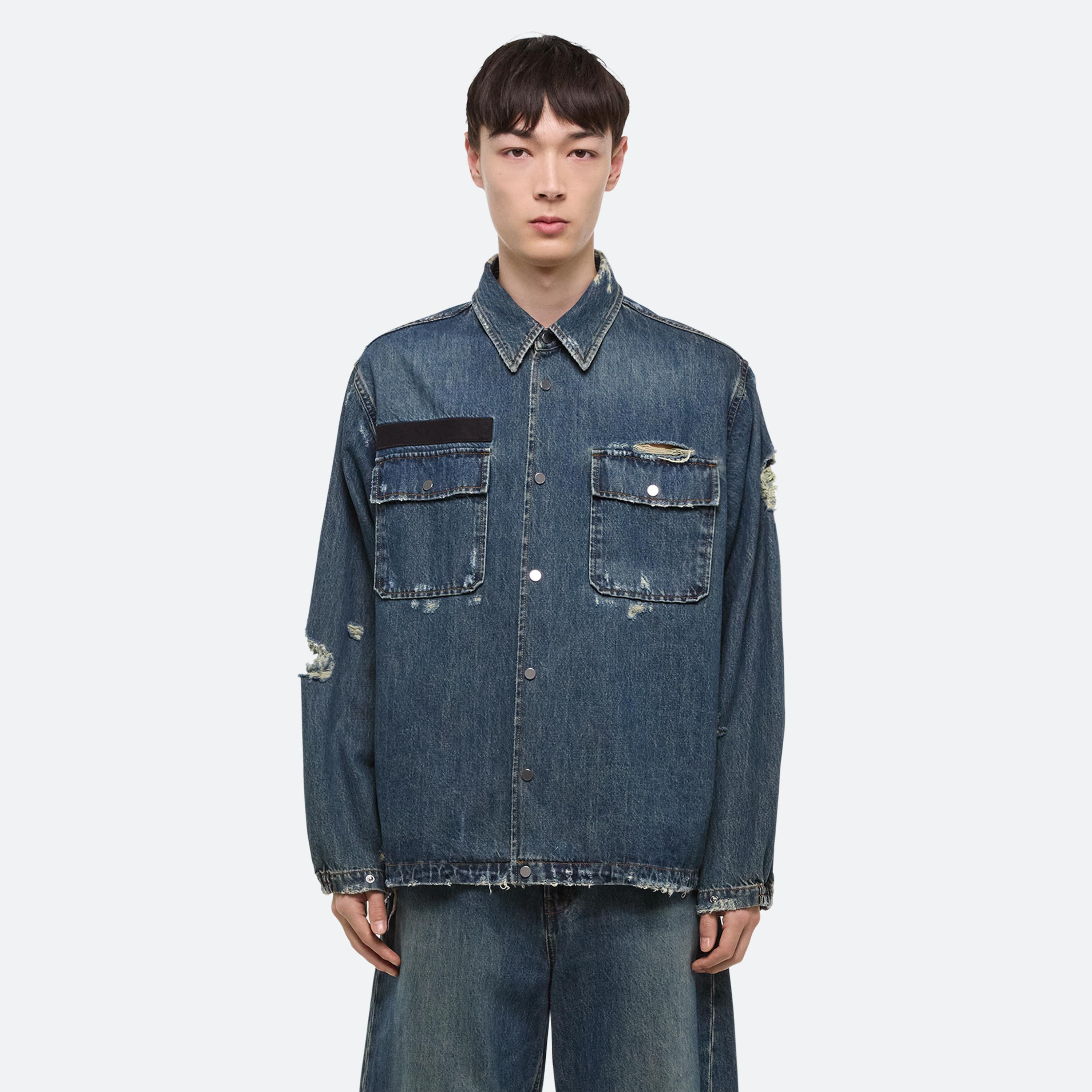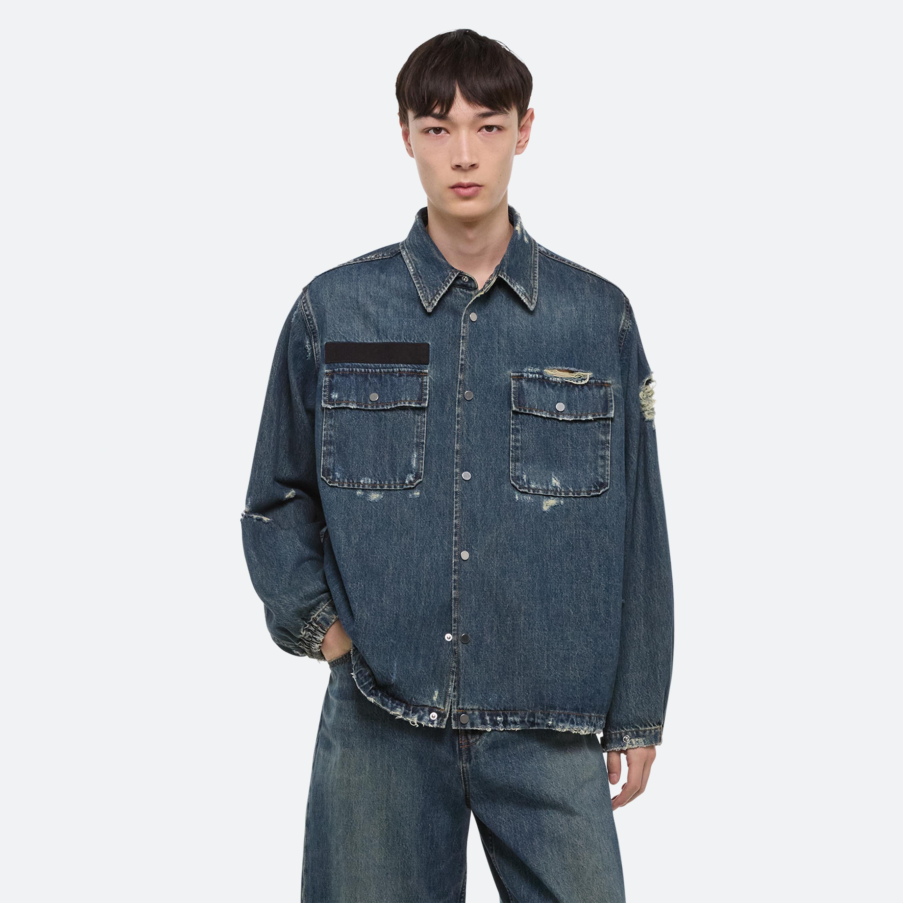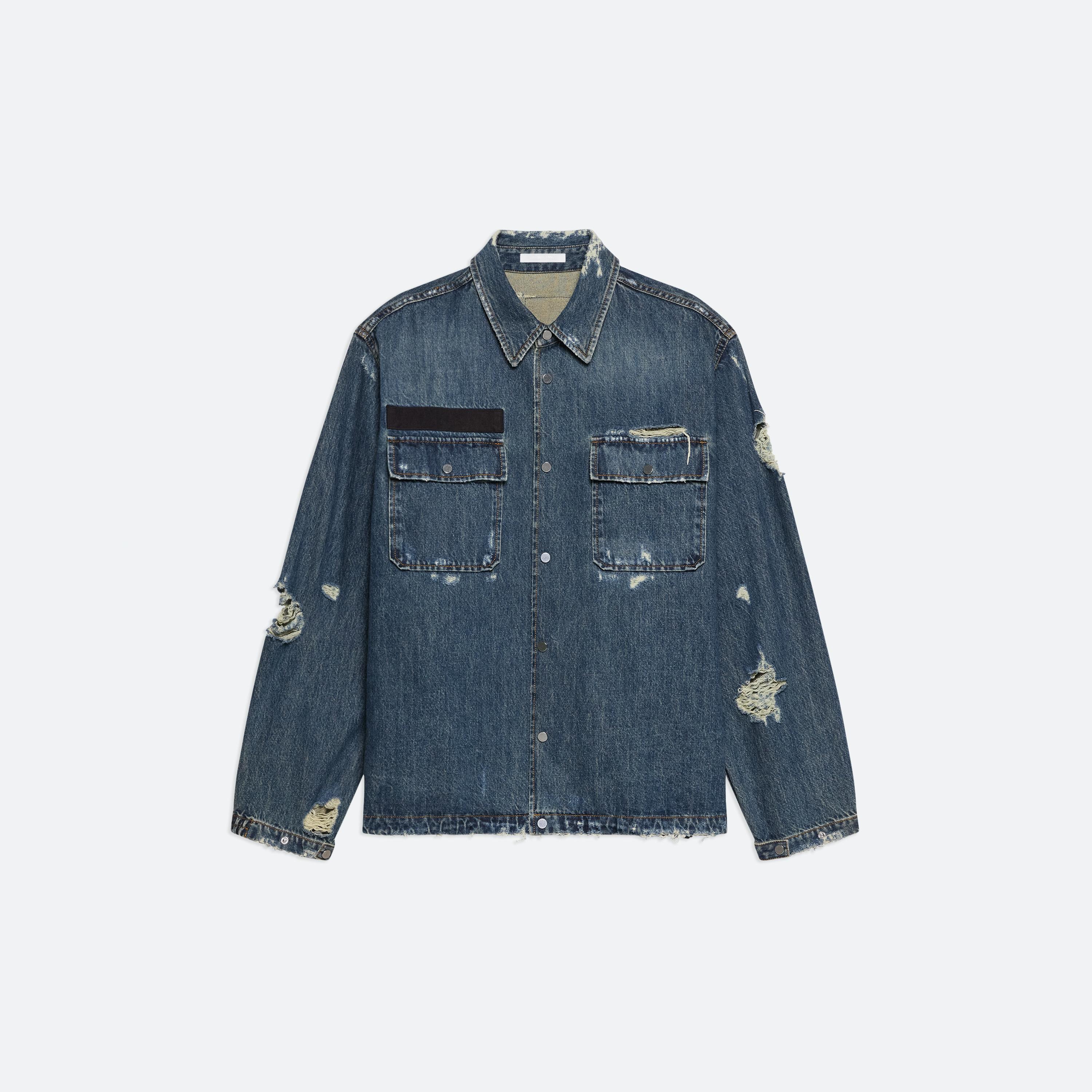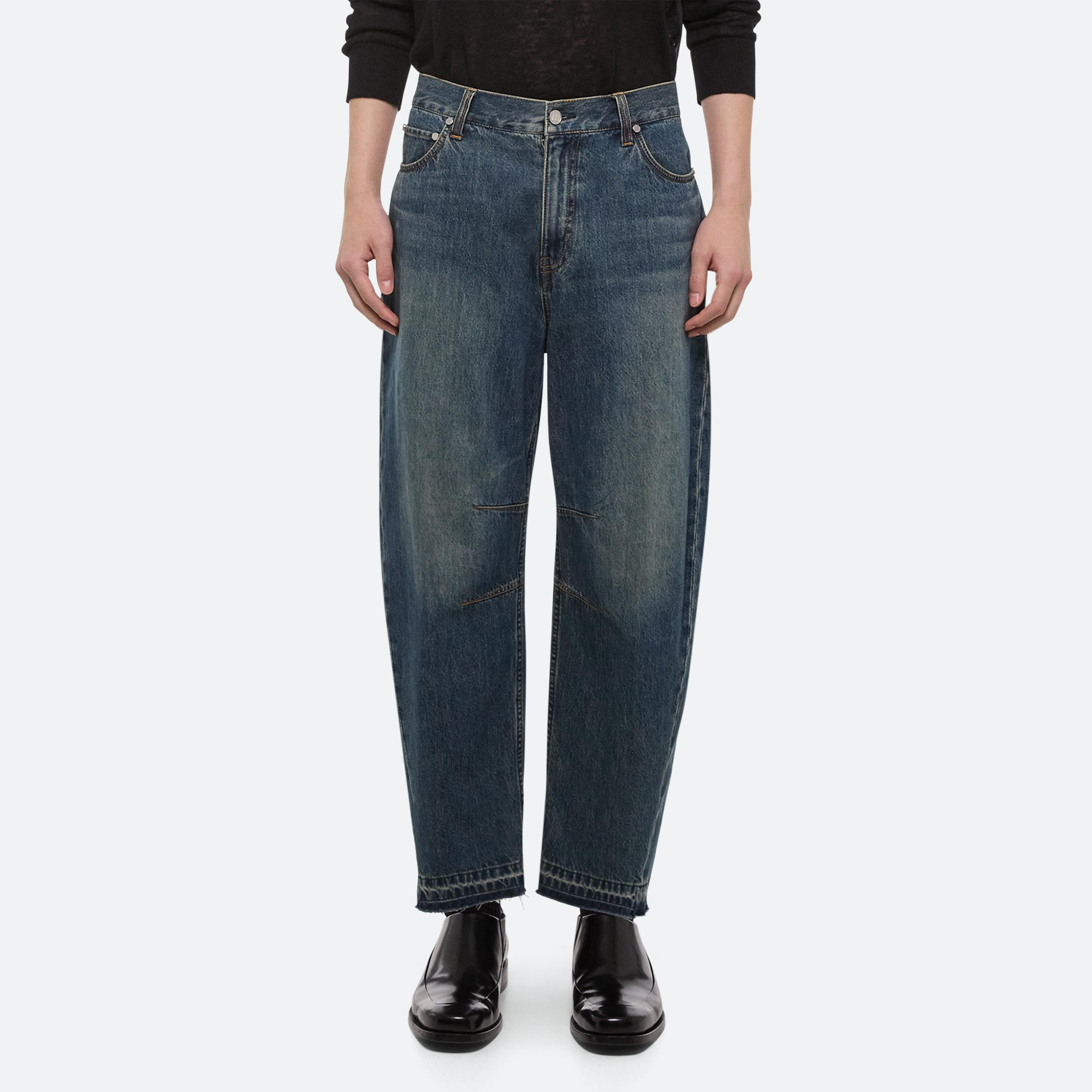 BUILT TO LAST: Washed down, worn in and cut with intention–denim takes on a refined workwear sensibility. Jeans are cocoon-shaped with raw edges, striking a balance between structure and ease. For women, a darted shirt originally designed in poplin returns in this signature denim, while the men’s version adds webbing details that nod to function as much as form.