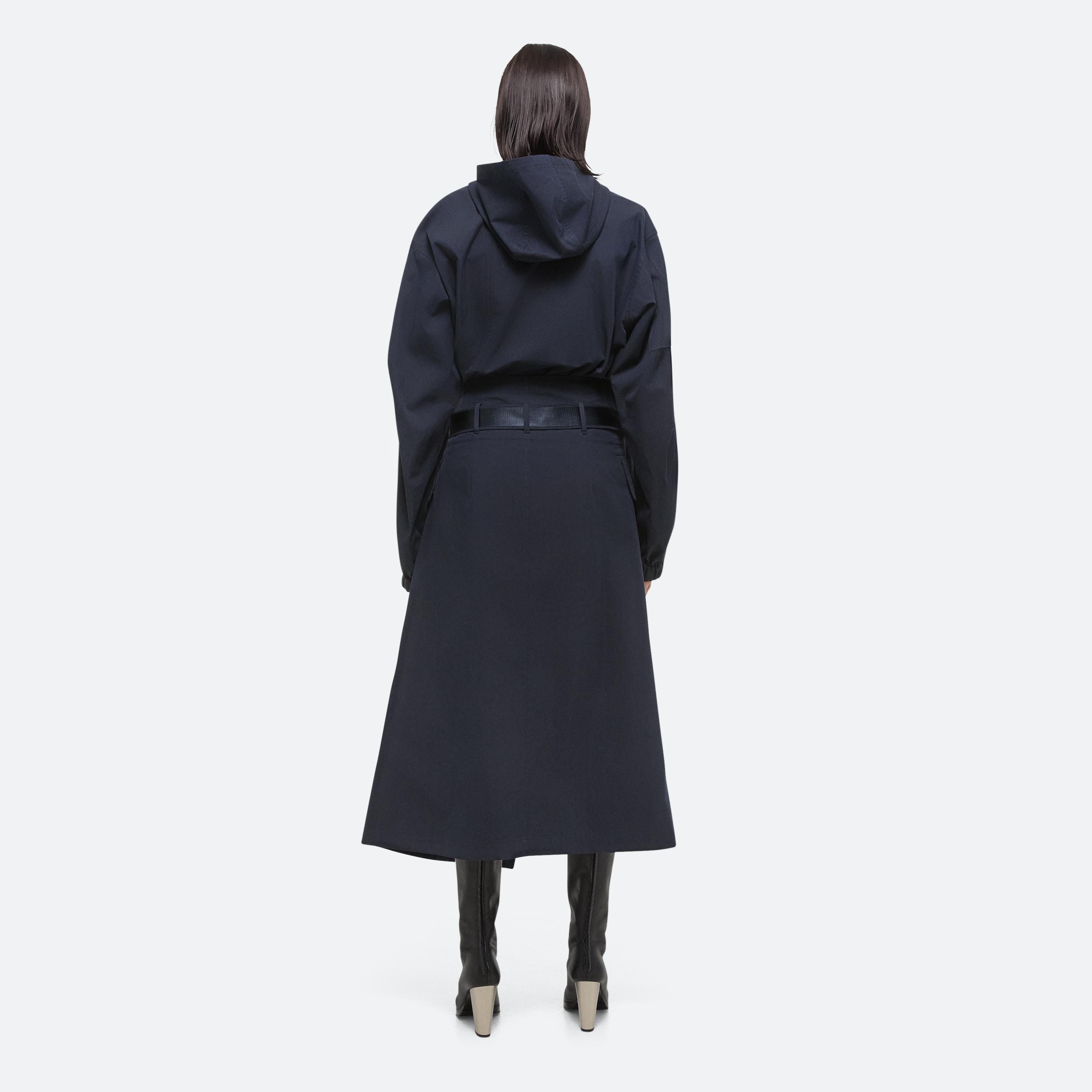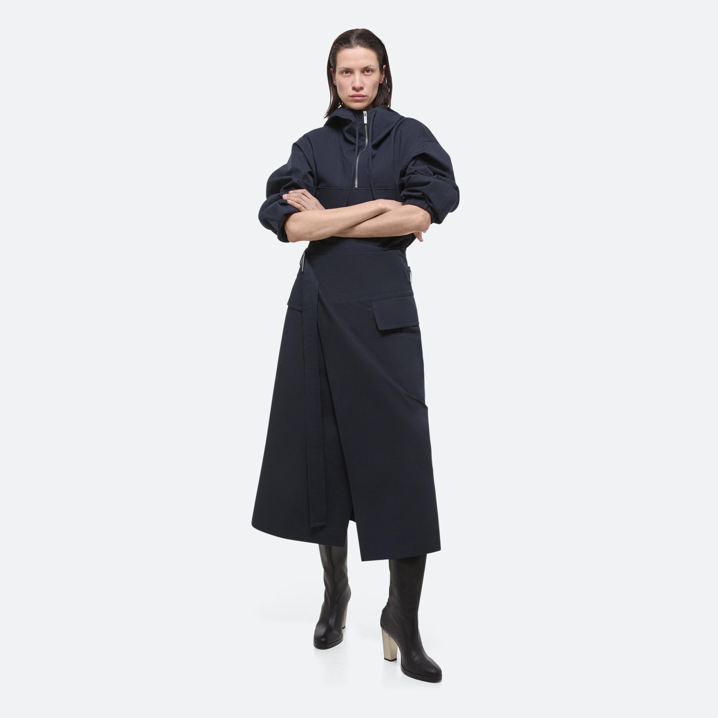 Wrap skirt with signature seatbelt closure in a cotton blend. Made with trench coat-inspired details like oversized flap pockets, and a slight paperbag waist at the back.