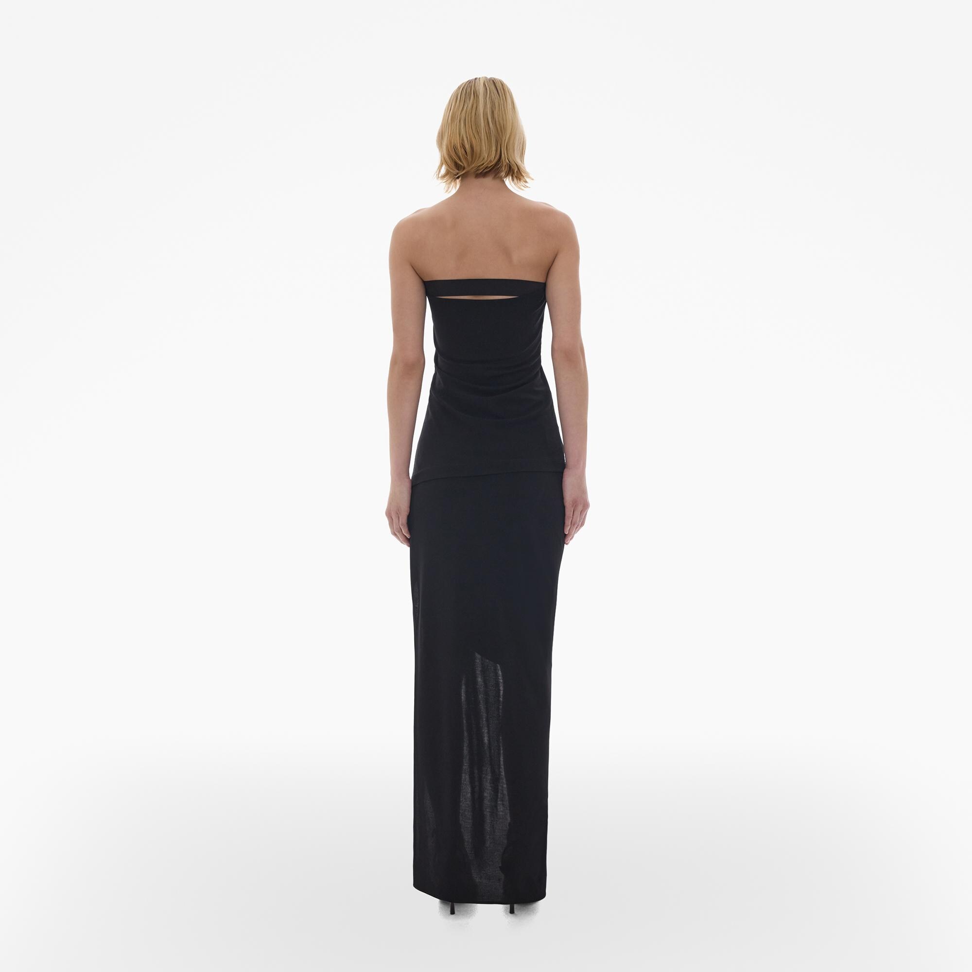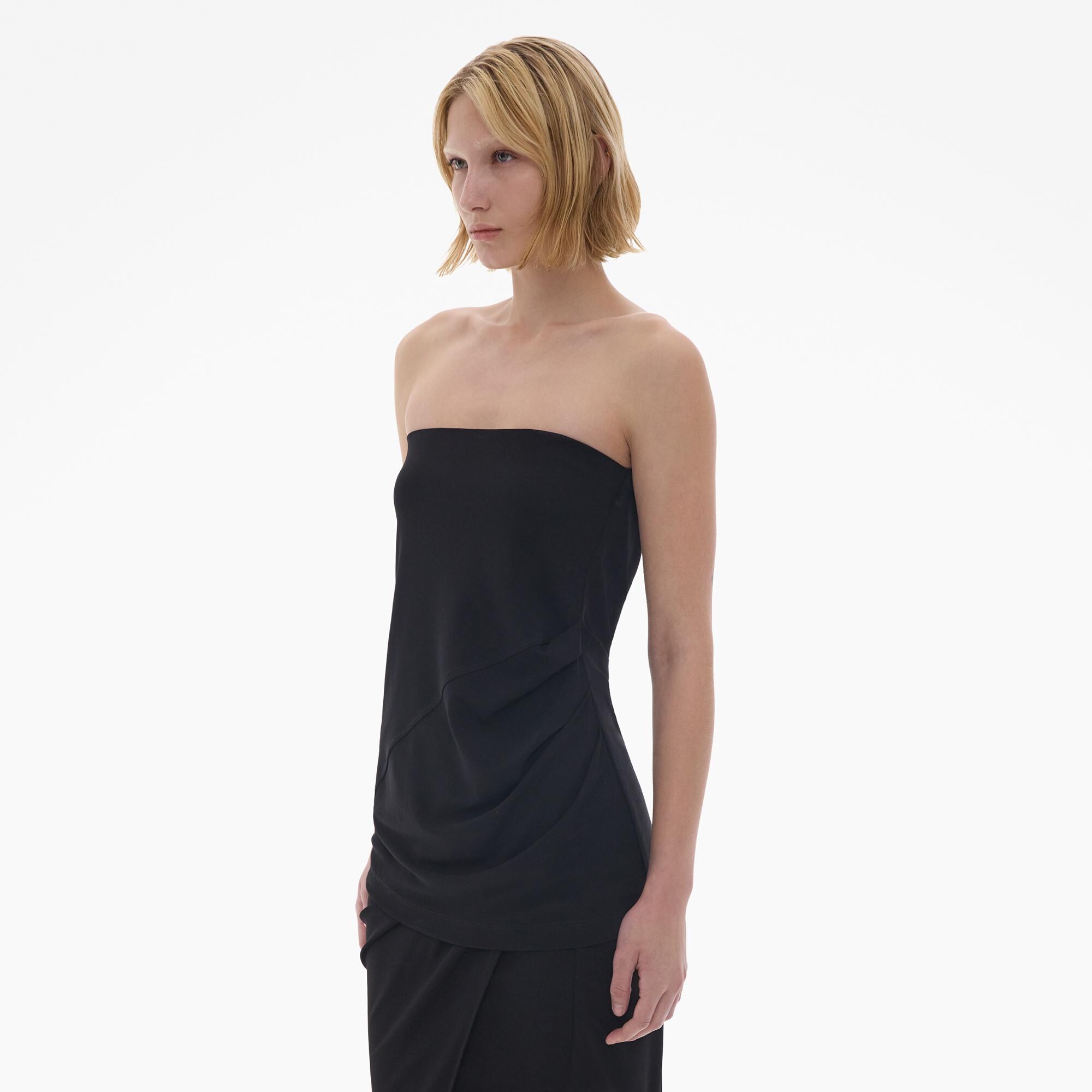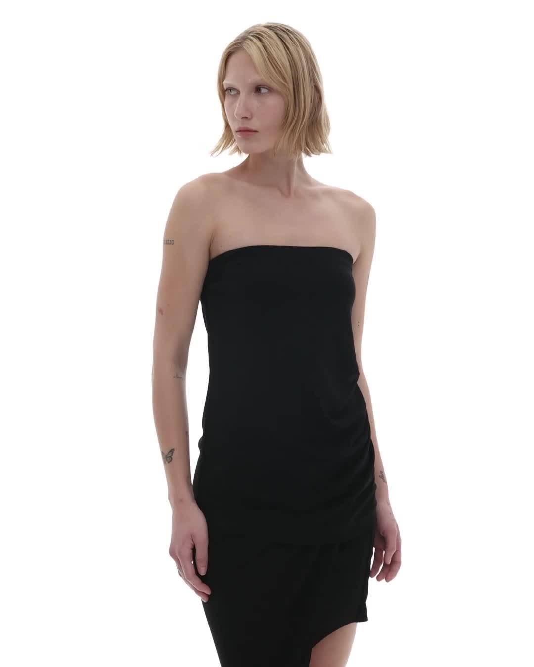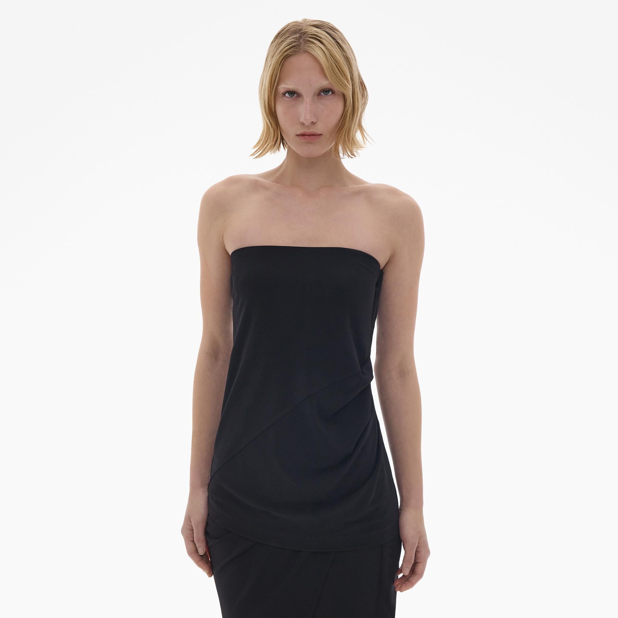 The Helmut Lang Tube Top is a pull-over style in a lightweight viscose jersey with a strapless neckline and a draped back with an elastic band.