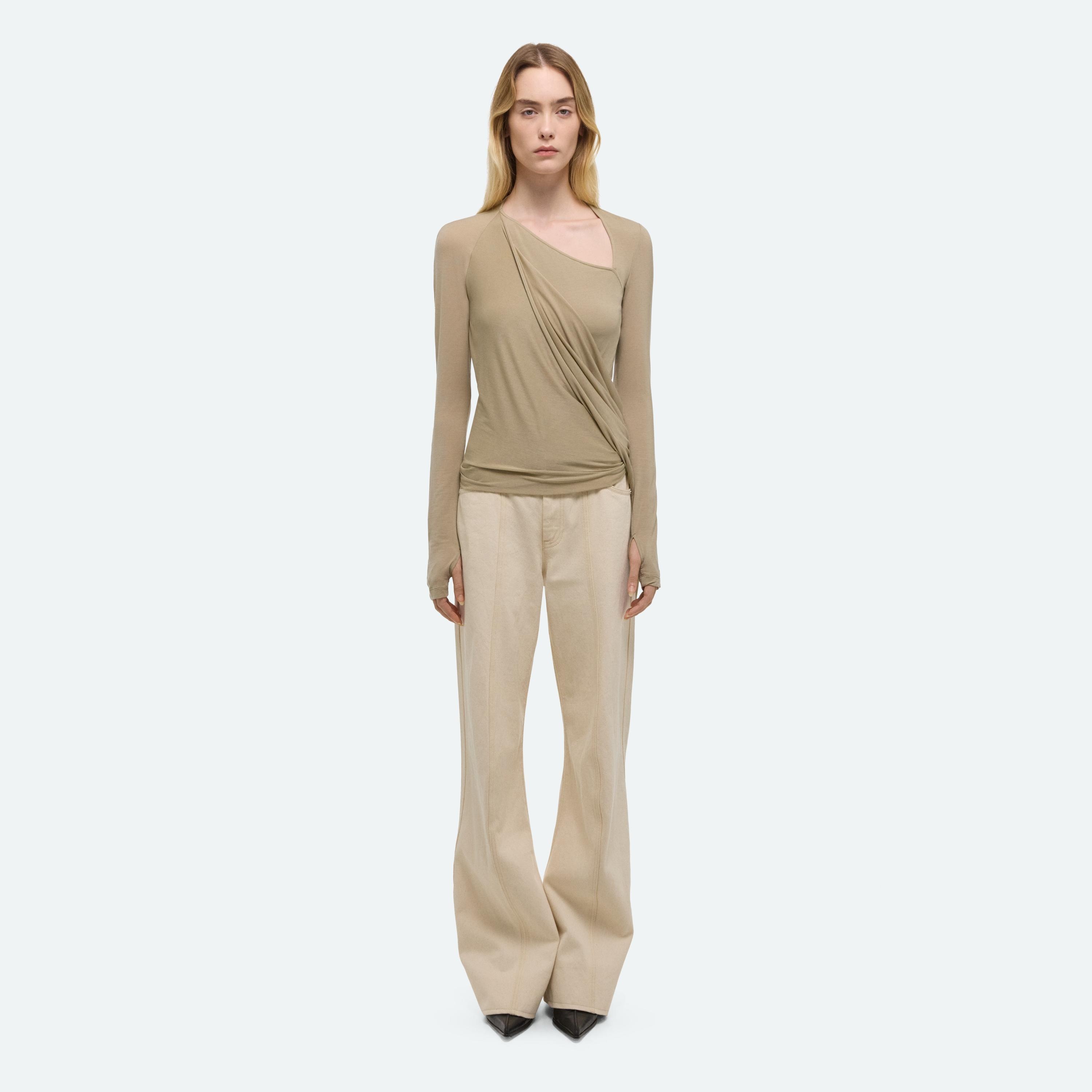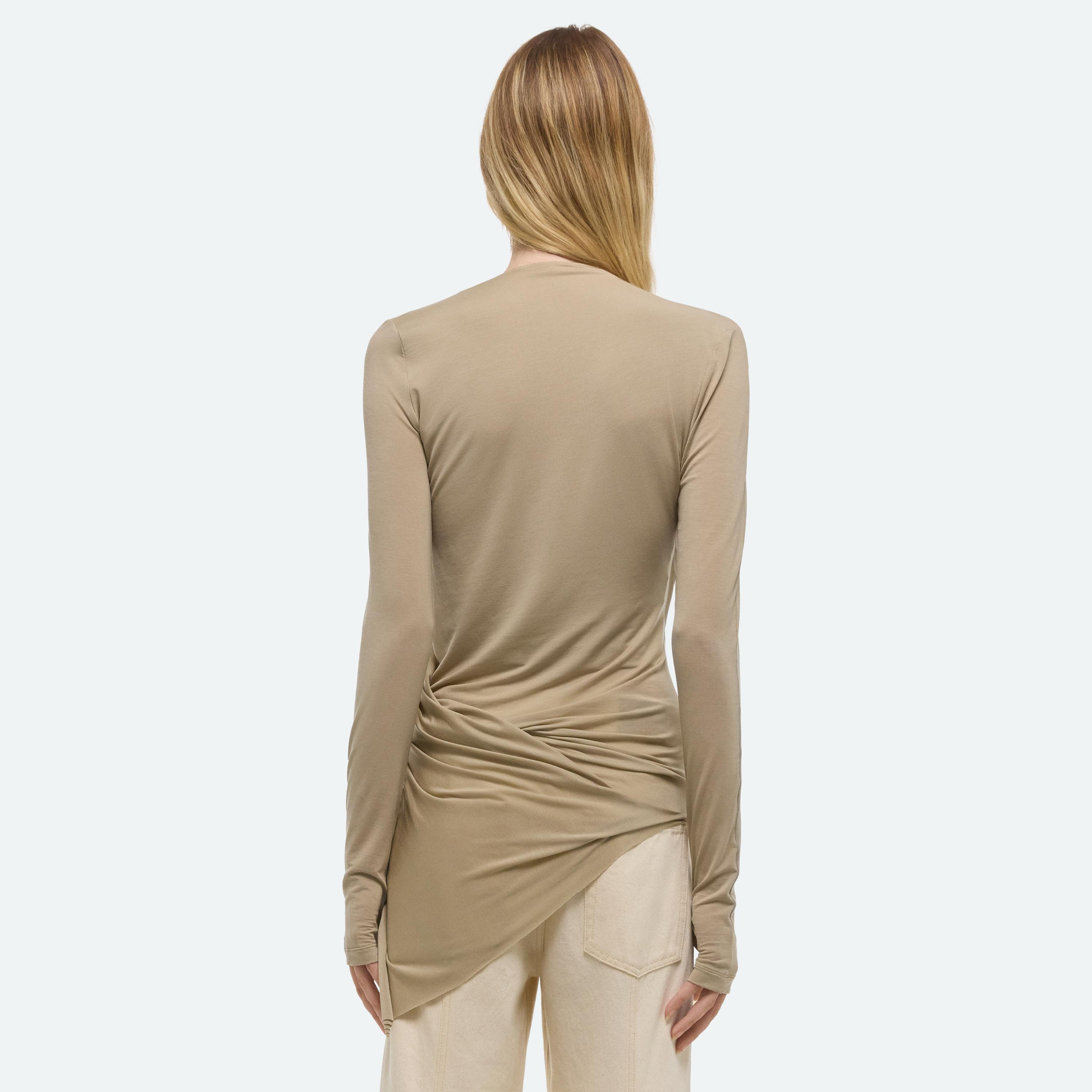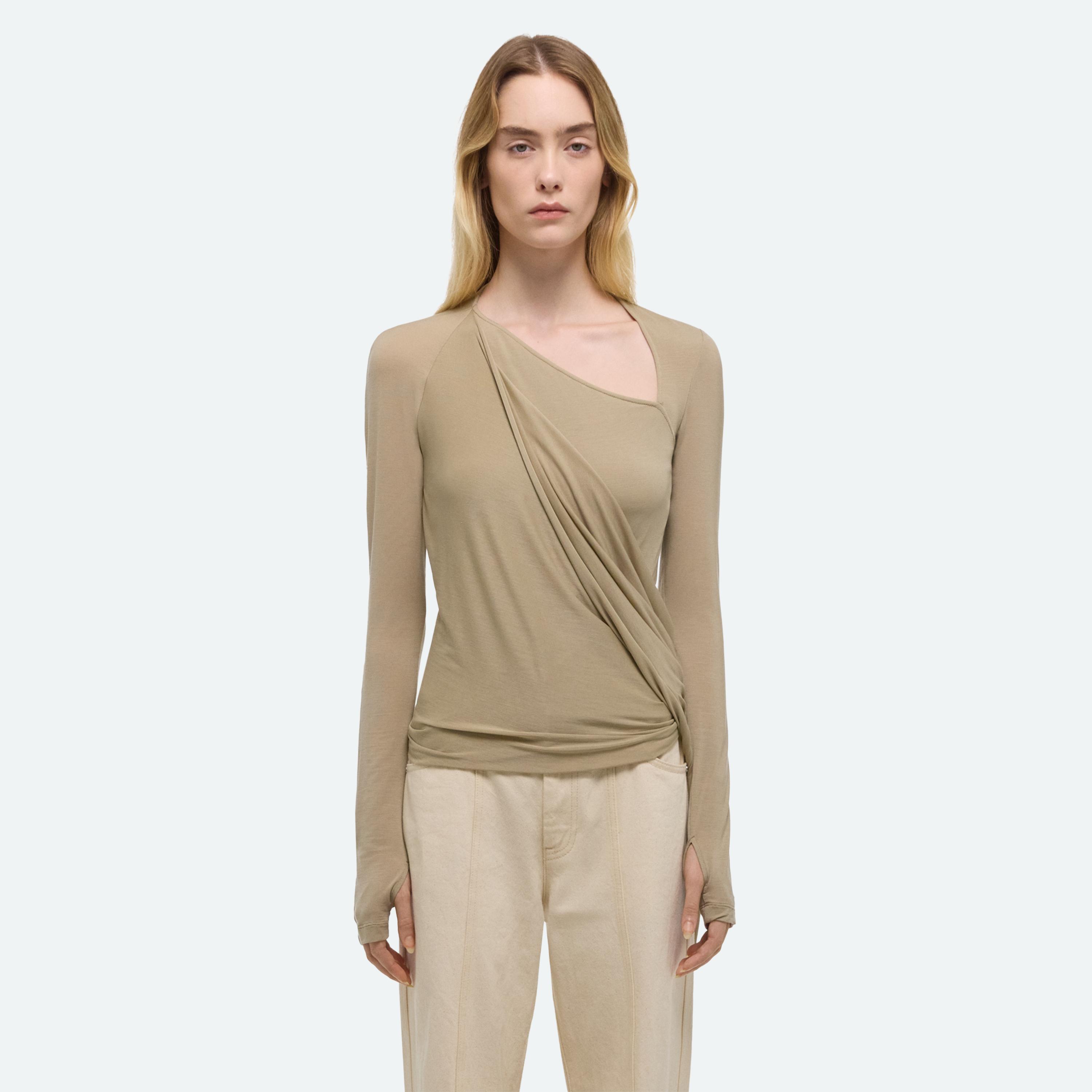Long-sleeve top in soft lyocell jersey with asymmetrical draped detail that wraps around the body.