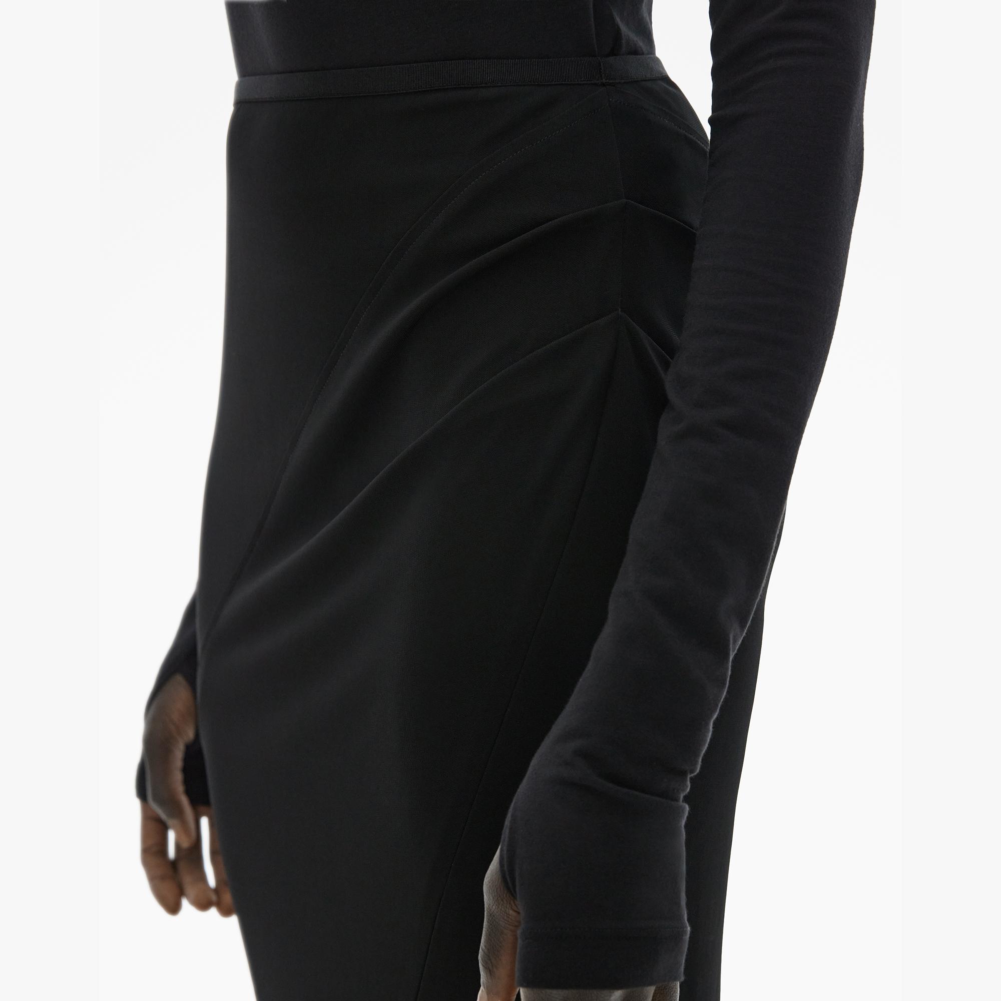 The Helmut Lang Twist Skirt is a pull-on midi style in lightweight viscose jersey with ruched and slit details at the side.