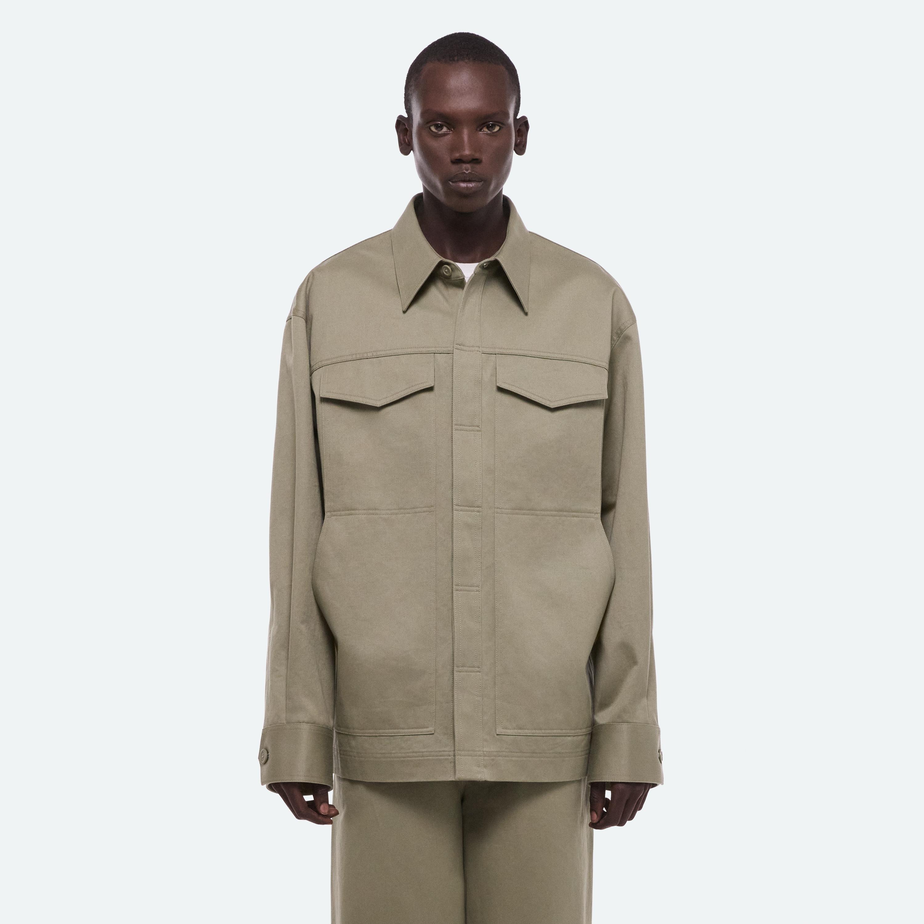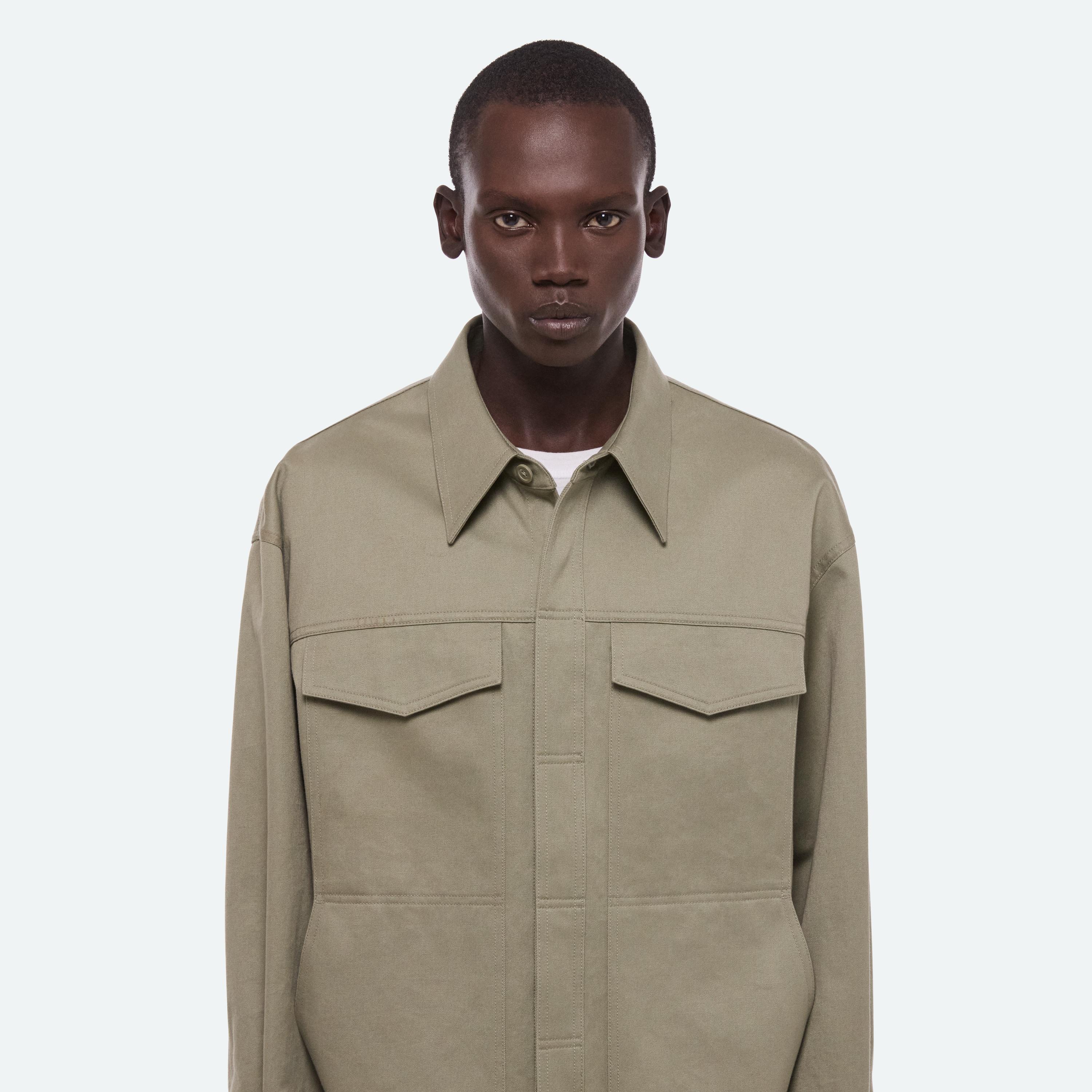 Lightweight jacket in cotton chino twill. Features utility details pulled from military uniforms and cut with a relaxed fit that wears like an overshirt.