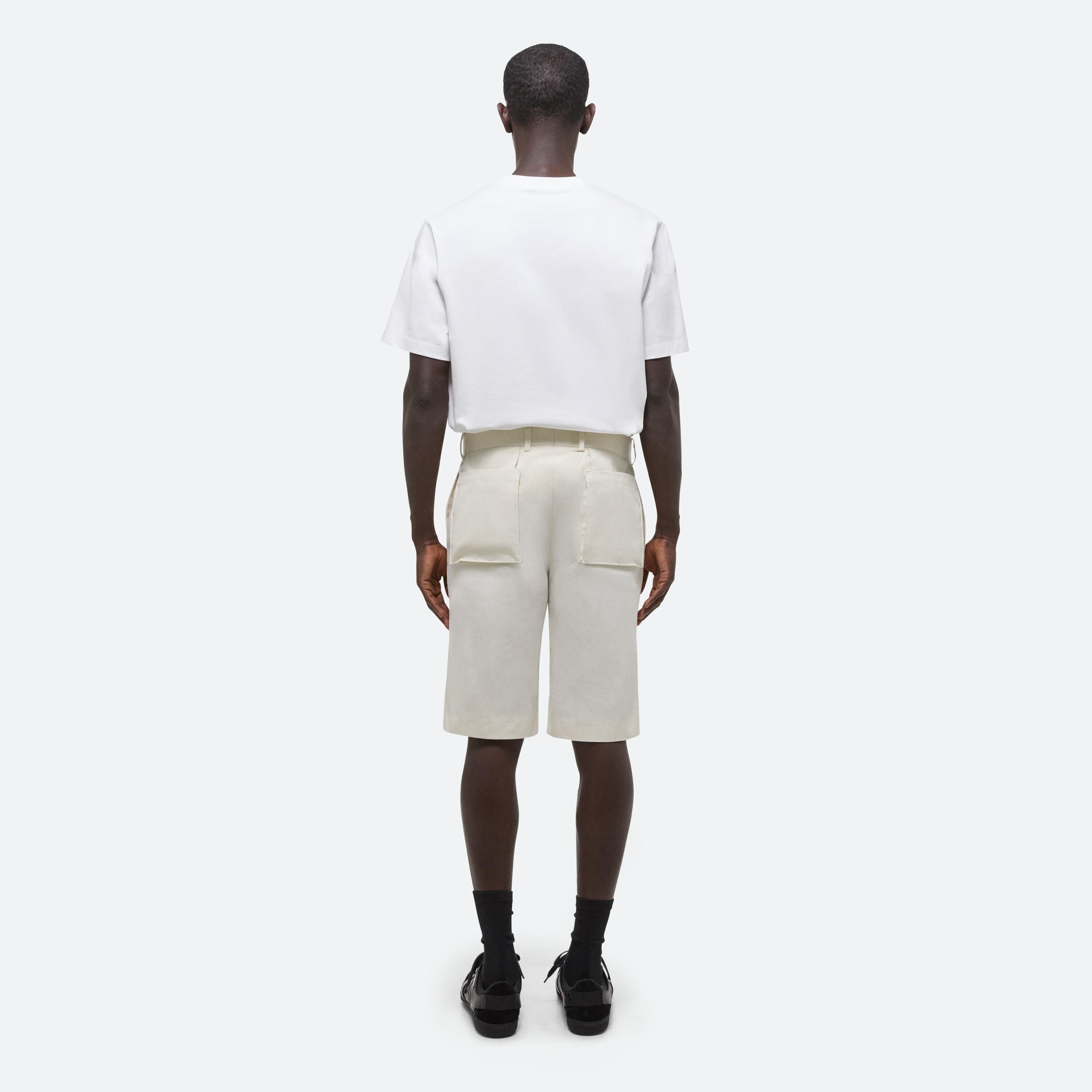 Lightweight tailored short with utility detailing. Cut with a straight leg and finished with an invisible side zip that can be worn open for a more relaxed look. Tuck the utility pockets into the patch pockets underneath, or take them out for a custom layered effect.