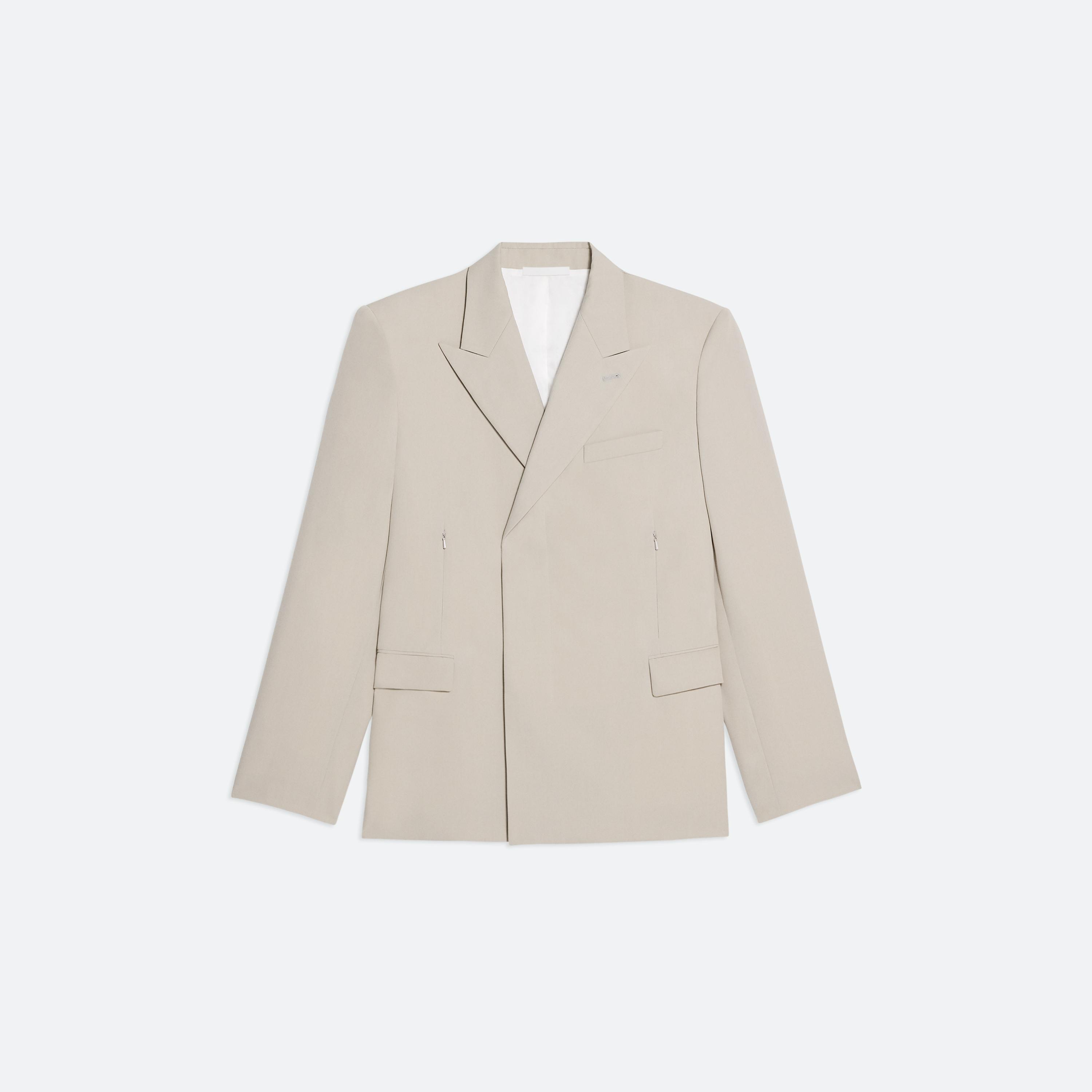 Double-breasted unisex blazer in Italian virgin wool with hidden button closures. Relaxed fit with peak lapels and side zip pockets. This garment was designed with many body types and gender expressions in mind.