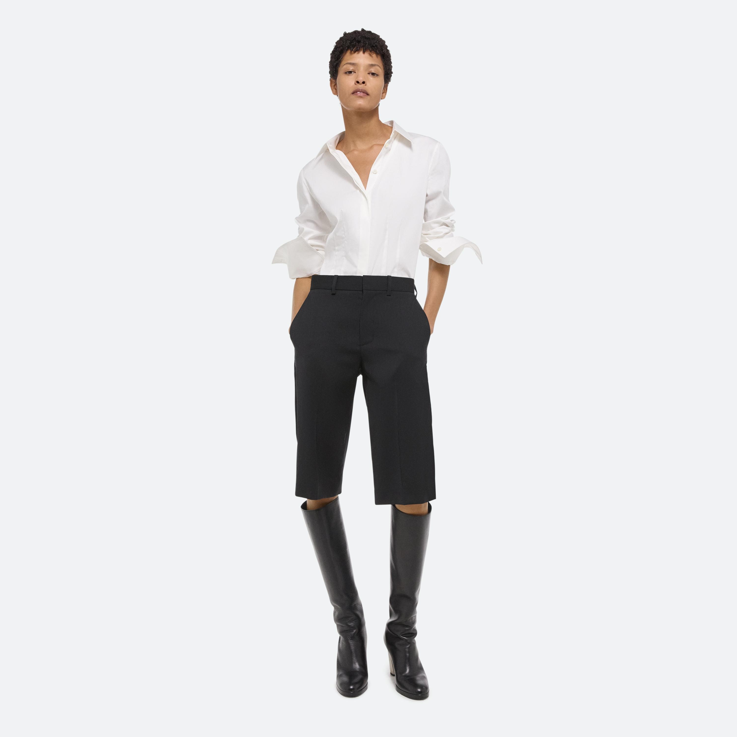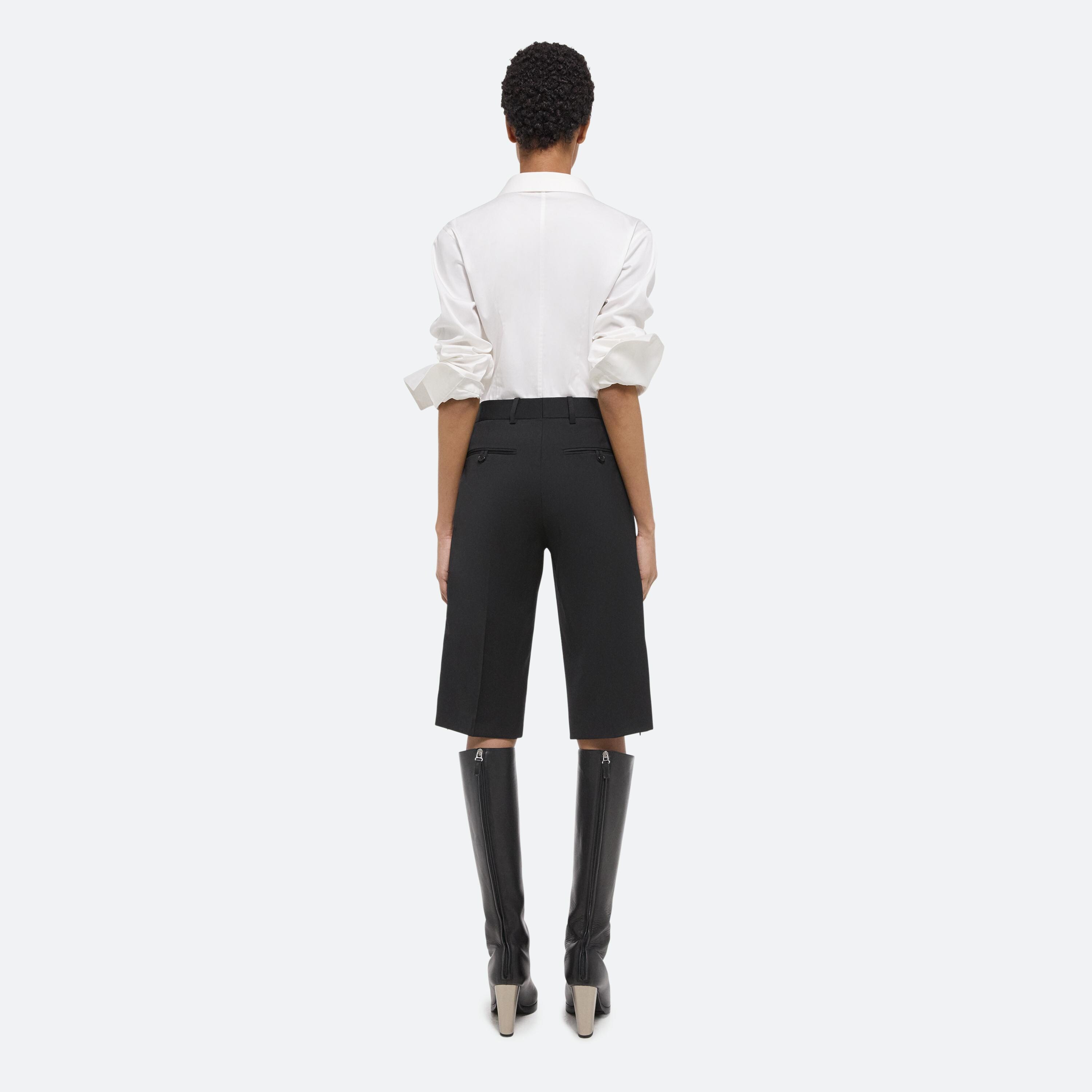Tailored car short in Italian virgin wool. A straight leg cut with side zip, allowing for a more relaxed and stylized look when unzipped.