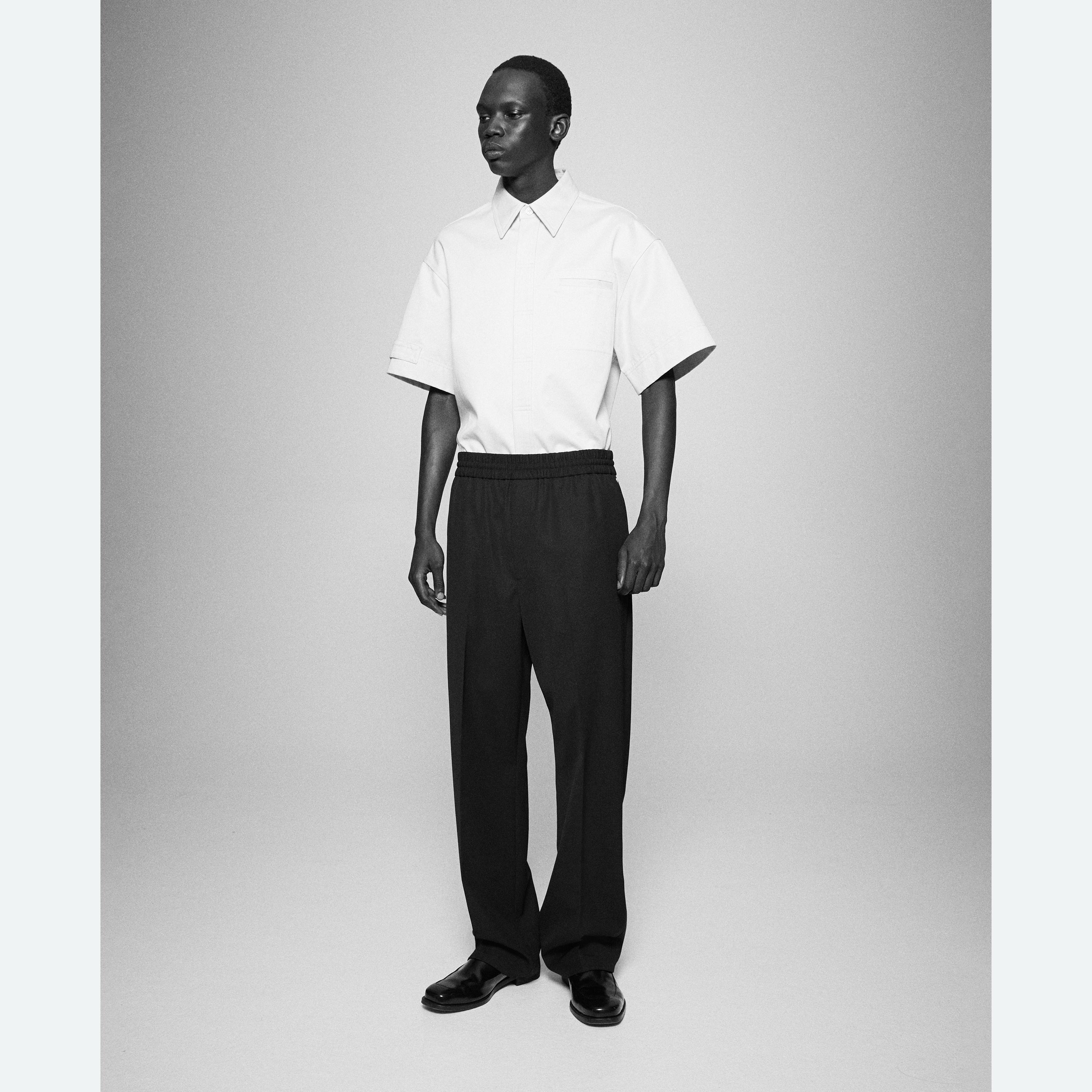 THE CAPSULE IS CRAFTED IN A 100% GABARDINE WOOL TWILL THAT BALANCES STRUCTURE AND COMFORT. A TECHNICAL WOOL ENGINEERED FOR LONGEVITY, THE FABRIC PROVIDES NATURAL DRAPE, WHILE A COMPACT TWILL WEAVE REINFORCES STRUCTURE, RESISTS WRINKLES, AND CREATES A CRISP FINISH.