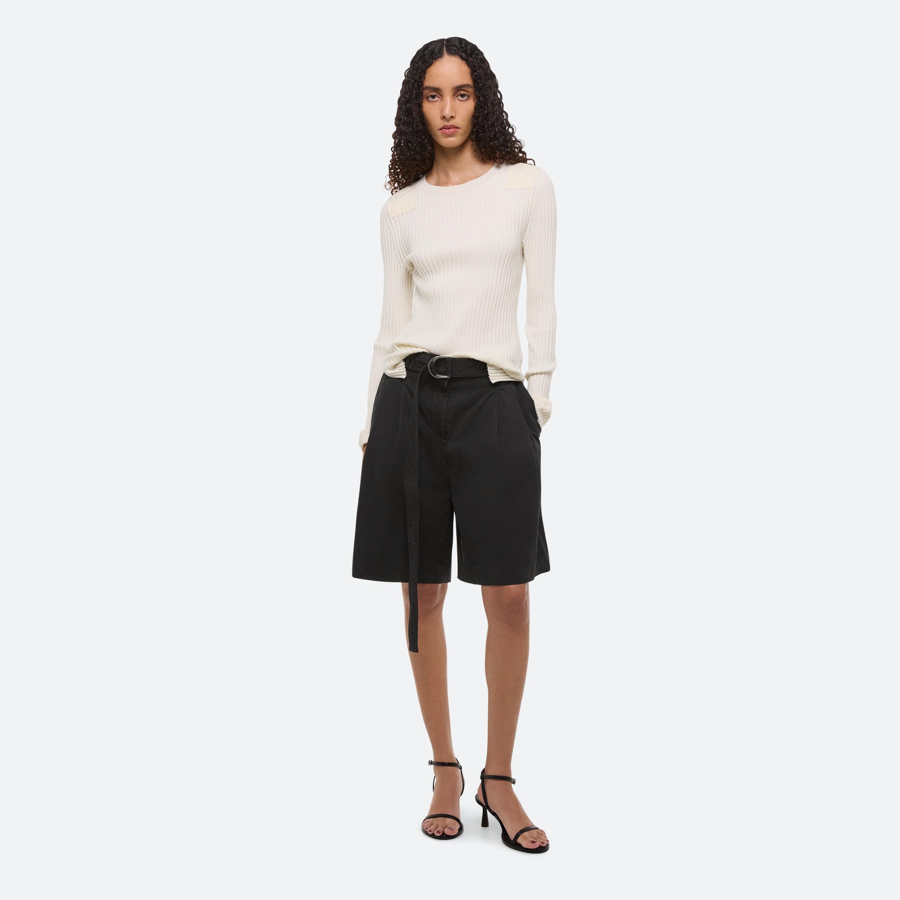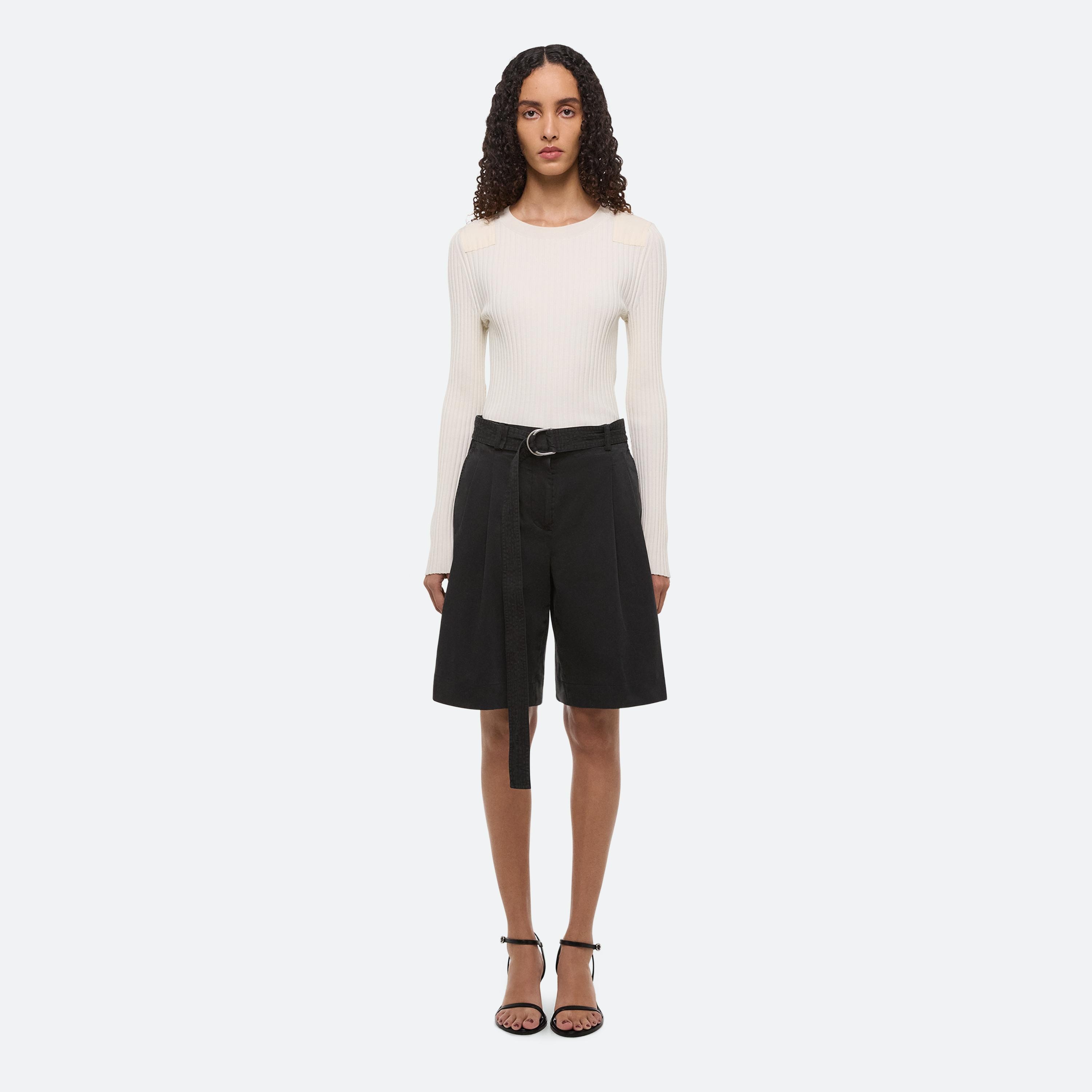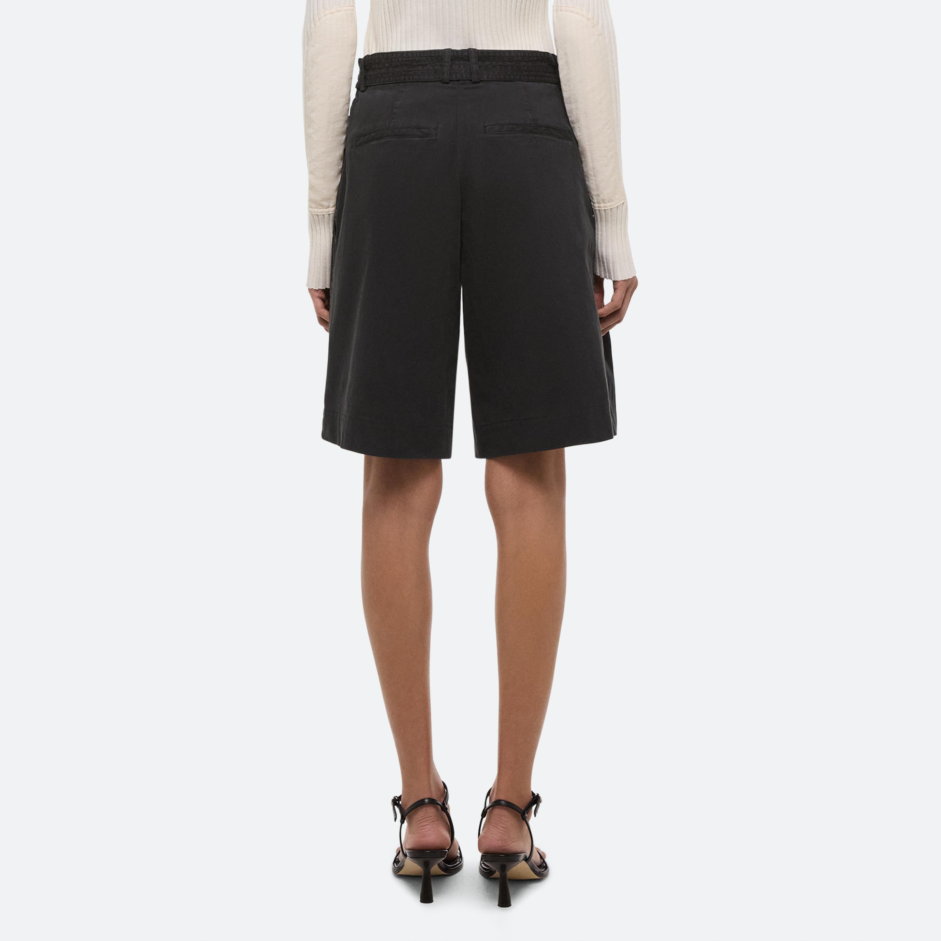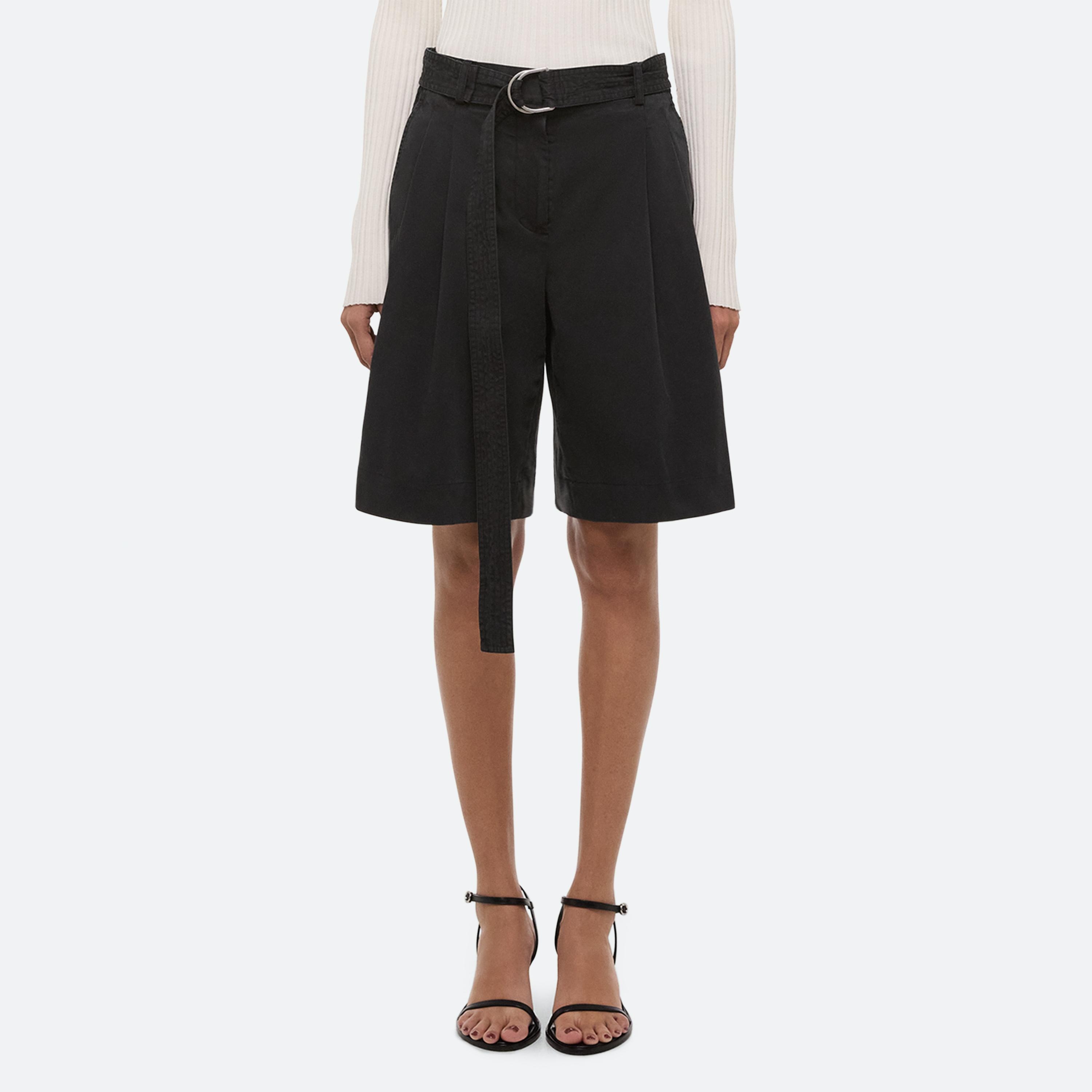 High-waisted A-line shorts in a lightweight cotton twill. Finished with a garment-dyeing process for a vintage look and lived-in feel. Comes with matching trench-inspired D-ring belt with trapunto stitching.