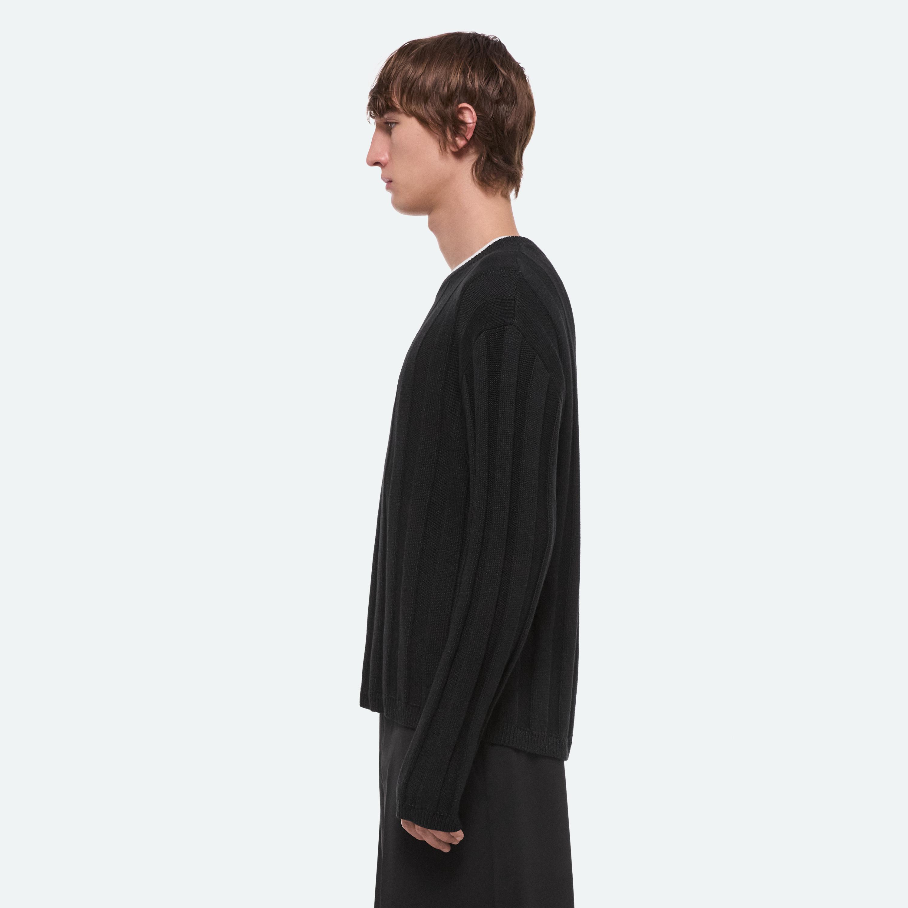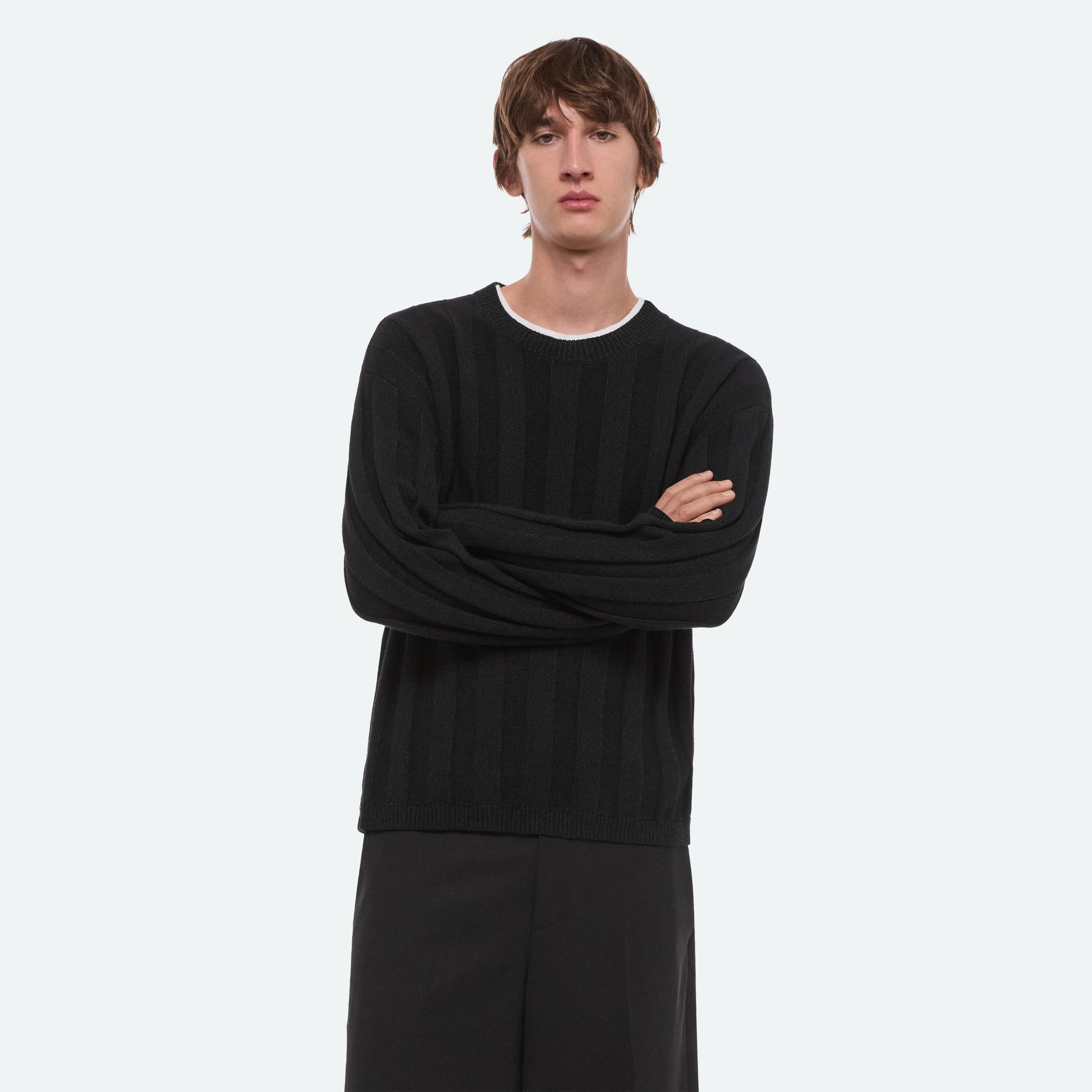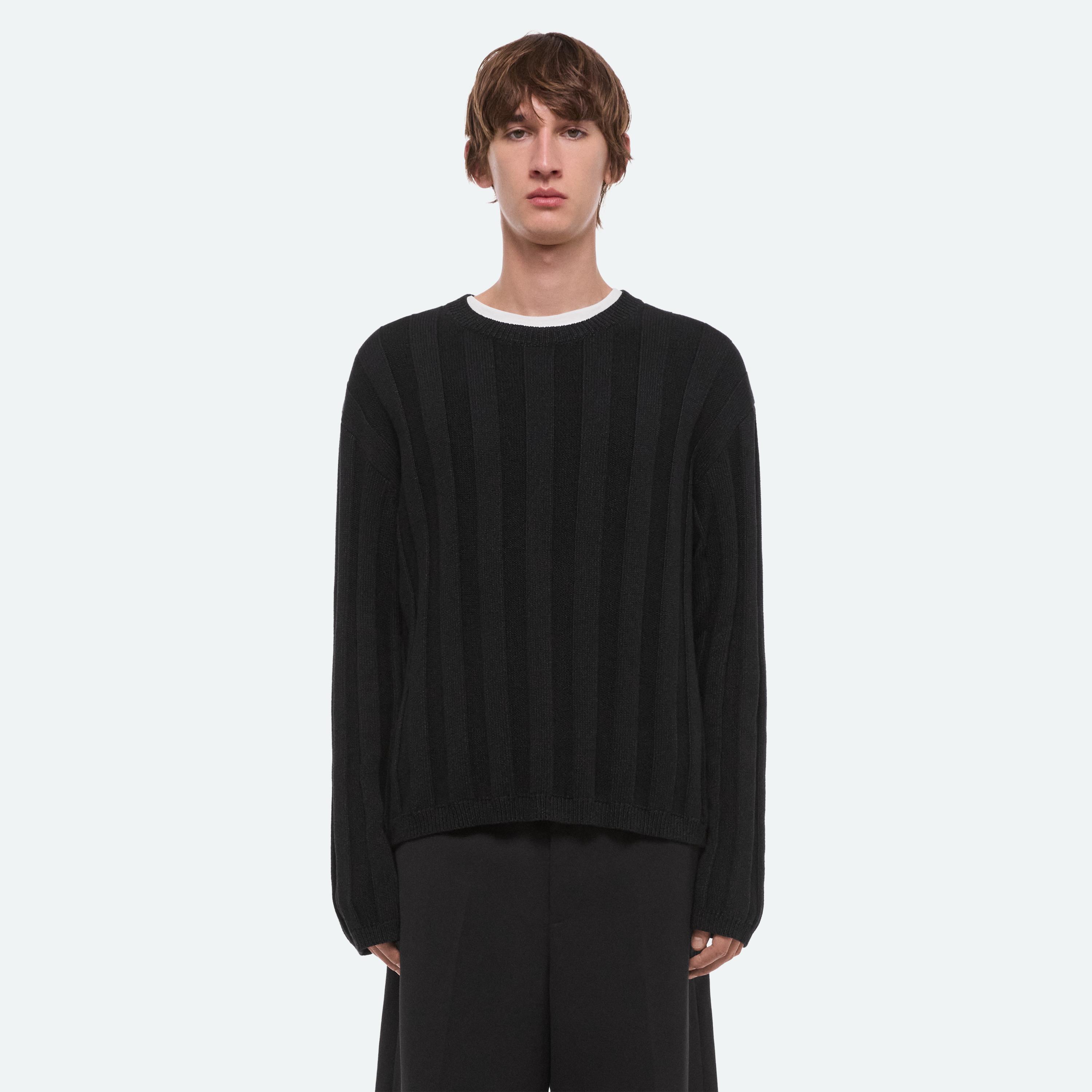 Crewneck sweater with a dimensional rib stitch. Made with a straight fit and elongated sleeves.