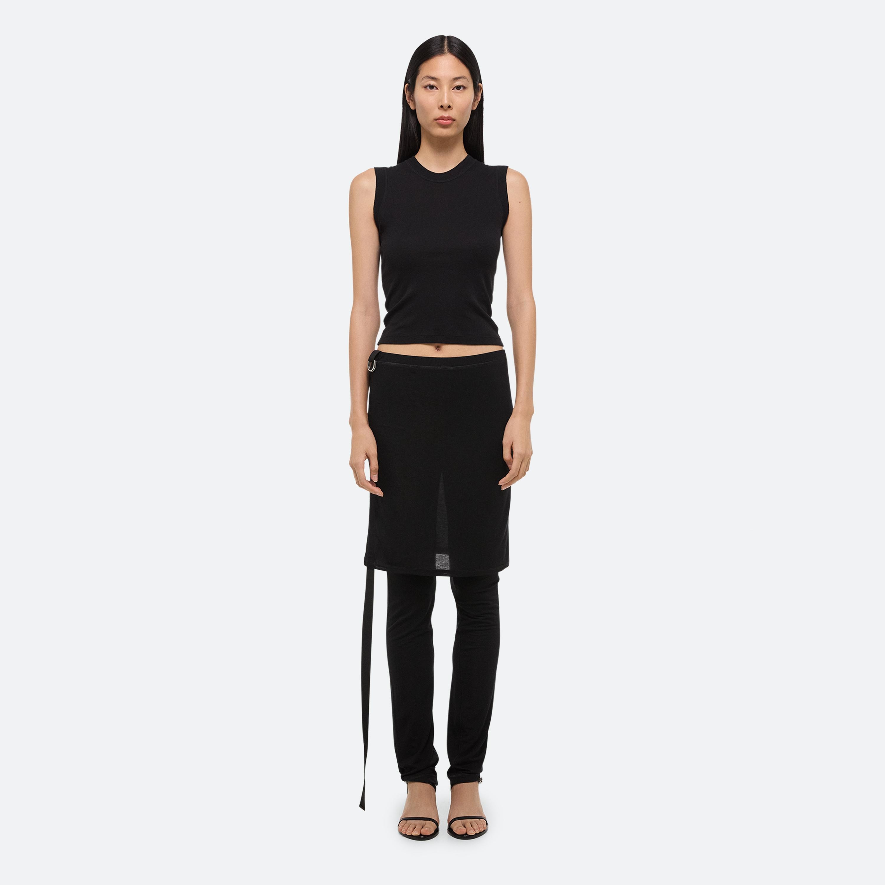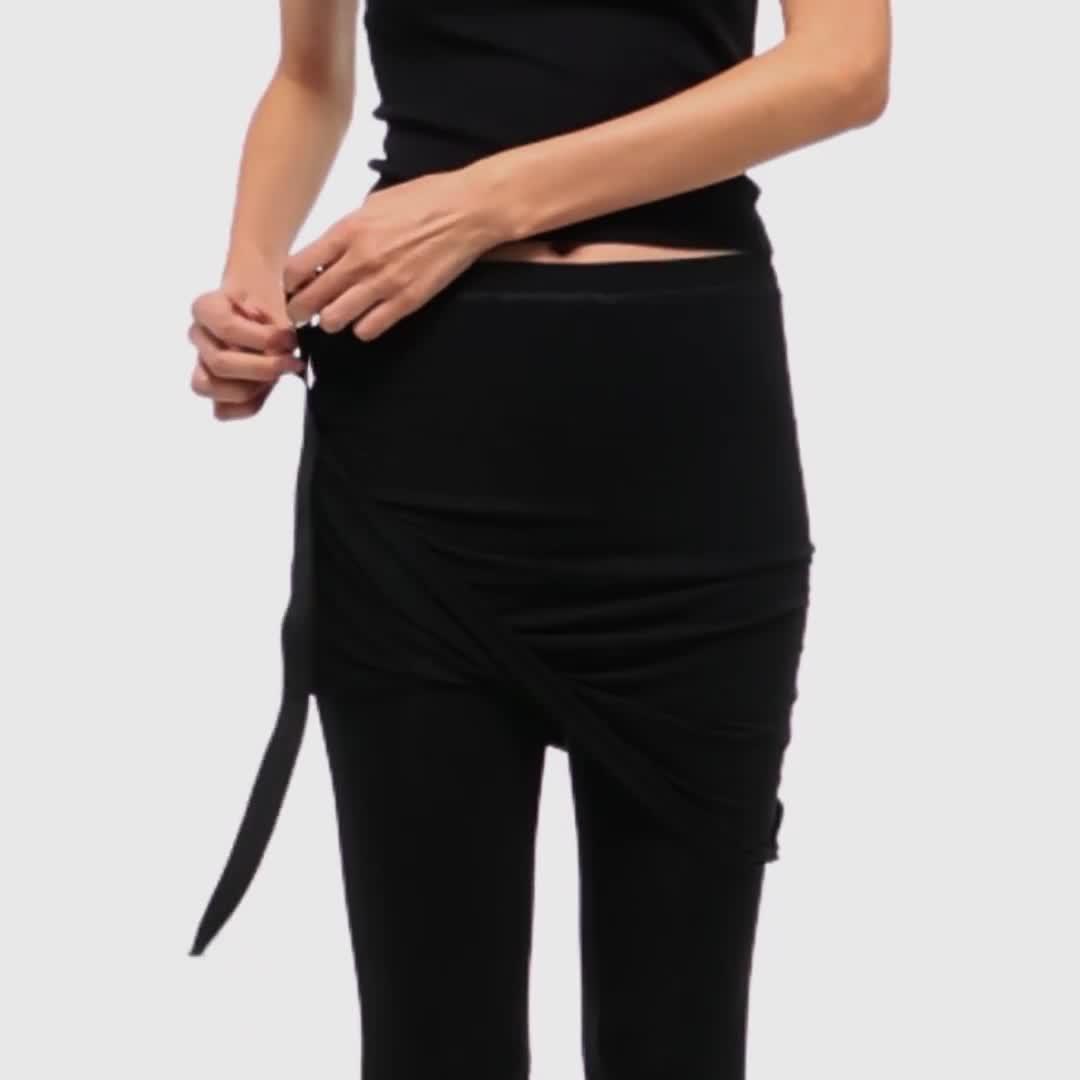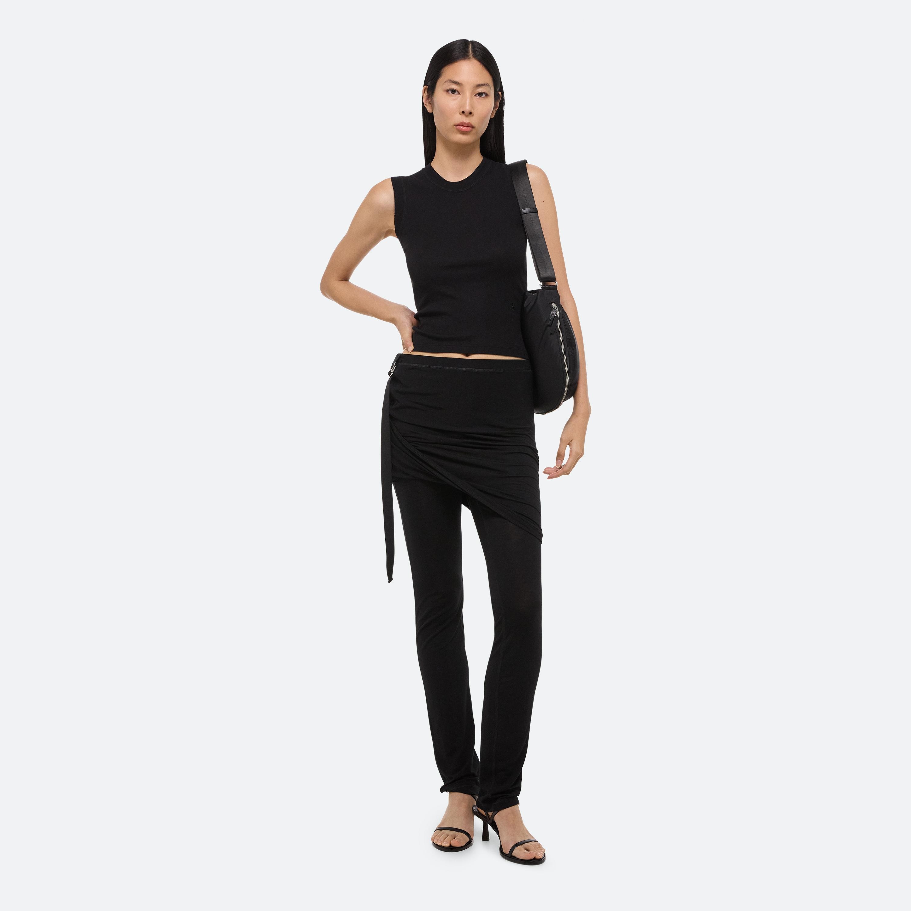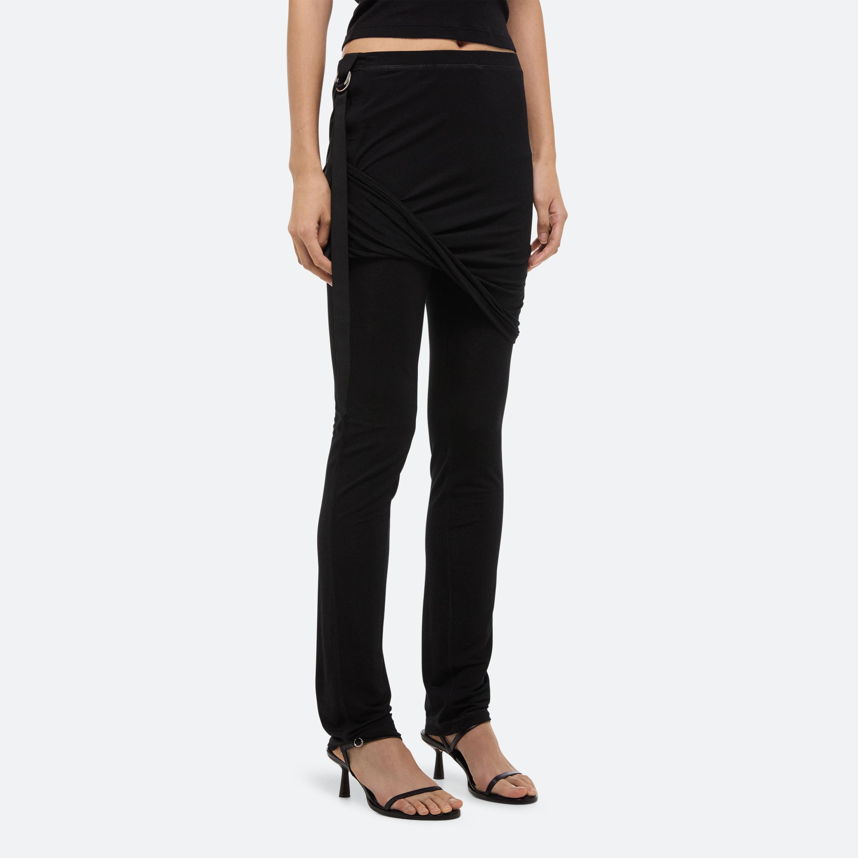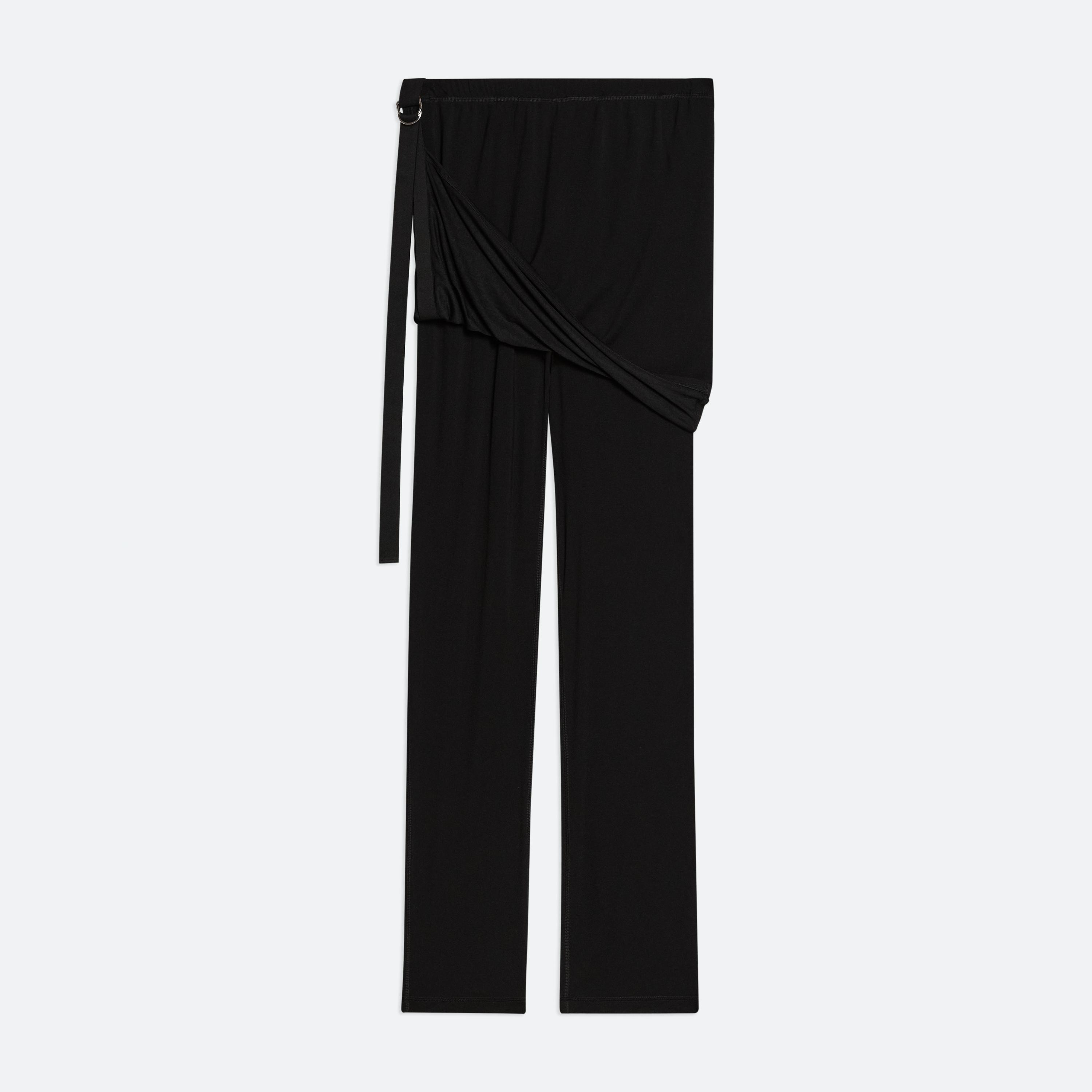 Slim pants in soft lyocell jersey with attached skirt. Use the tonal seatbelt strap to adjust the length of the skirt.