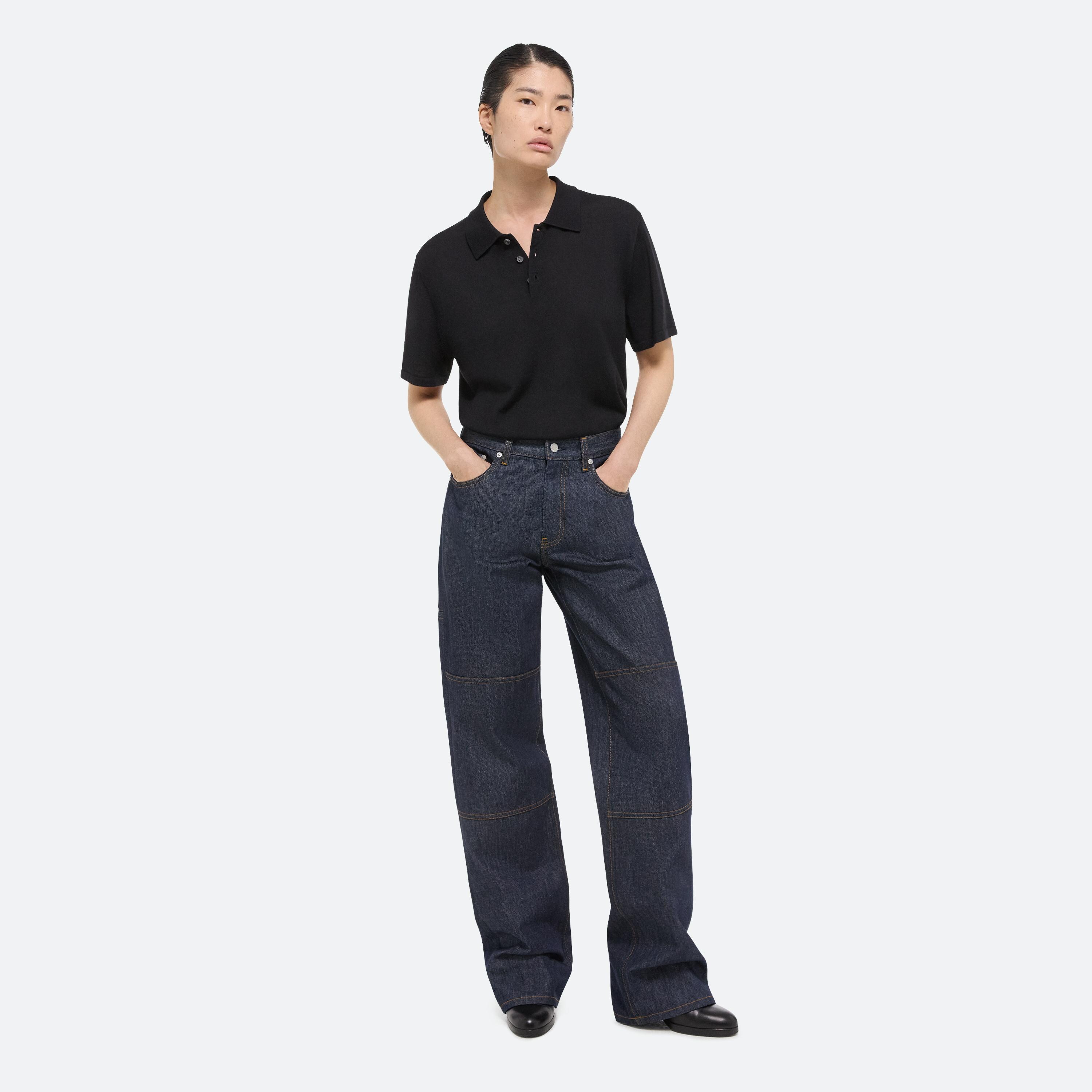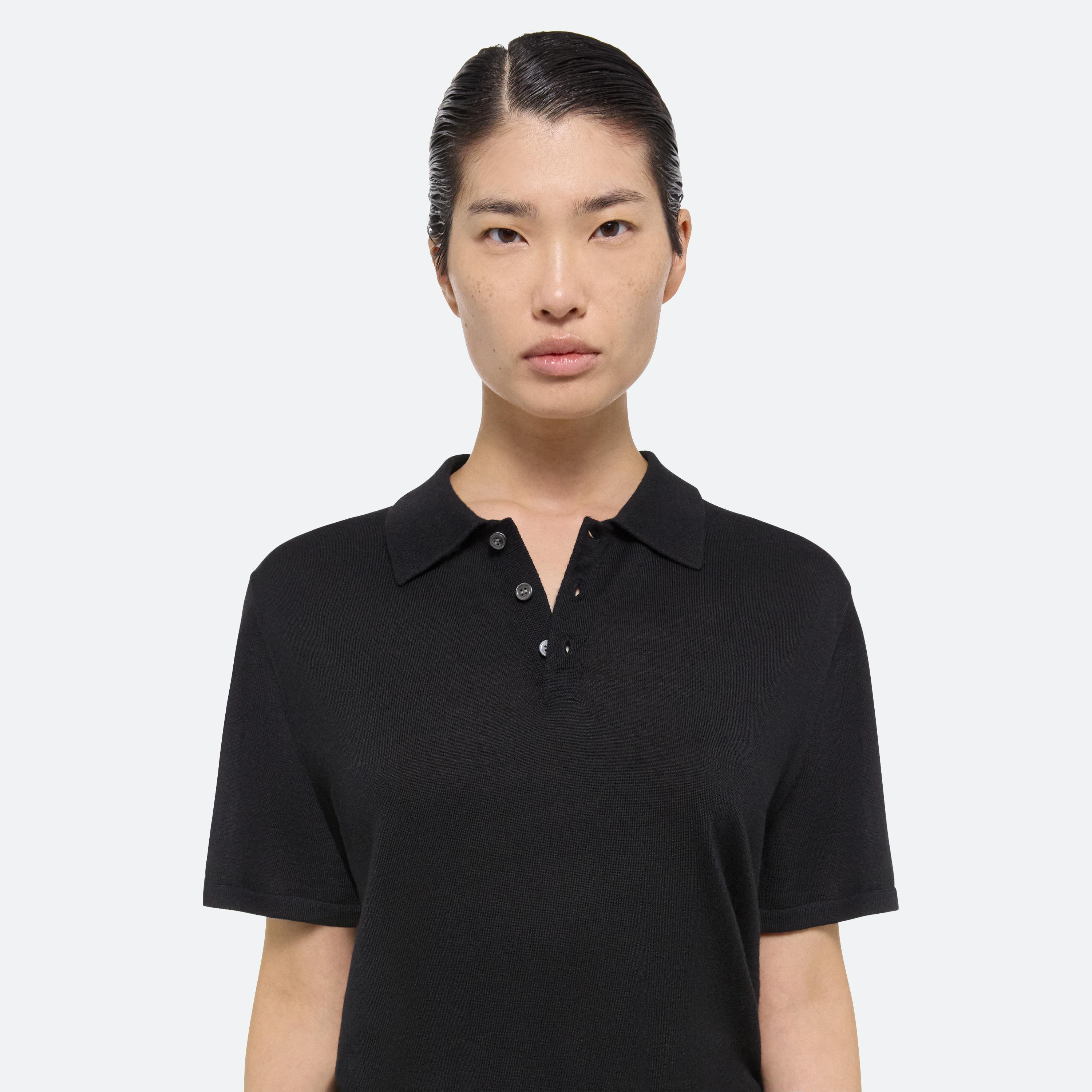 Slim fit polo in a superfine Merino Wool Silk blend. This garment was designed with many body types and gender expressions in mind.