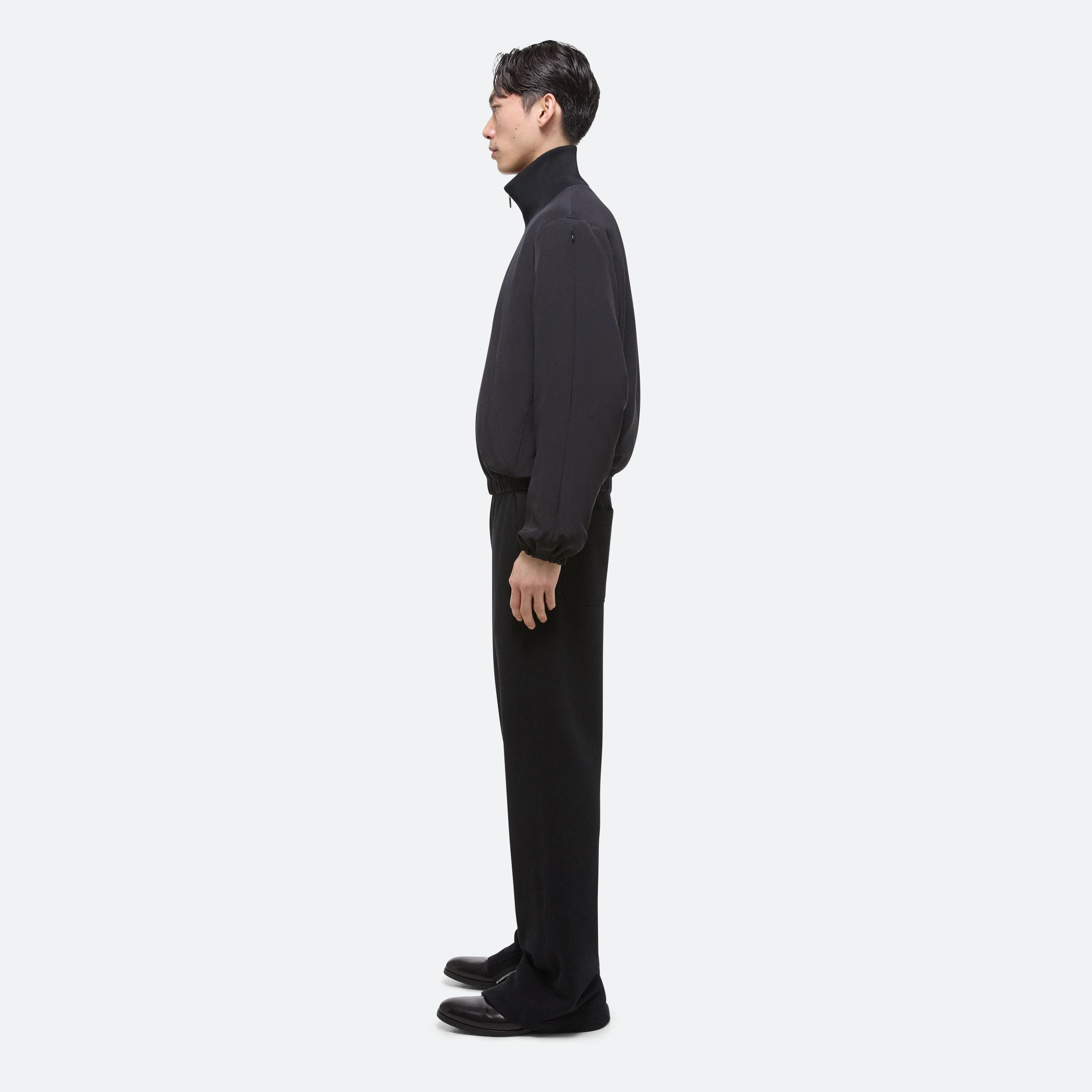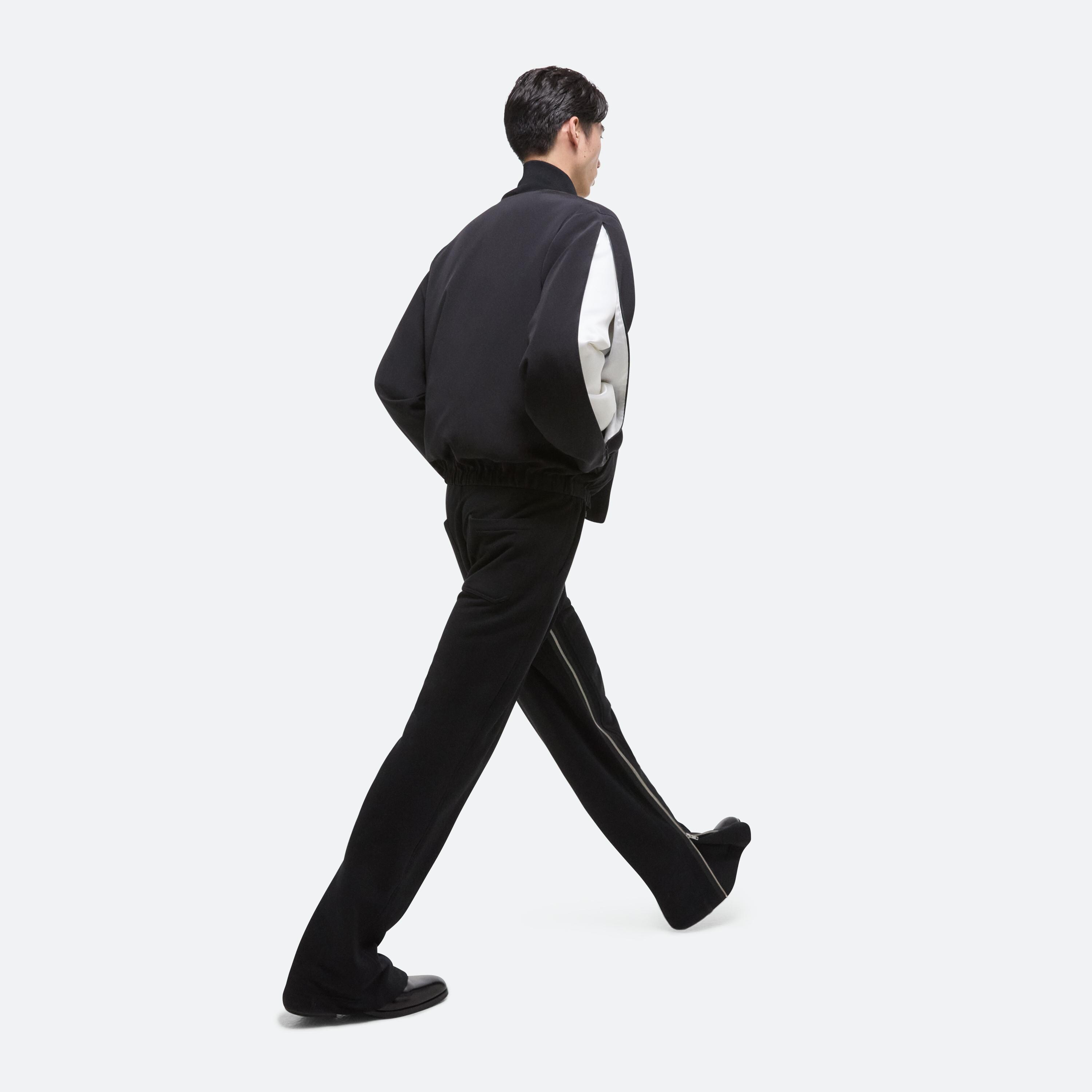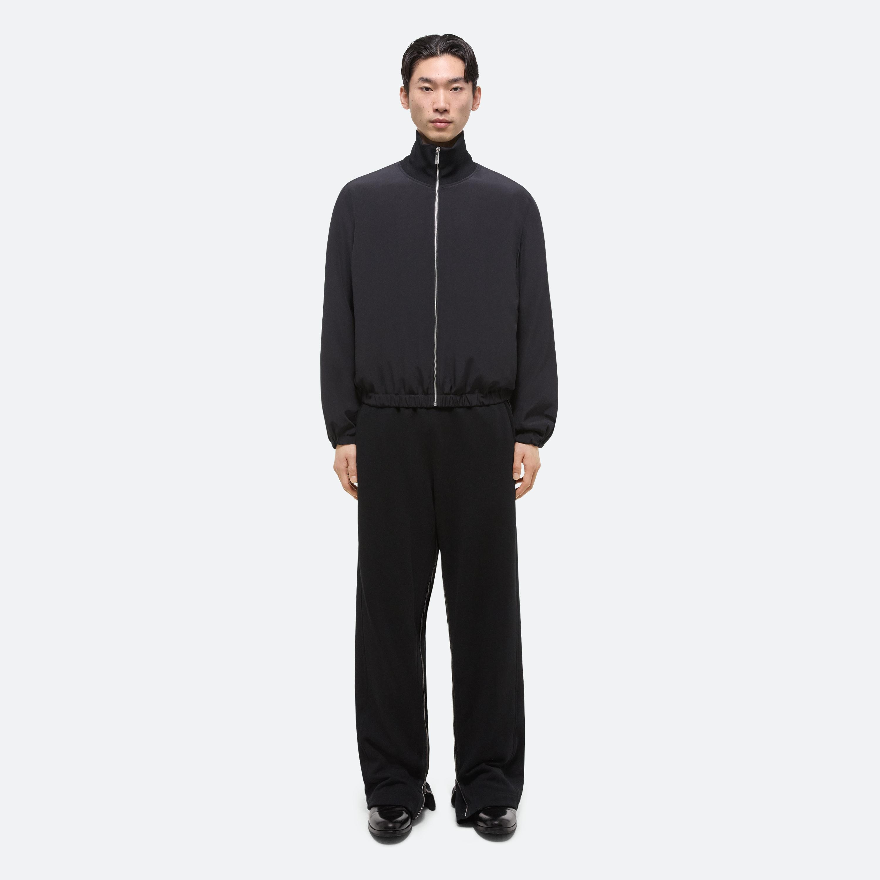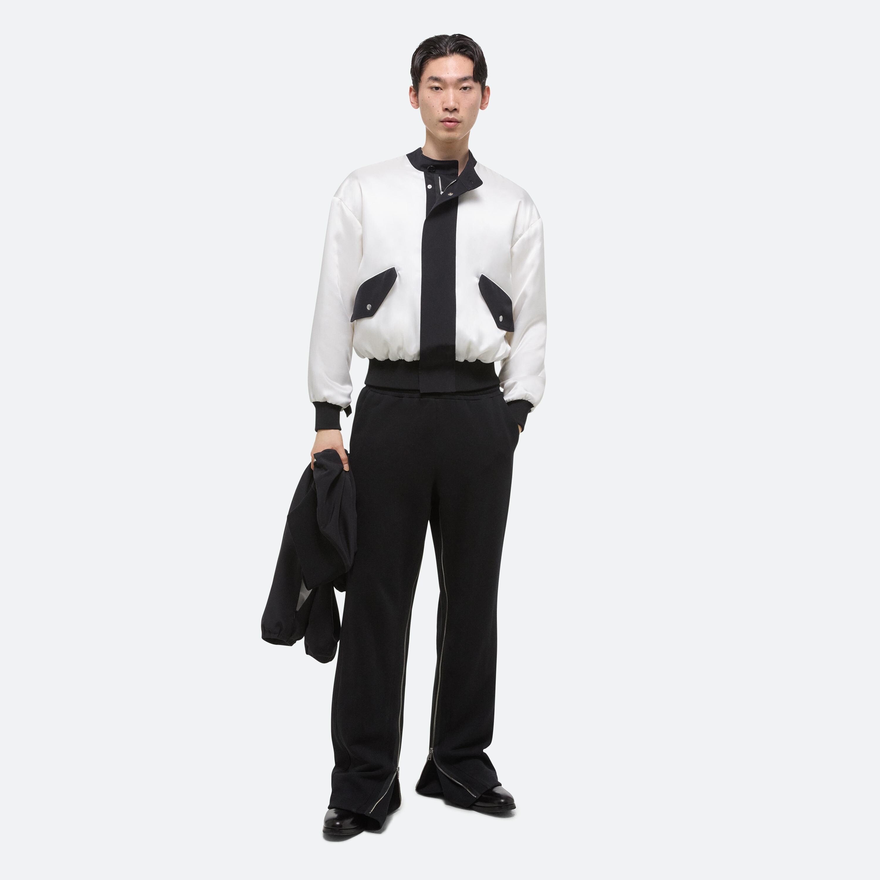 Layered silk bomber jacket with metal logo zipper. Full-length zippers along each sleeve open to add volume and reveal the inner layer, creating endless styling combinations. Each layer has its own pockets and closures, allowing them to be worn separately or together. Made from lightweight silk crepe de chine.