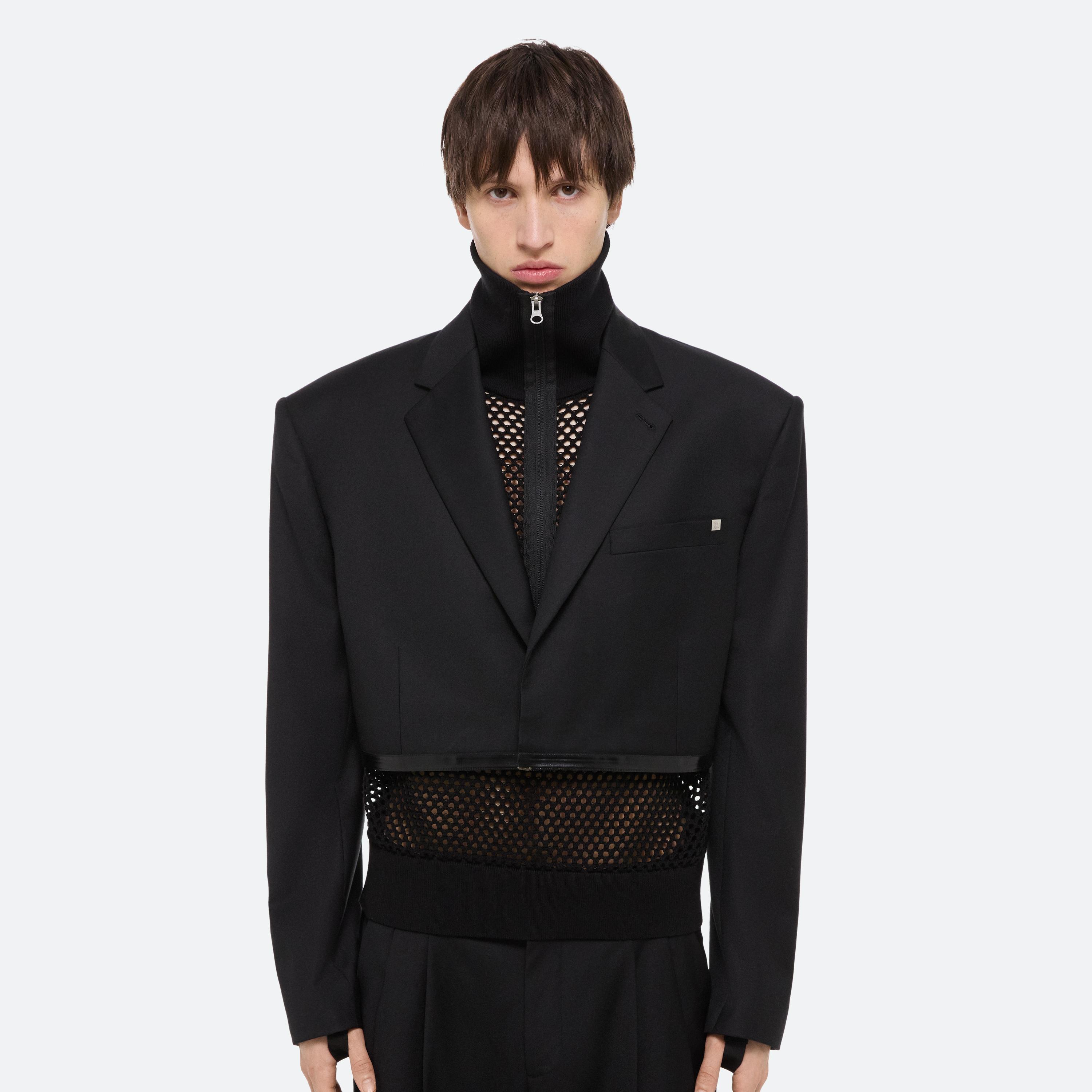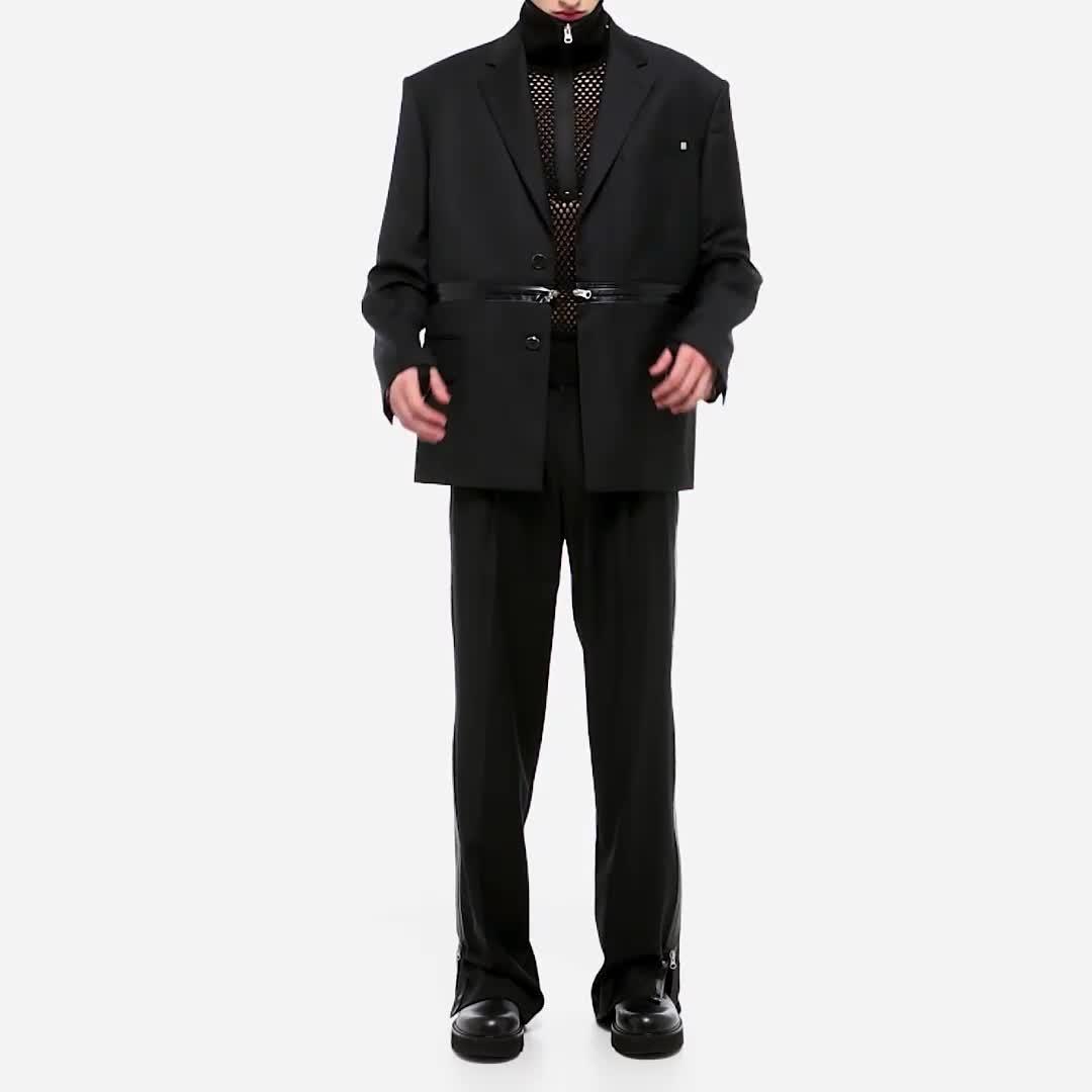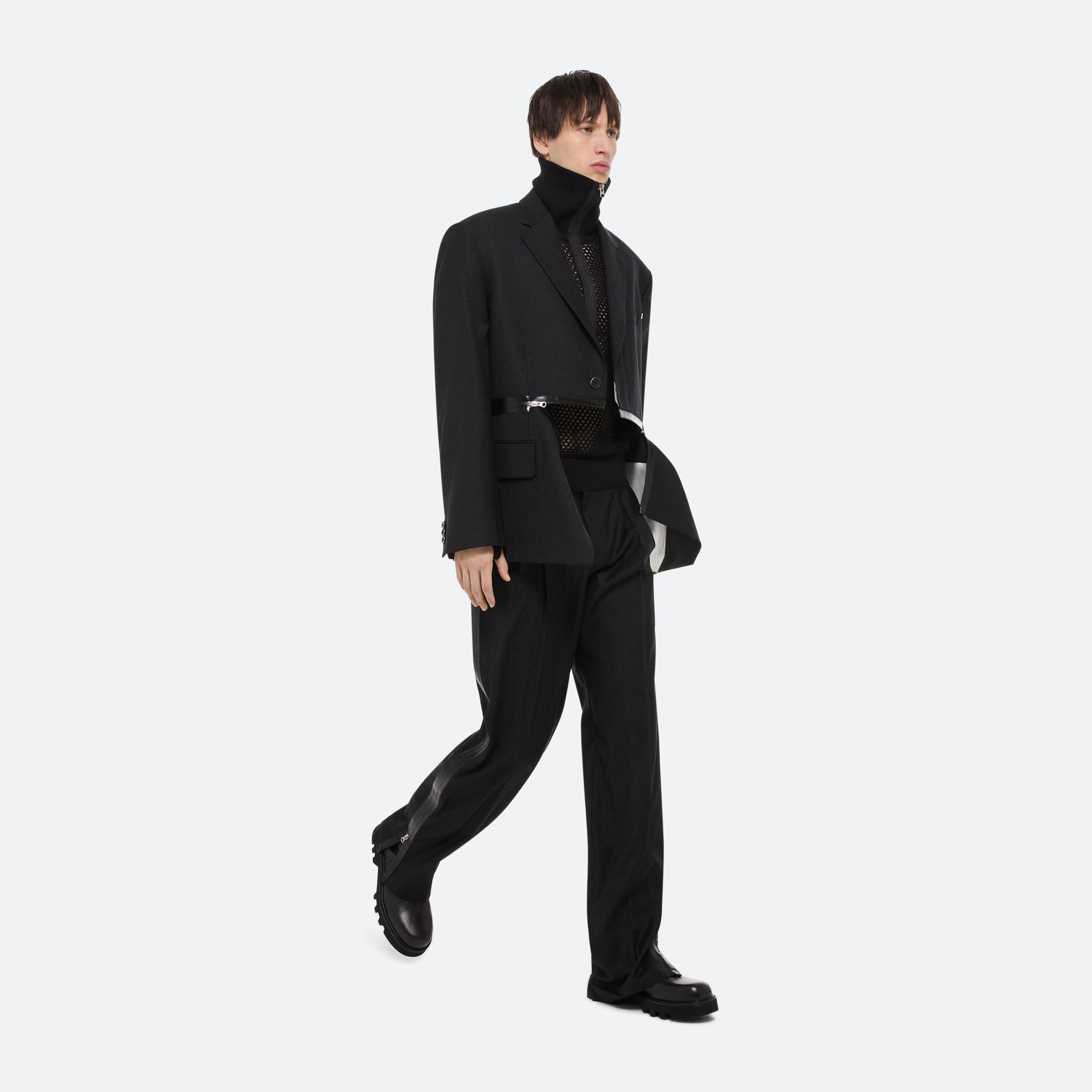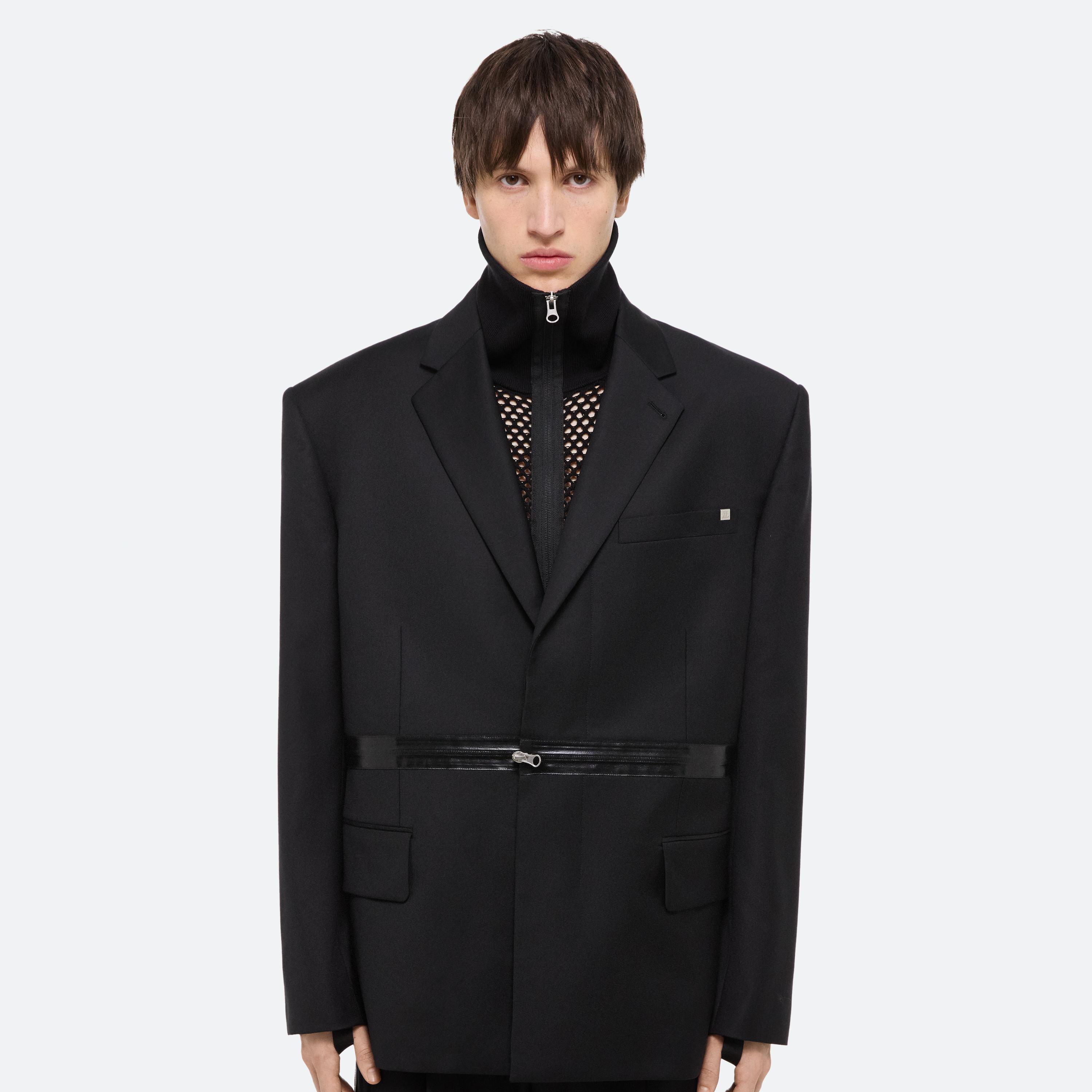 Relaxed blazer in wool twill. Oversized single-breasted fit with notched lapels and flap pockets. Open the tonal aquaseal zipper to control the length of the jacket and create a personalized look. Matches the Zip Double-Pleated Trousers.