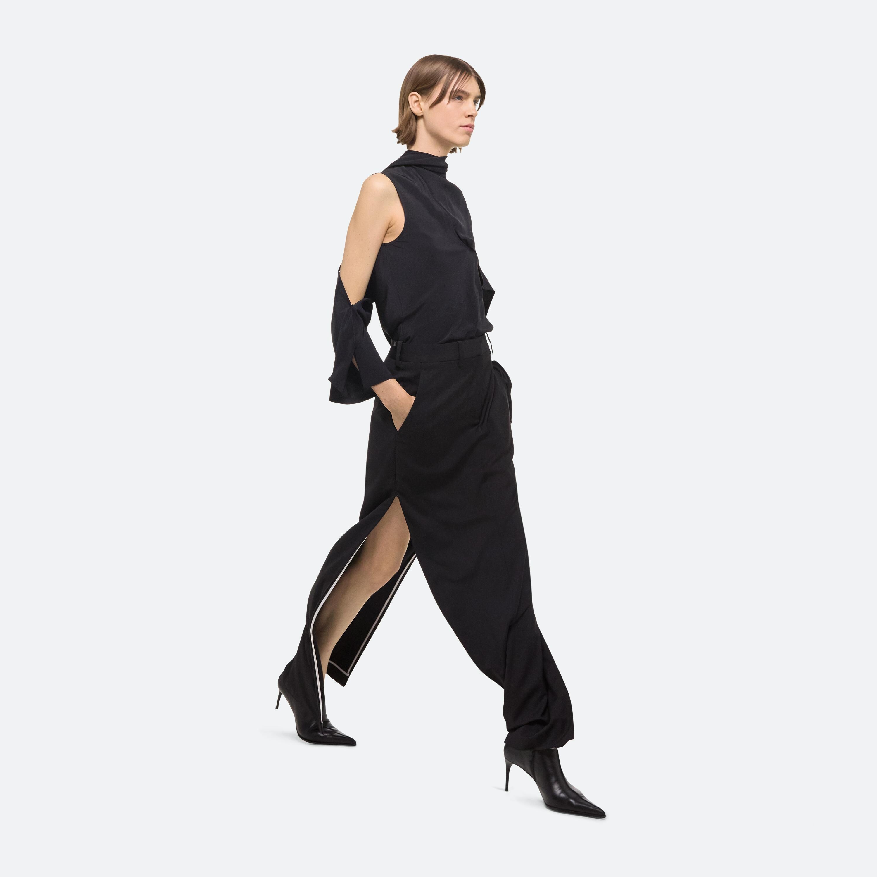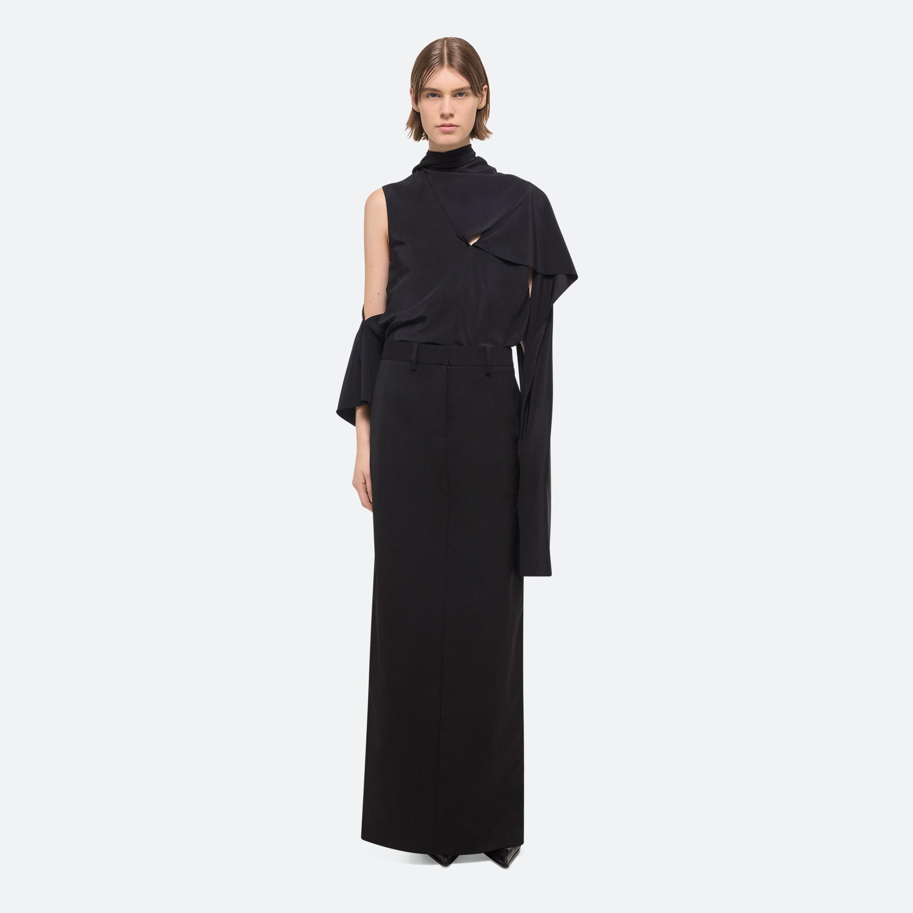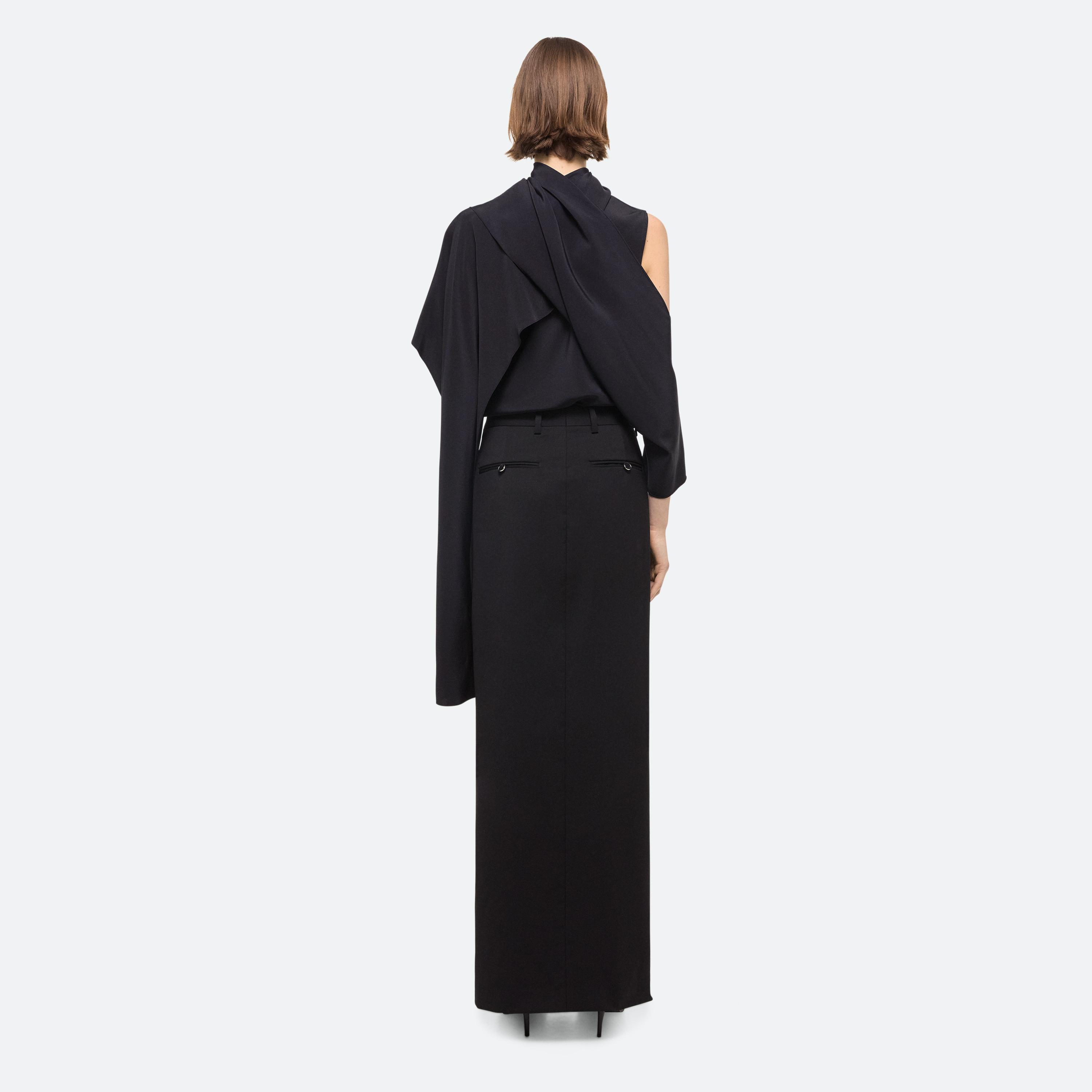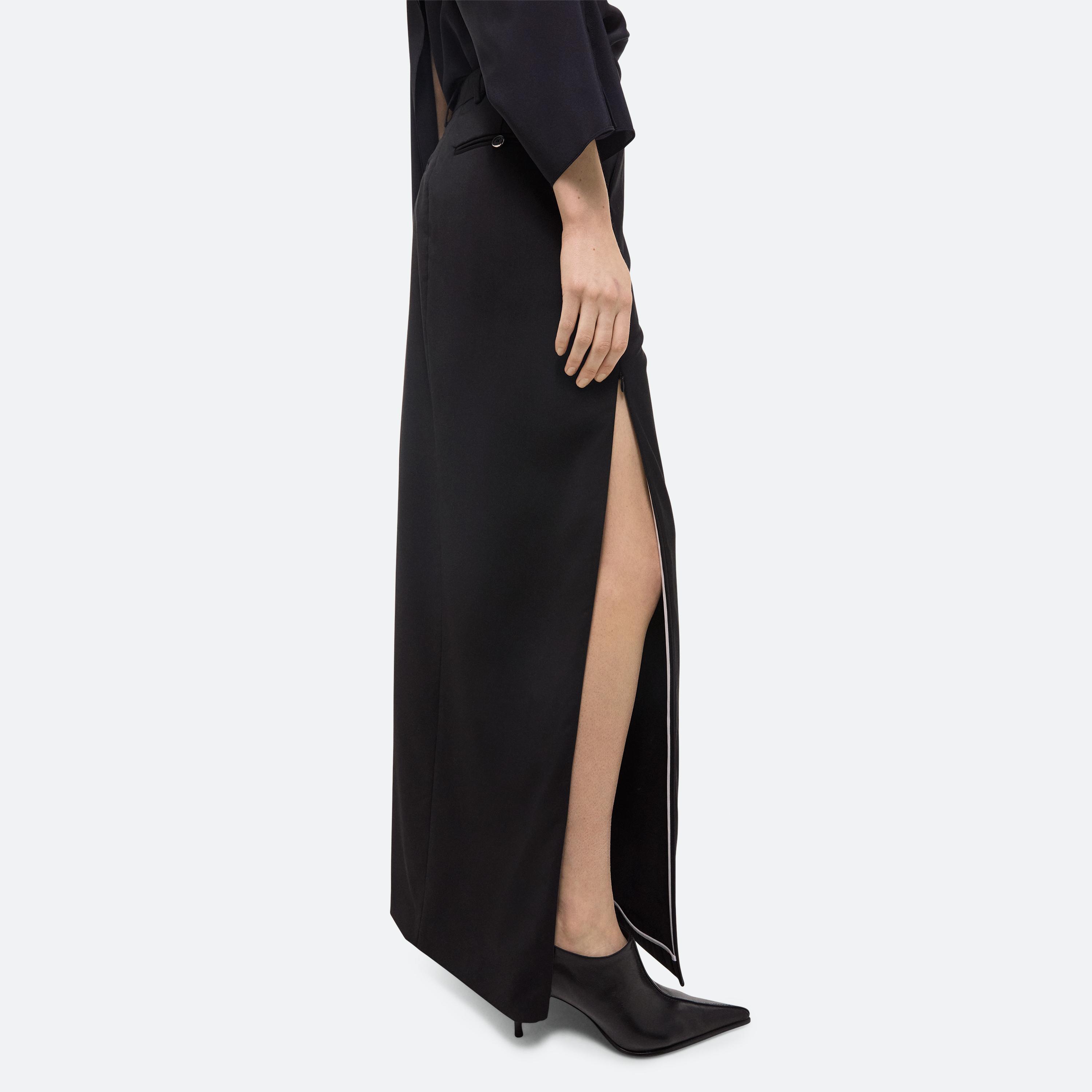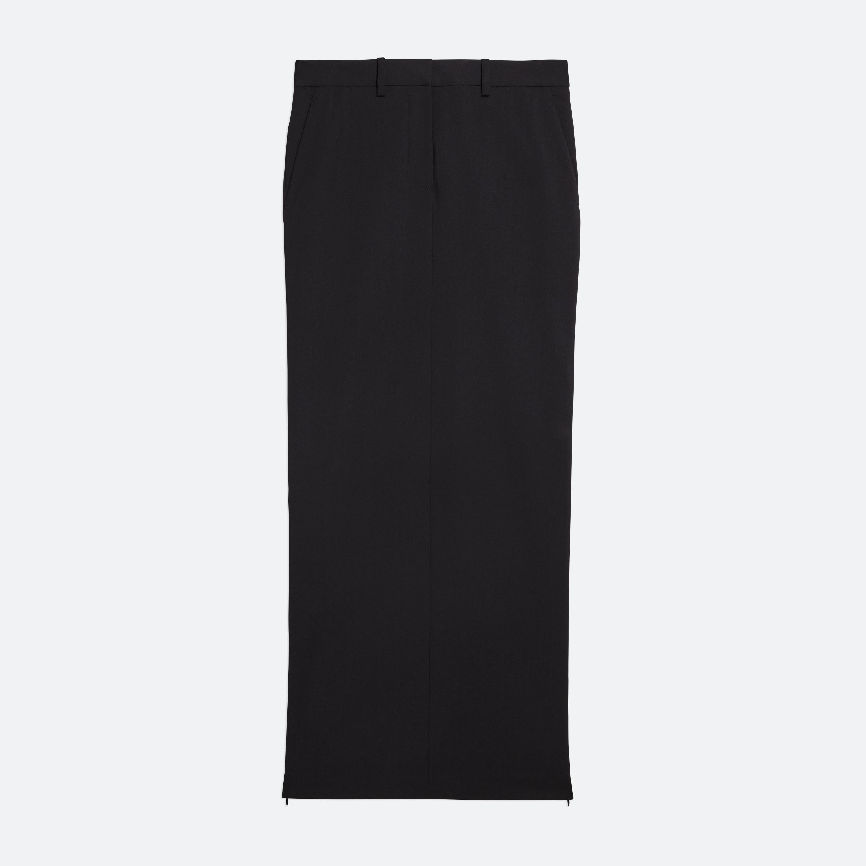 Tailored column skirt in virgin Italian wool. Customize the length of the side slits by opening the invisible zippers along the seams.