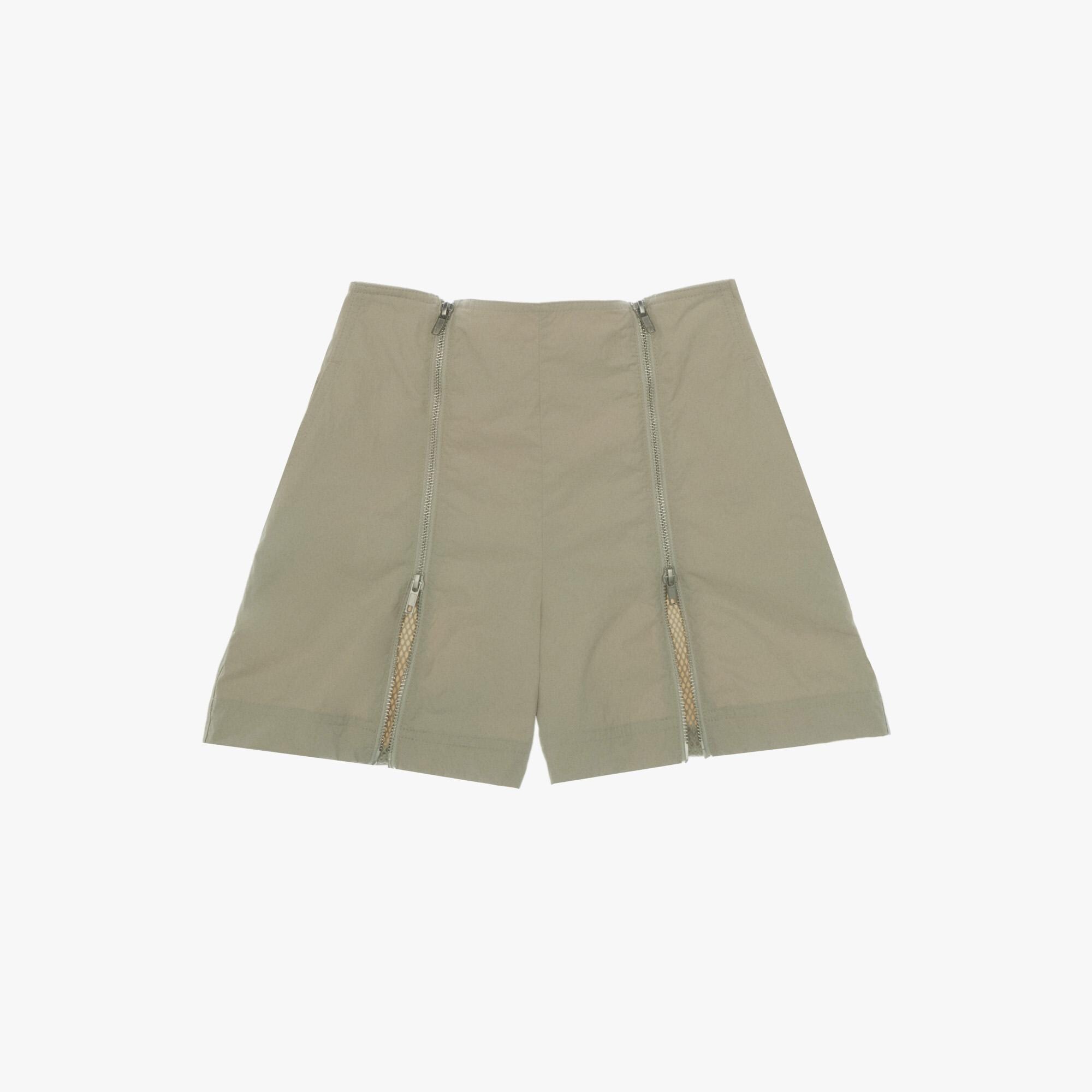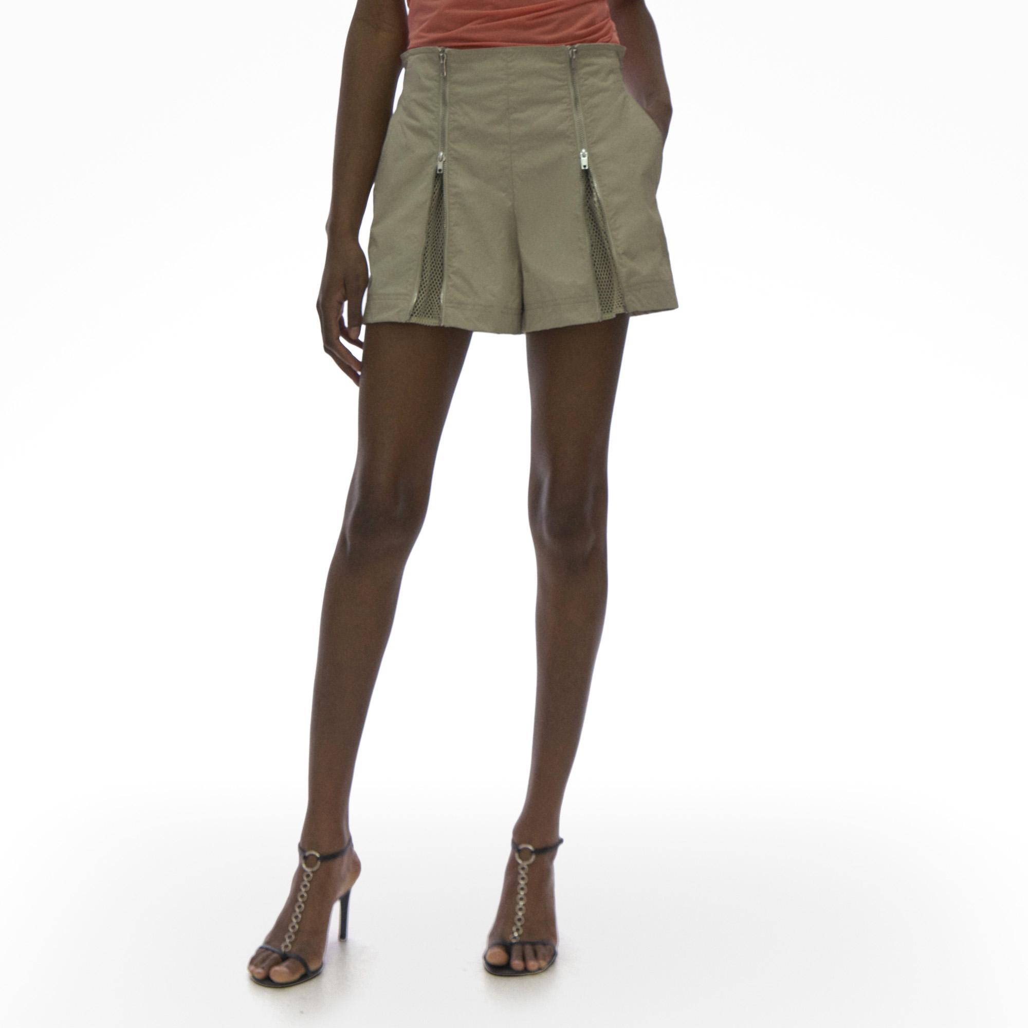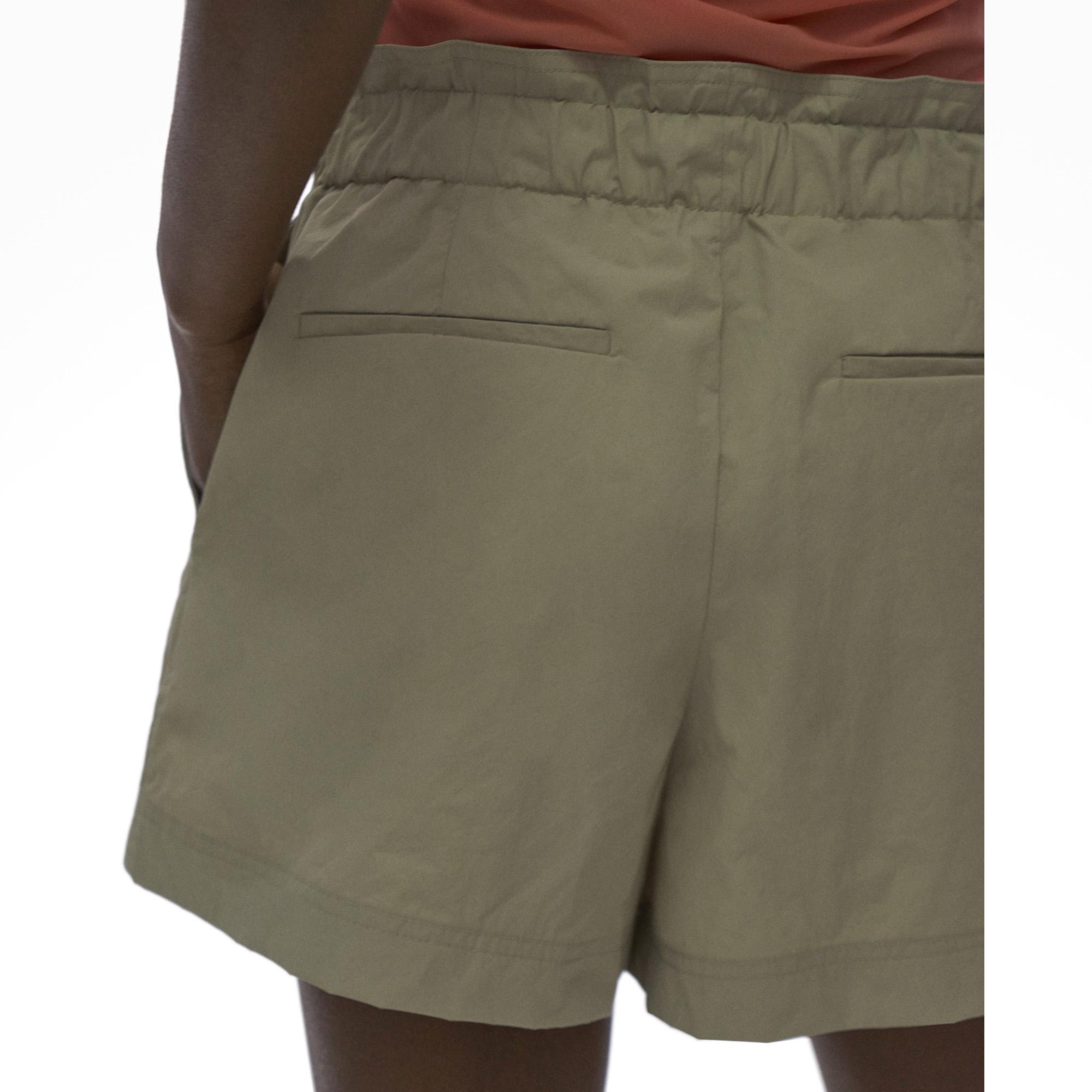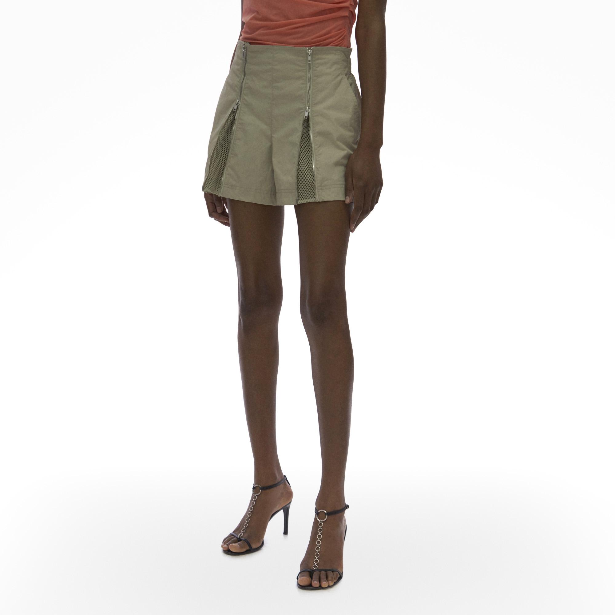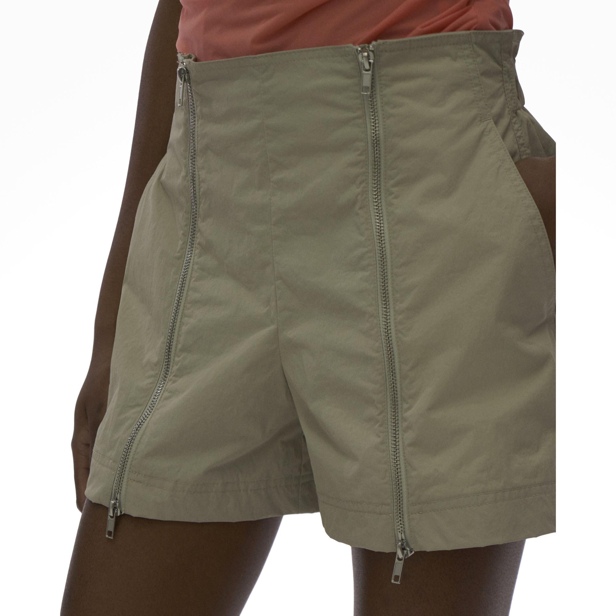 The Helmut Lang Pull On Short is a high-rise short in stretch wool-blend with a pleated elasticized logo waistband.